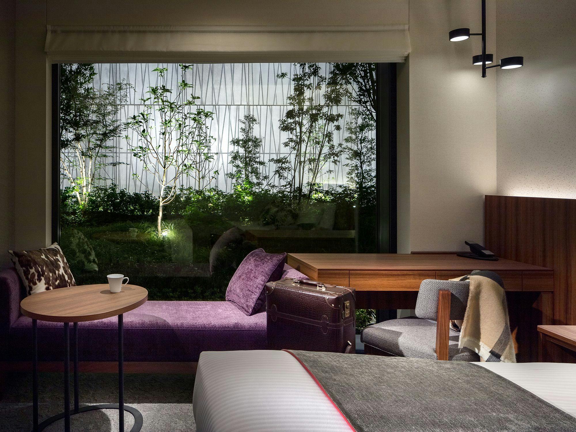 センターガーデンに面した、落ち着いて過ごすことができる客室。(お部屋から湾岸エリアや都心への眺望を望むことはできません)リファファインバブルS を設置しています