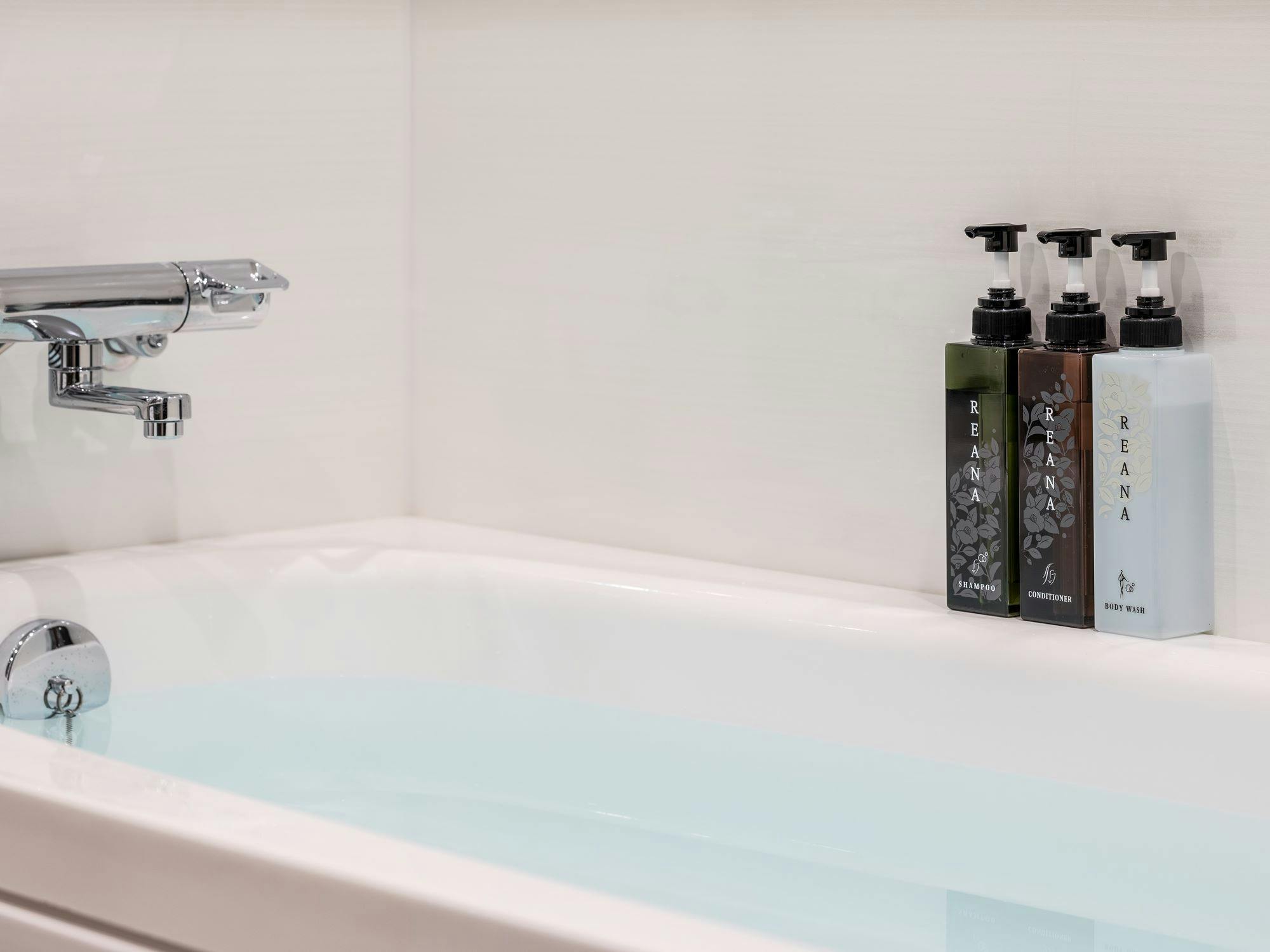 中庭に面した落ち着いた空間で、ご家族や友人との旅をお楽しみいただけます。リファファインバブルS を設置しています