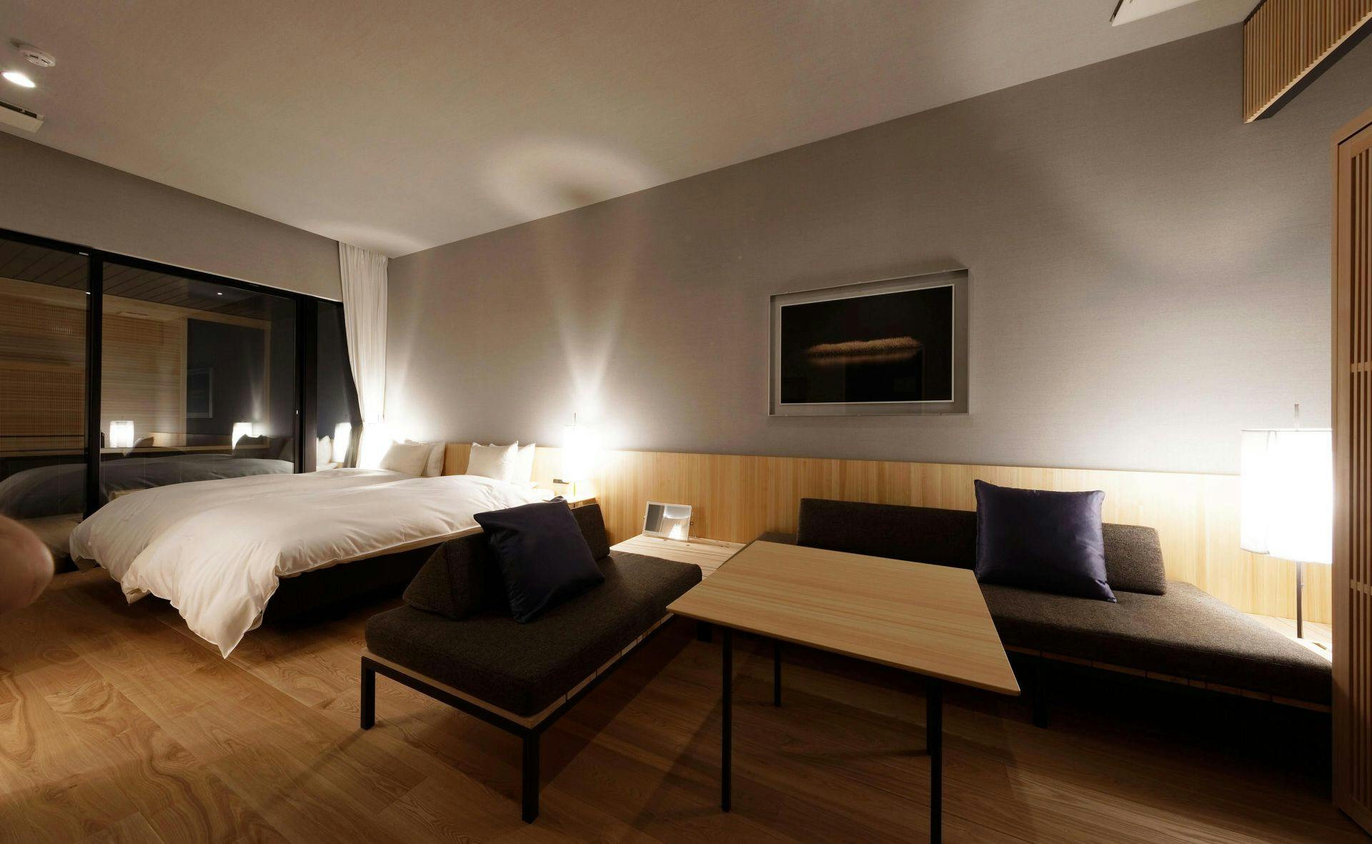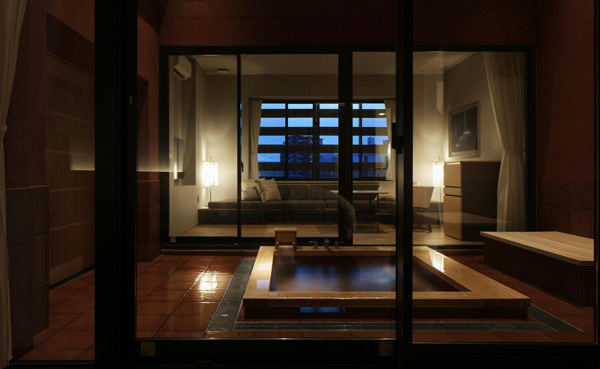部屋中央に露天風呂を設けた、斬新な設計。■ハリウッドツイン■全館禁煙■Wi-Fi利用可■3名様ご利用の場合はソファベッドを追加いたします。