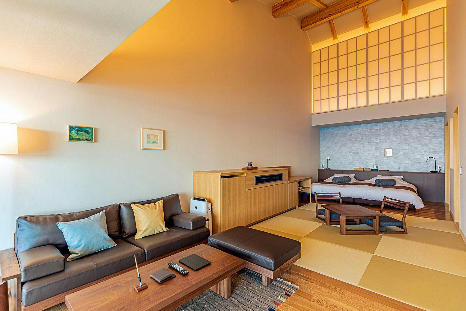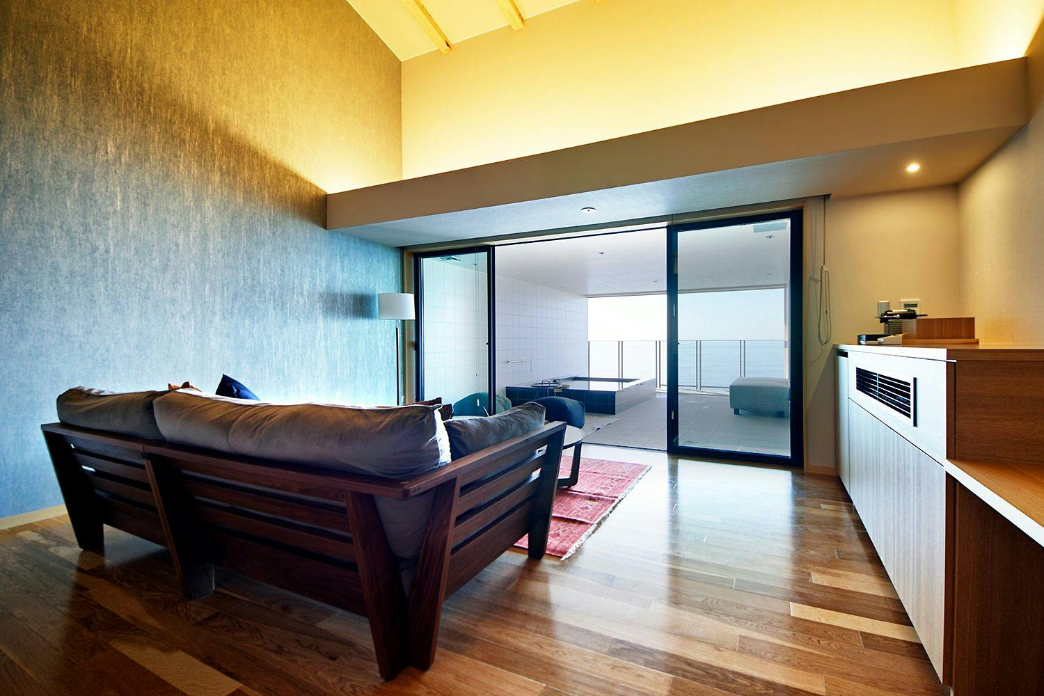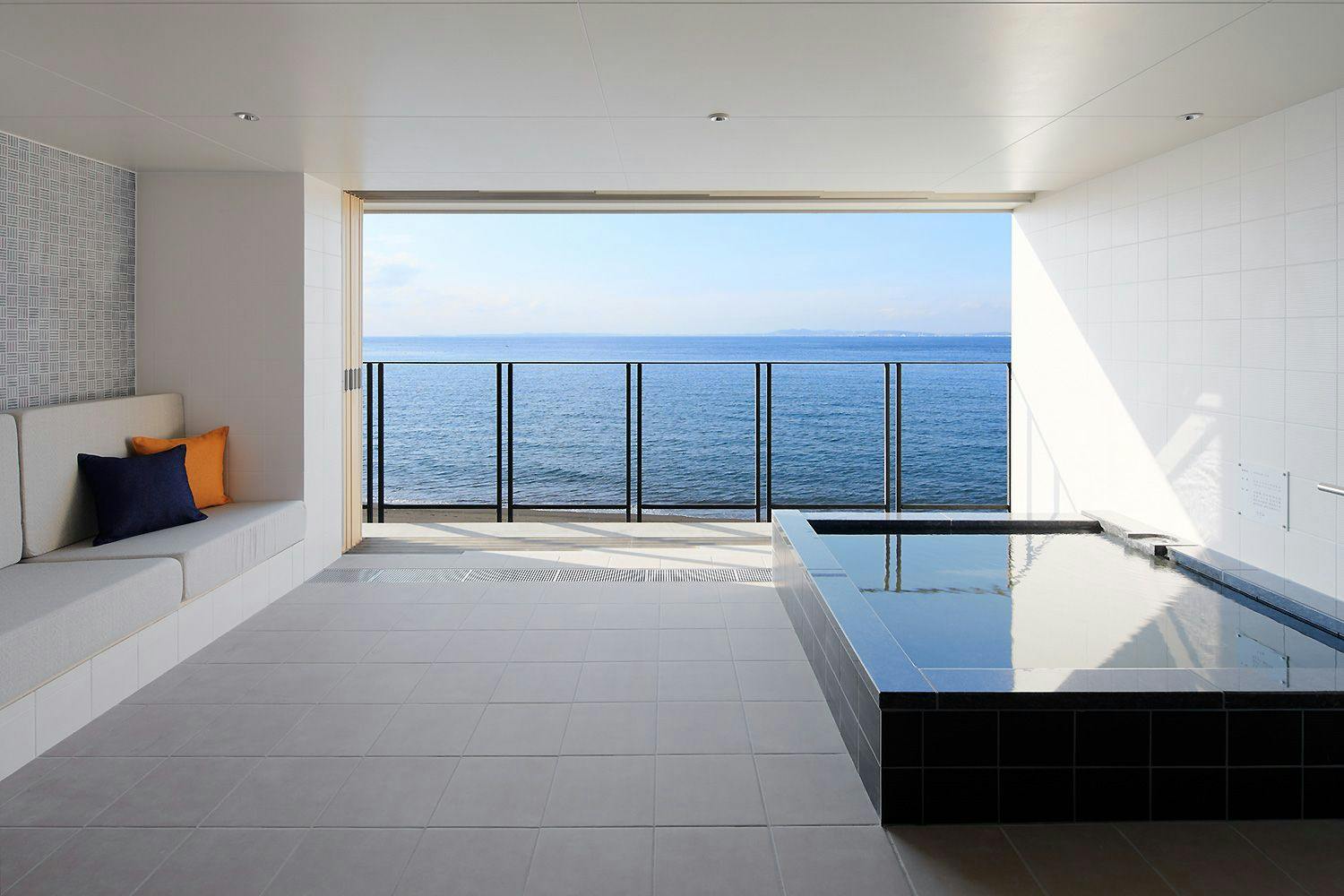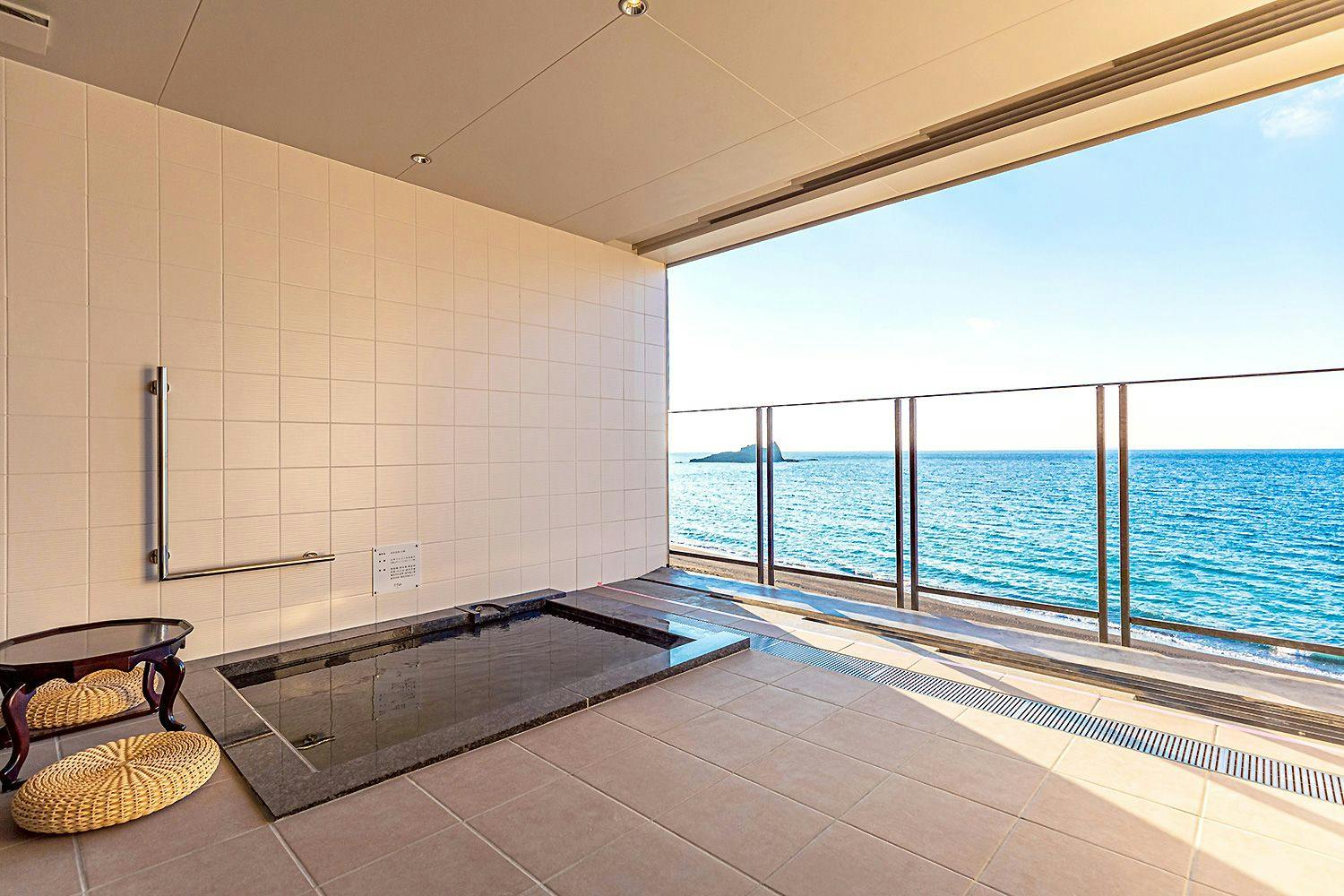 全室露天風呂付オーシャンビュー客室とラグジュアリーな空間。目の前に広がるのは太平洋の大海原。都心から少し離れた非日常の特別な時間を過ごす大人のための宿。