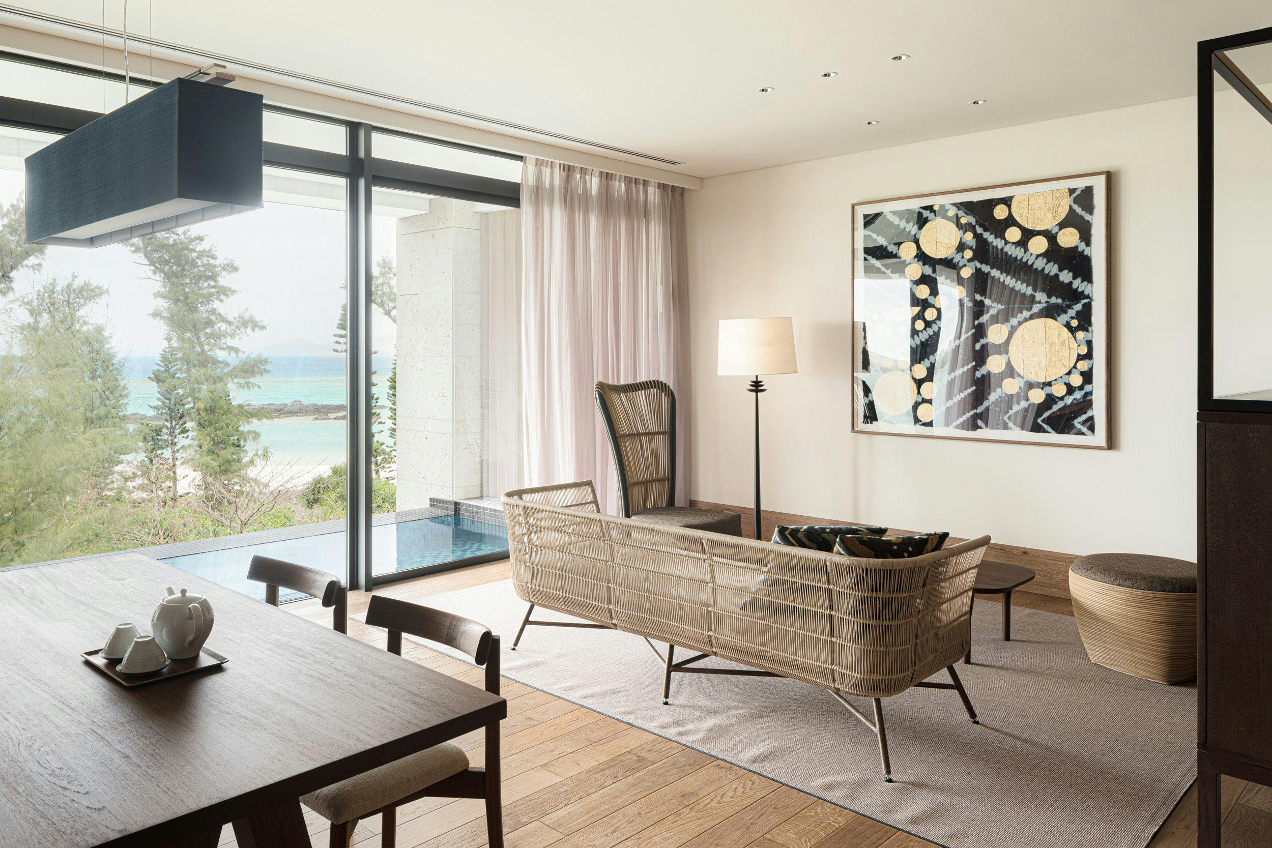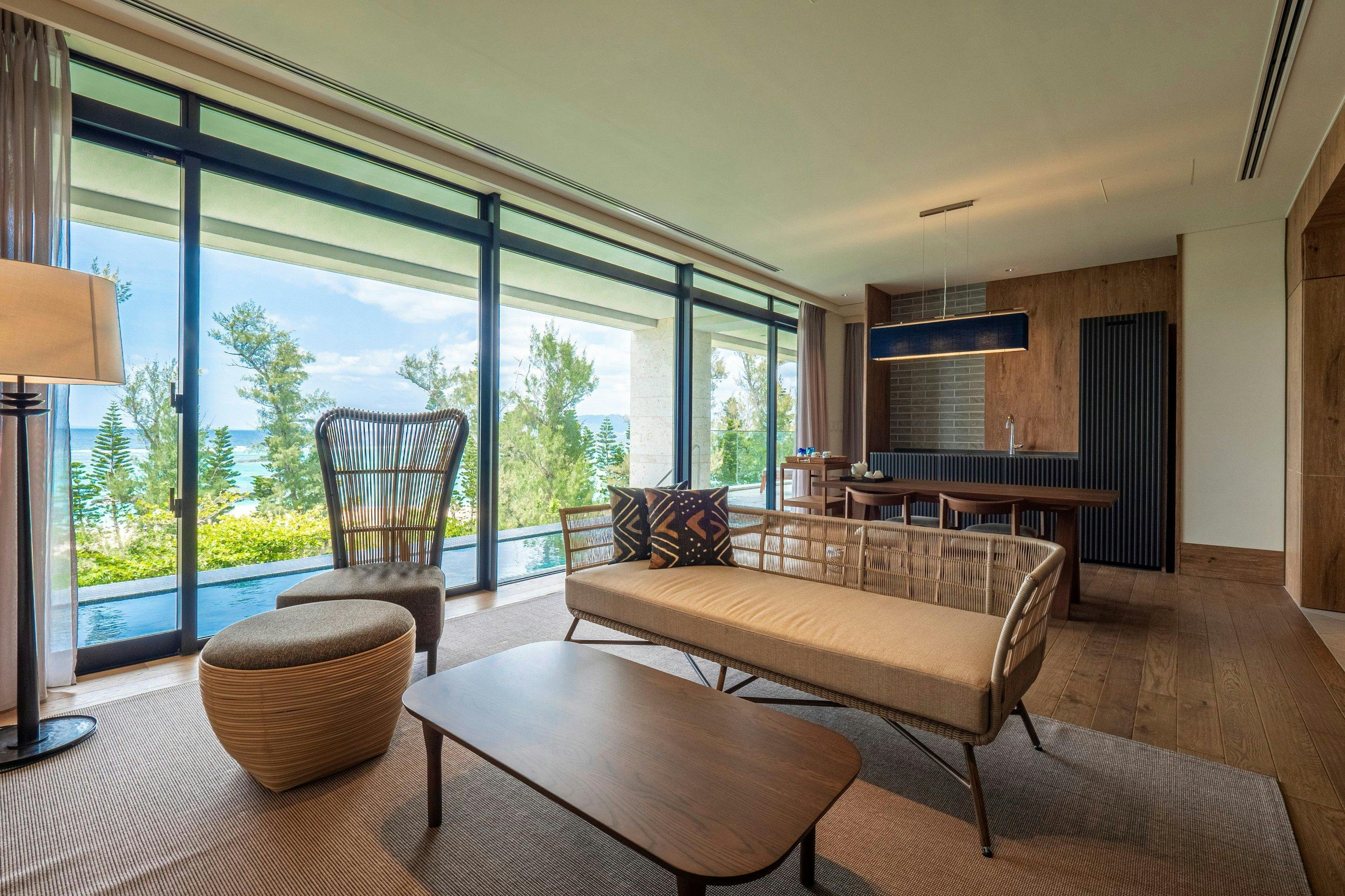 テラスから美しい熱田ビーチを眺めながら、規格外のラグジュアリーを体験。
