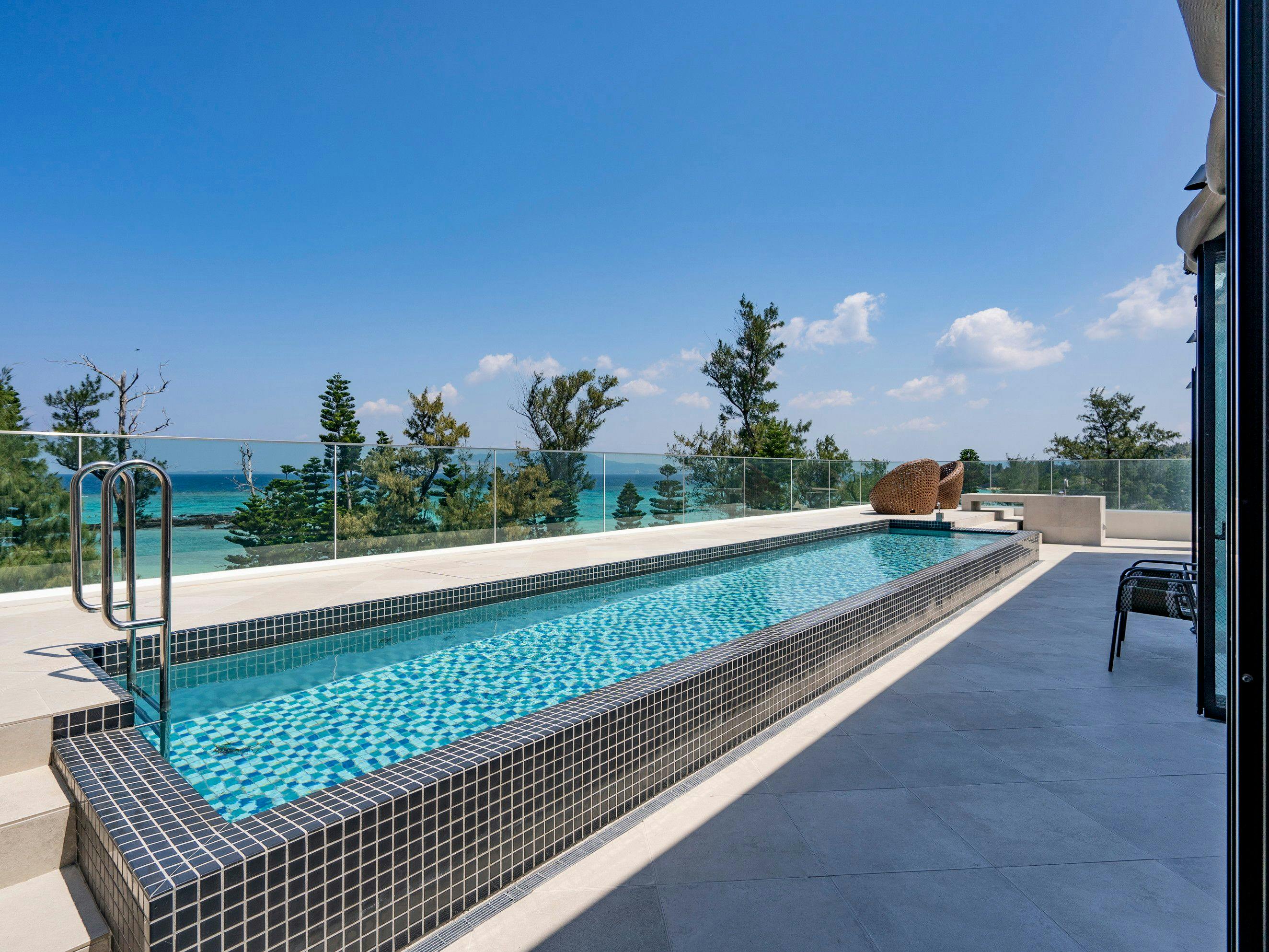 メゾネット2Fのテラスは175.97平米の広さがあり、12m×2.2m、国内最大級のプライベートプール付き。
