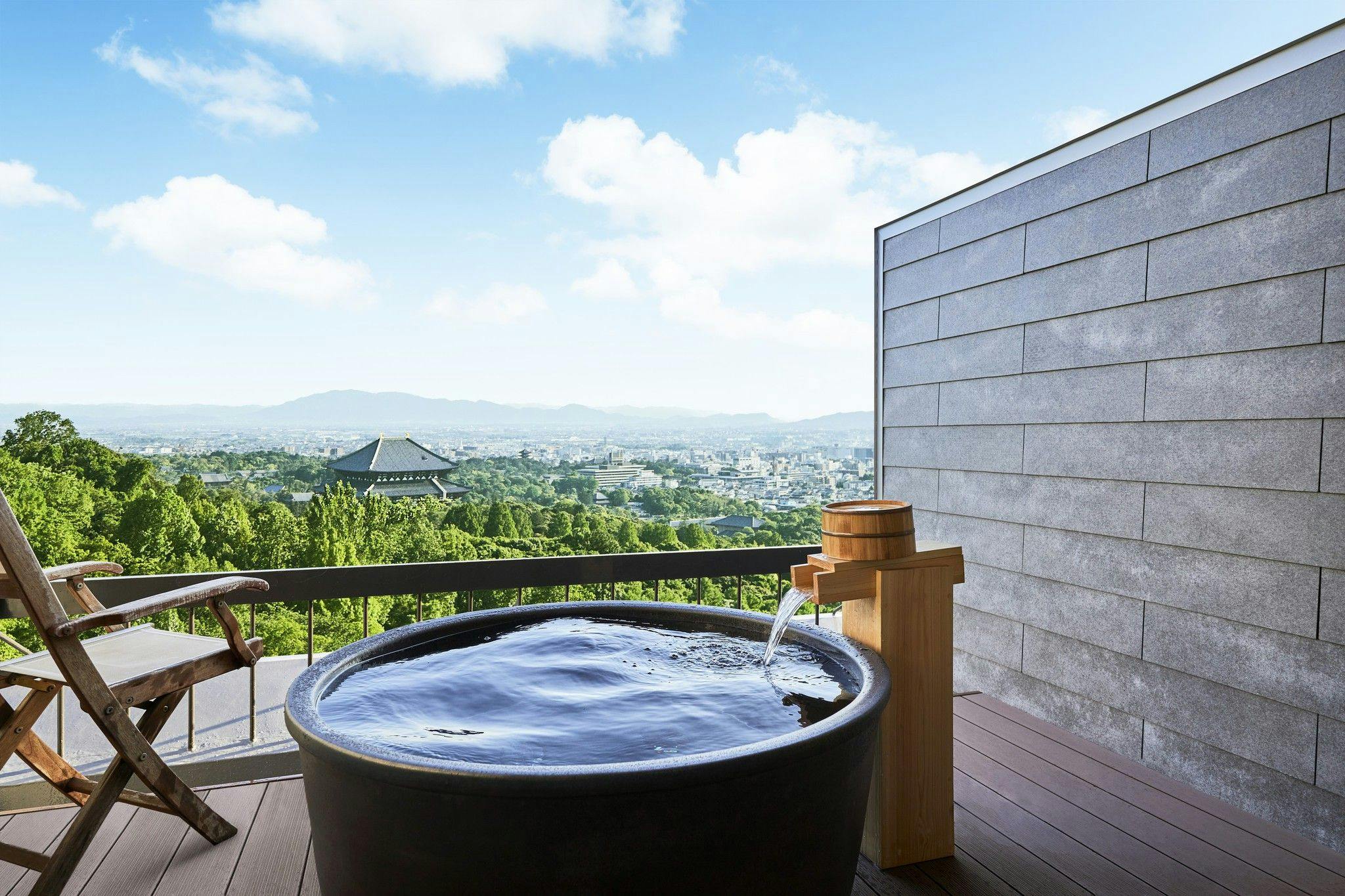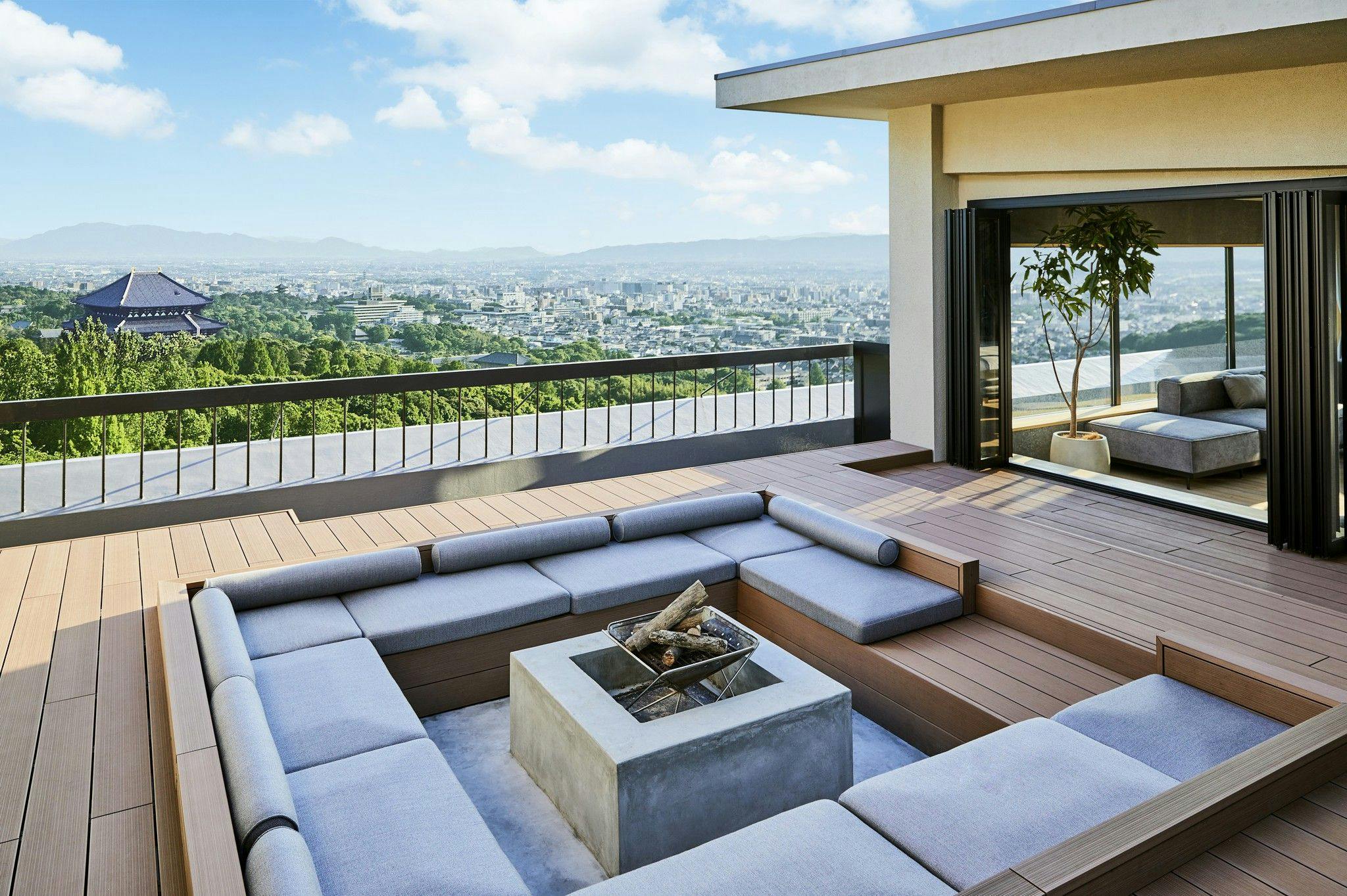 四季折々の古都奈良を一望でき、五感で奈良に浸る特別な空間。時間の移ろいを楽しめる専用の展望露天風呂と、プライベートスペースとして備わったファイアーピットでは、遠くまで星空や夜景をご堪能いただけます。