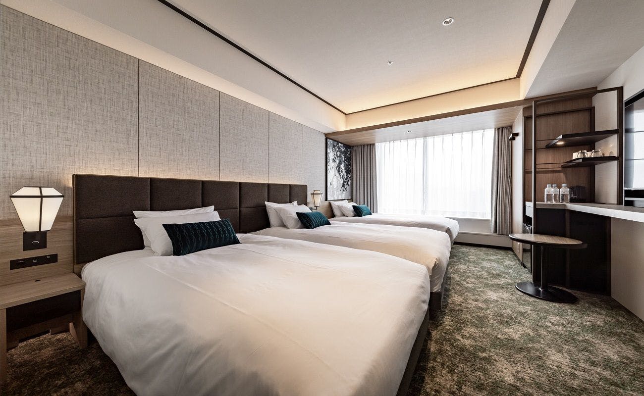 【設備】バスルーム(バスタブ付) ・ 50型壁掛け液晶テレビ ・ 冷蔵庫(東芝)高速インターネット(無線LAN)■広さ:26平米 ■ベッドサイズ:セミダブルベッド2台(幅115cm×長さ195cm)※ベッド2台を密着させて並べている客室です