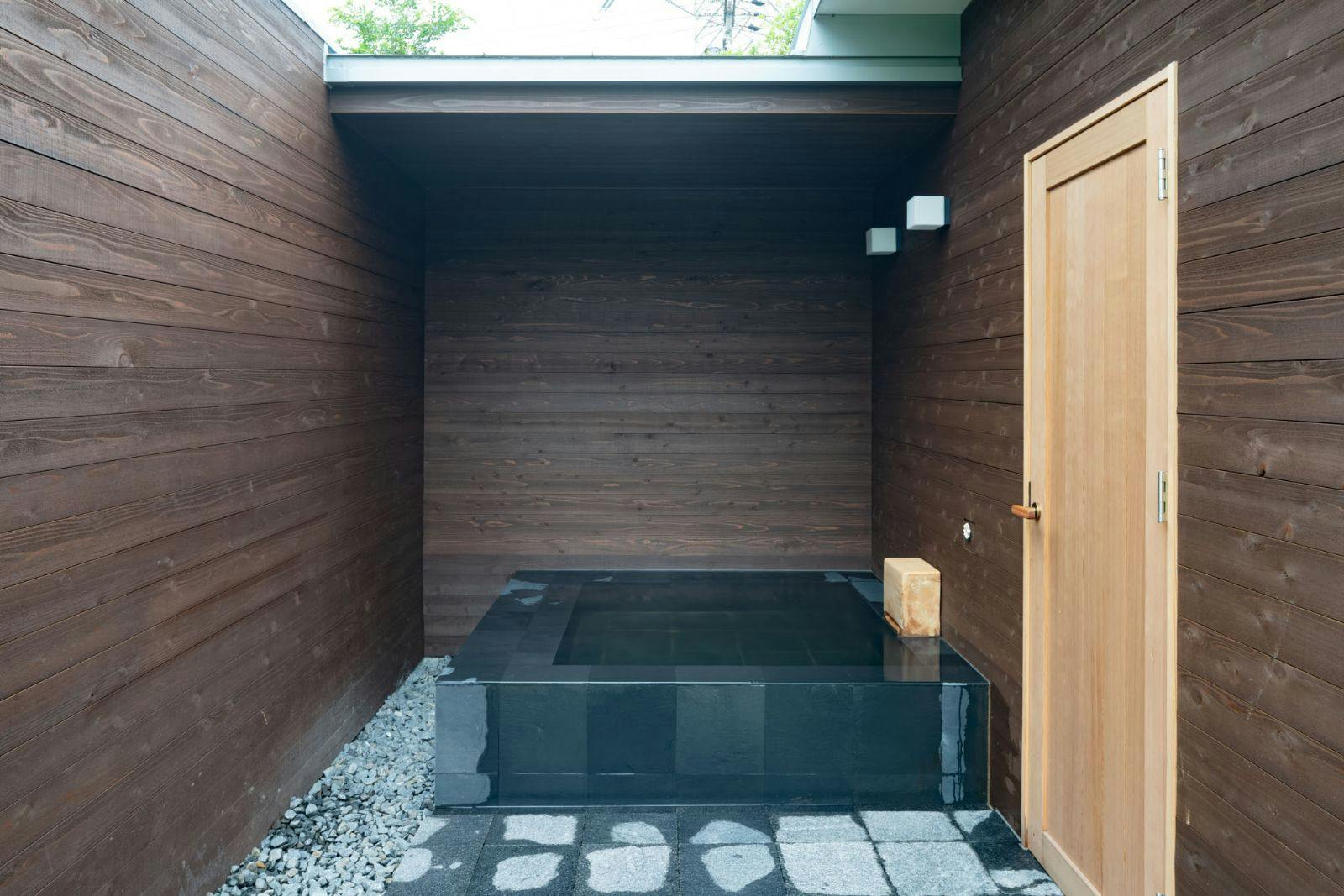 「玄」とは黒の意。「漆」をテーマにした棟では、建築の外壁やインテリア、特注の黒漆の浴槽からアートまで、「黒」の宇宙に身を委ねてください。