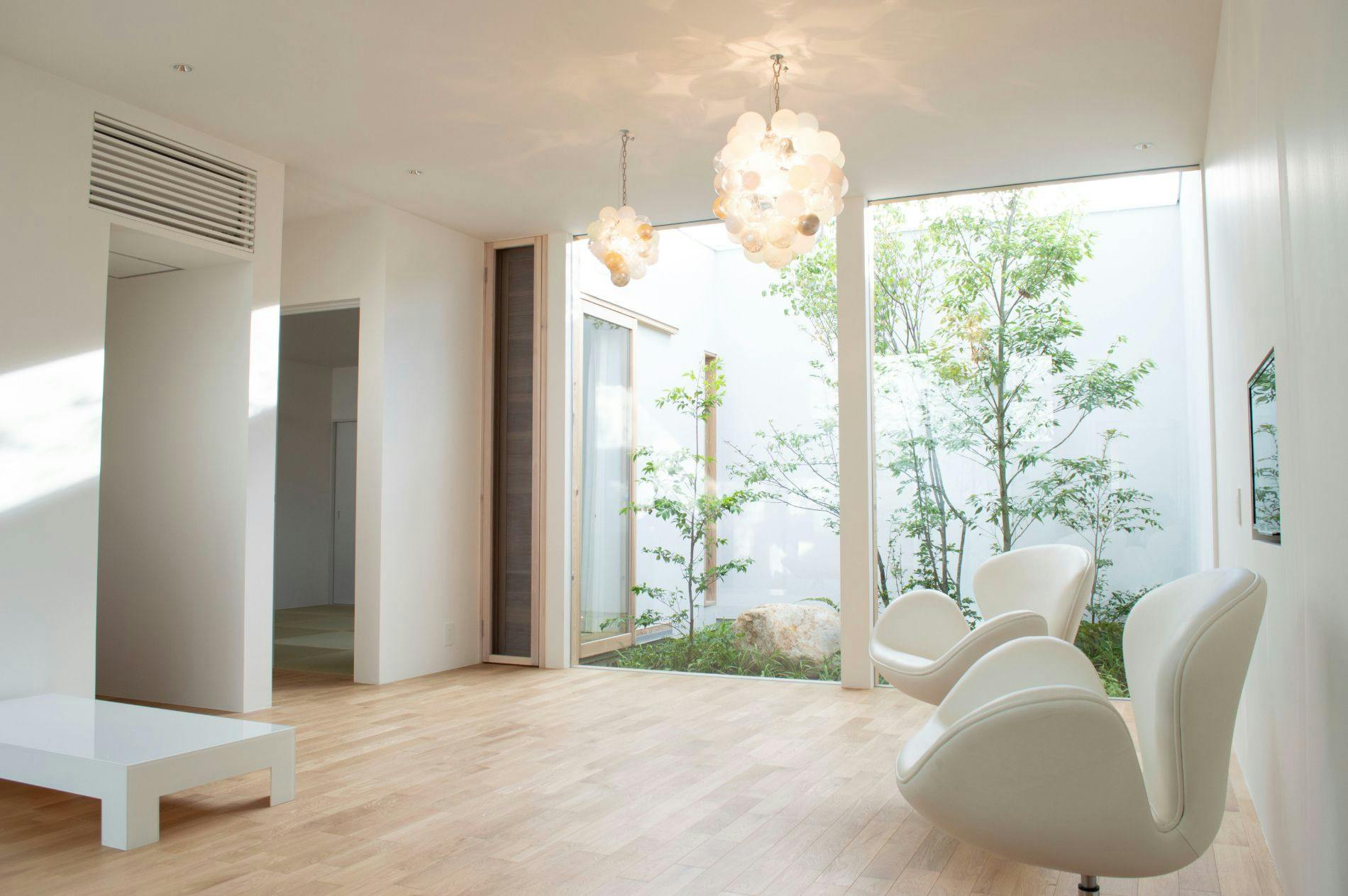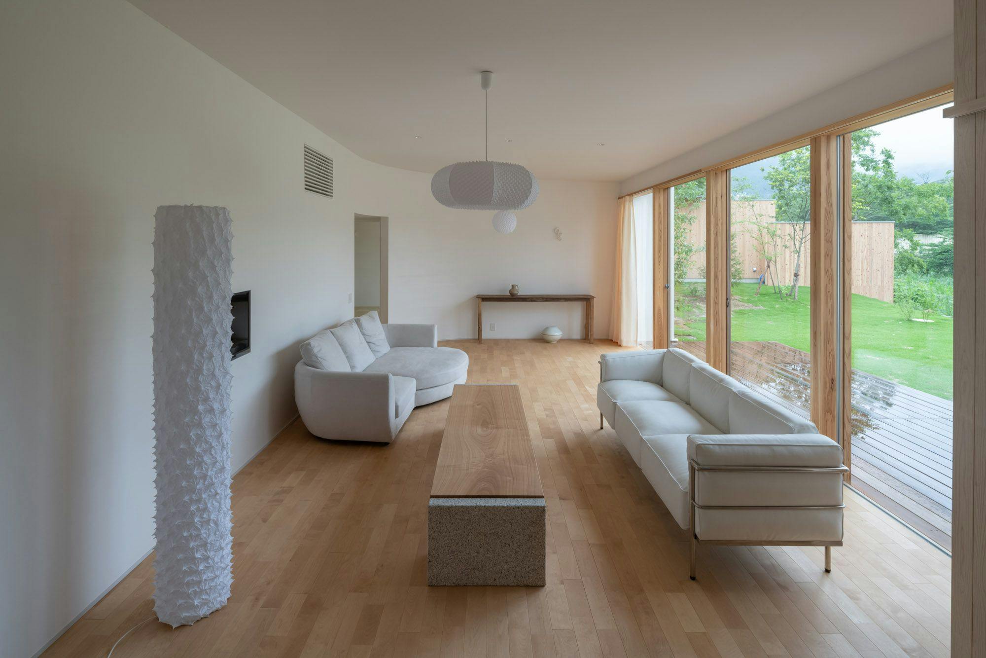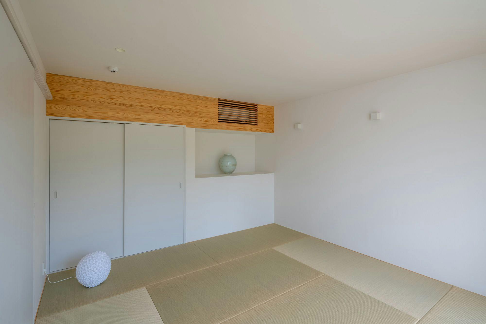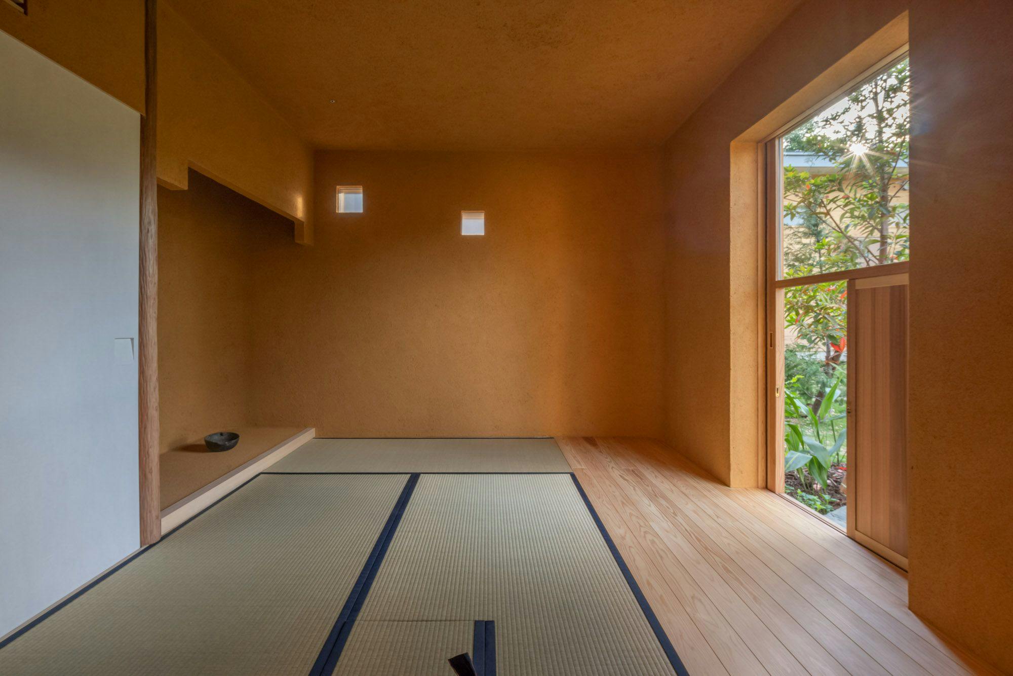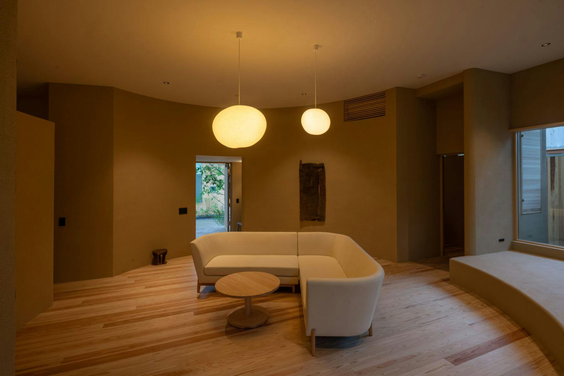 どことなくしっとりと潤い、澄んだ空気で心地よく満たされる。伝統的な素材「漆喰」が持つ調湿などの特性を存分に体感できる空間です。