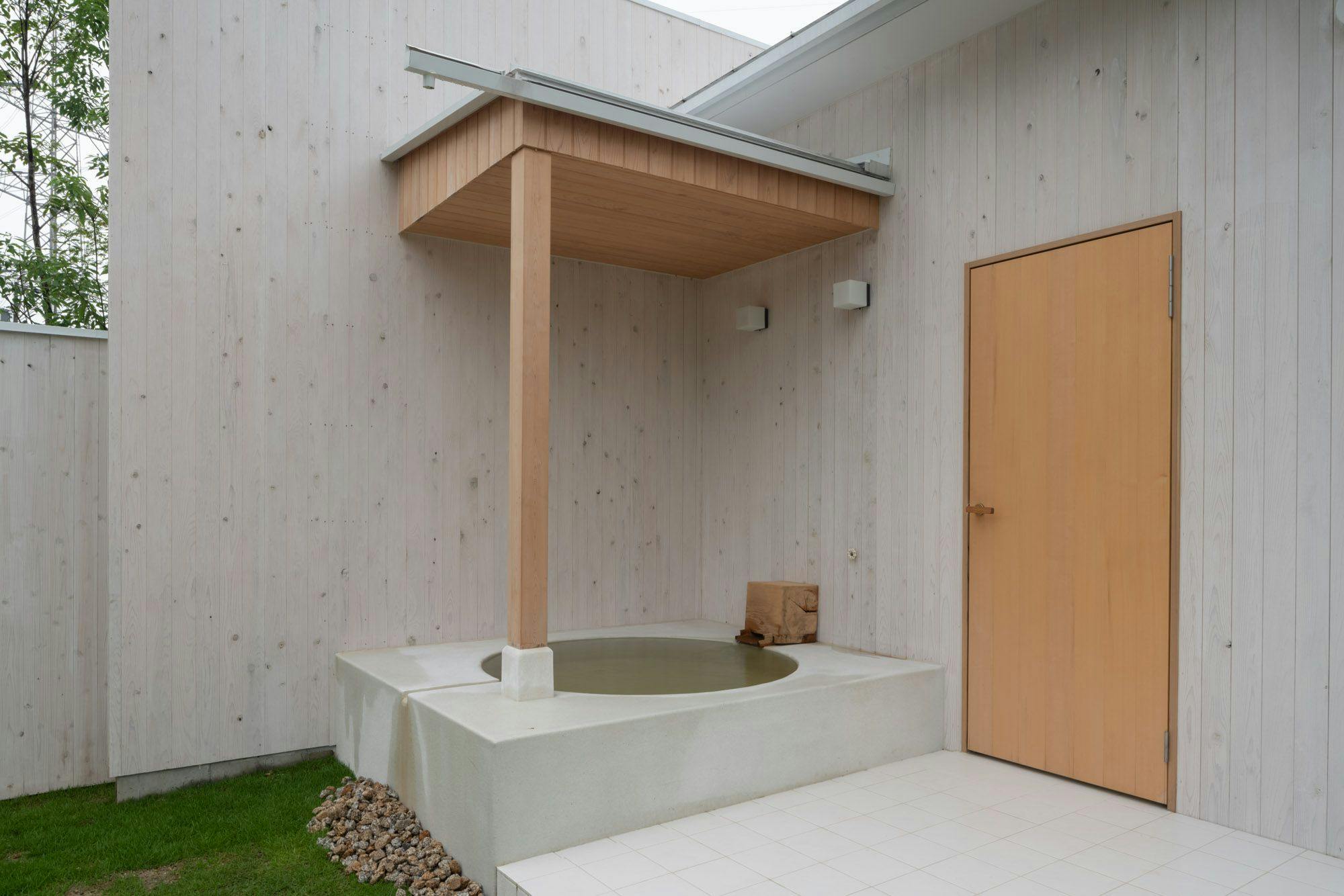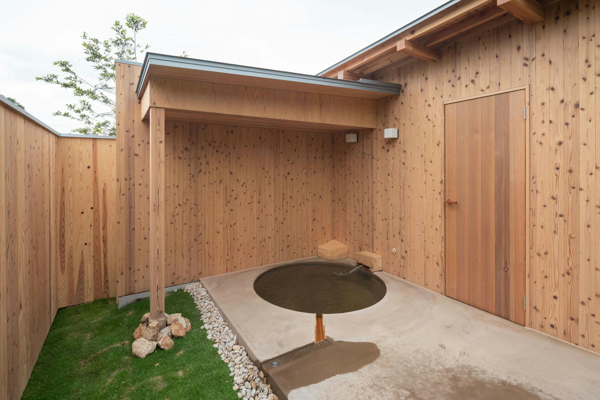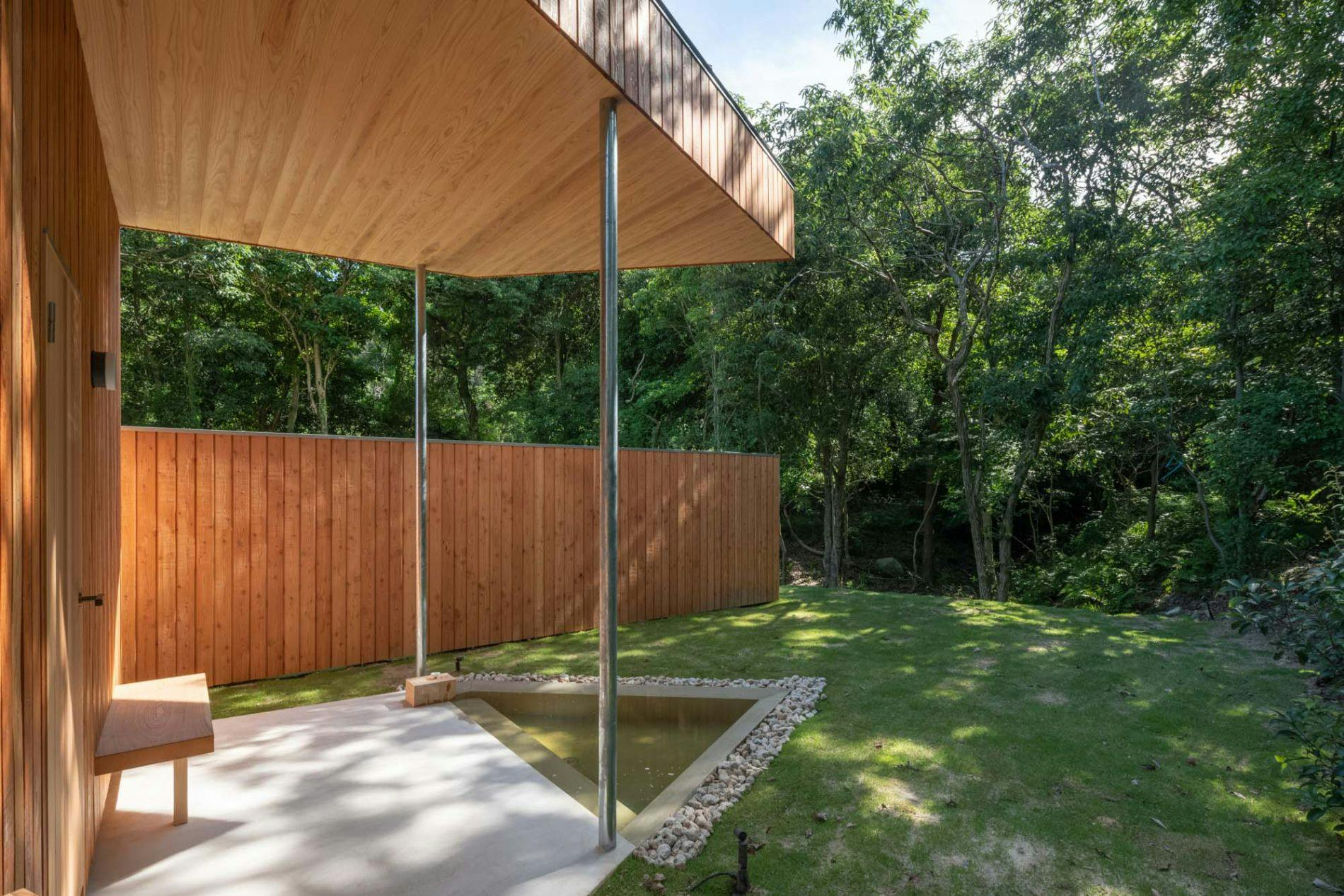 建物の内外の壁に地元の菰野石を大胆に使用しました。寡黙で力強い石に守られて静かに過ごす、非日常の醍醐味を。