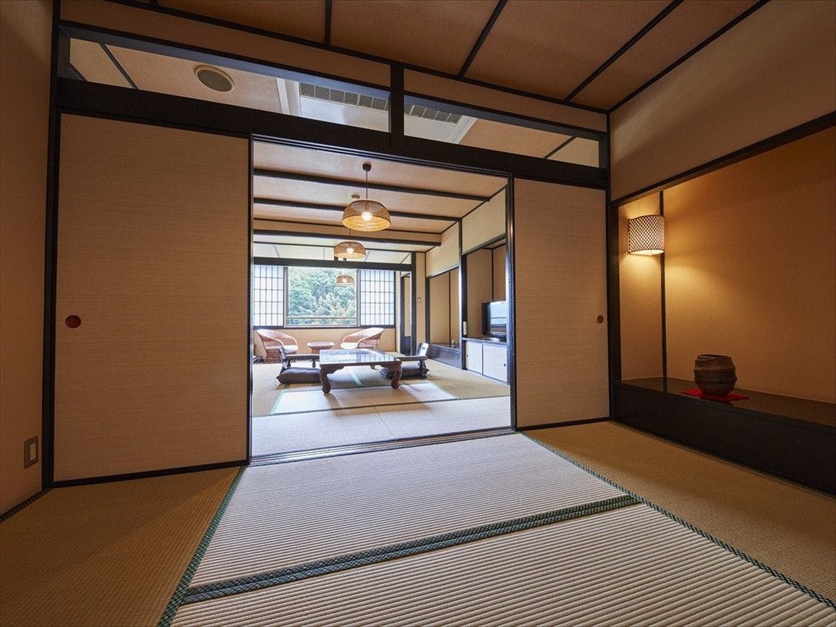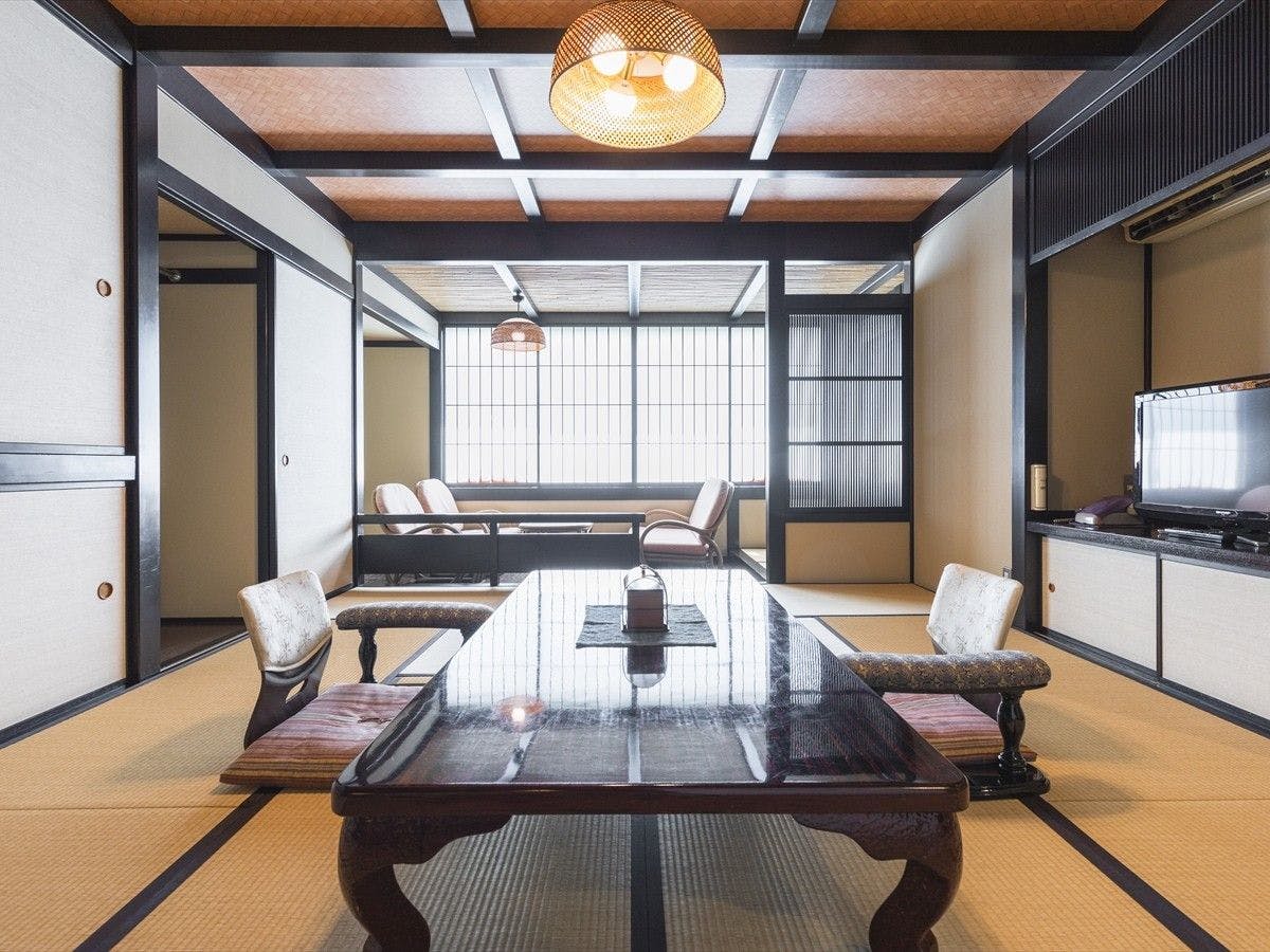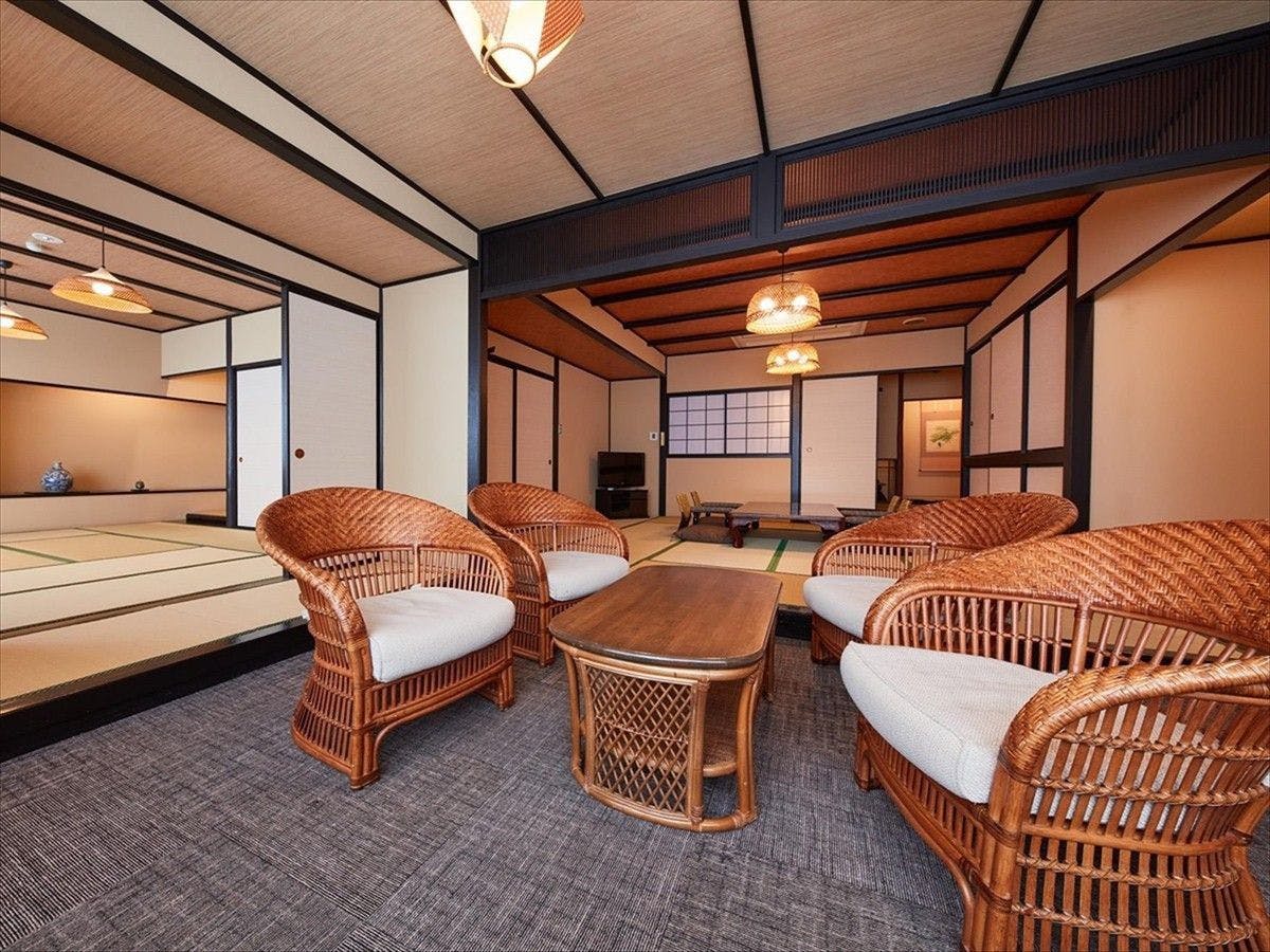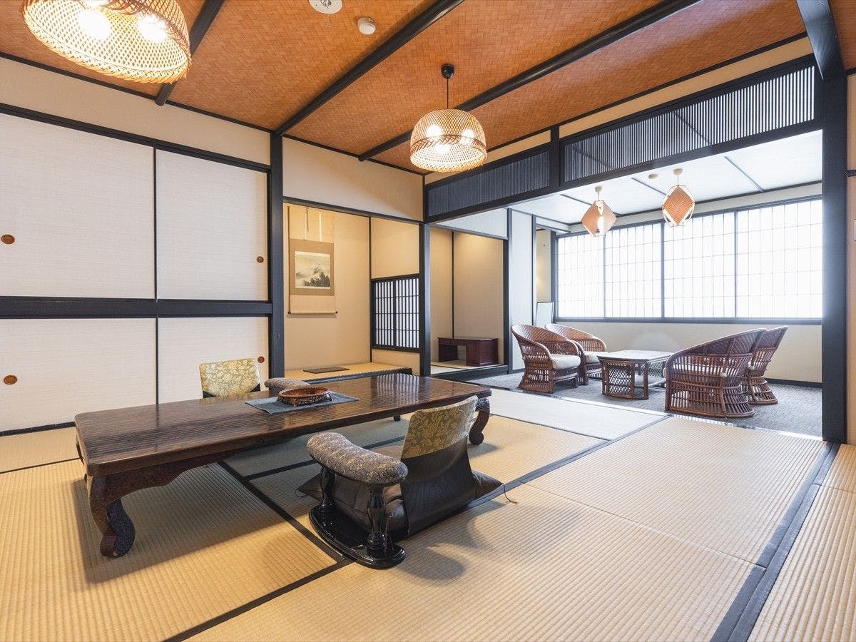 お部屋は、10畳の本間 + 6畳の次の間 + 2畳の広縁付きの2間和室のお部屋をご用意させていただきます。