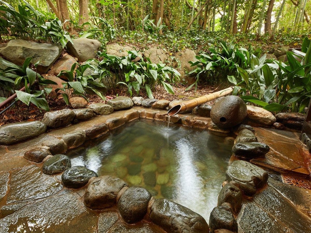 1日2組様限定のお部屋となっており、庭園岩風呂露天風呂は、良質な下賀茂温泉の源泉かけ流しとなっております。