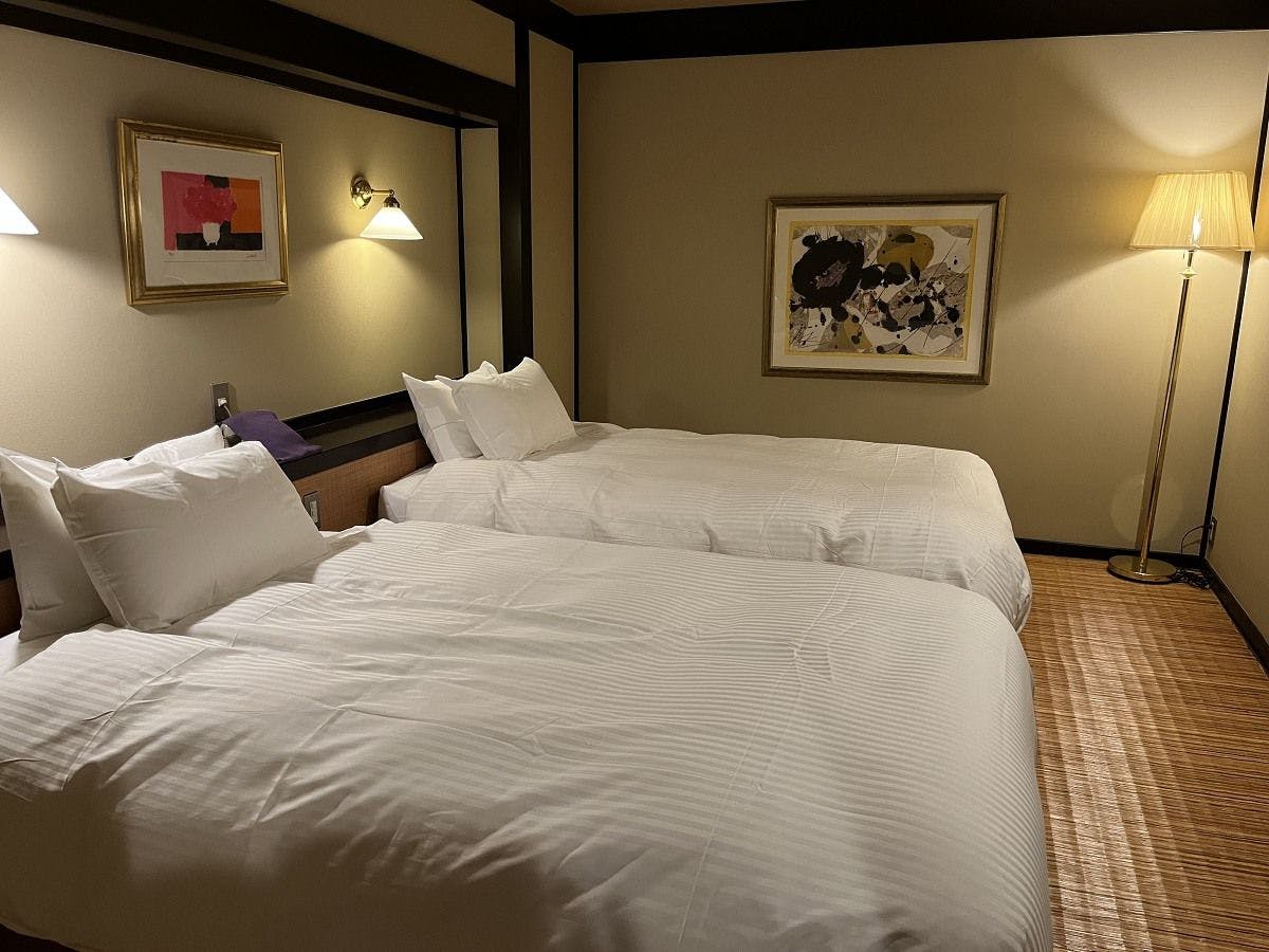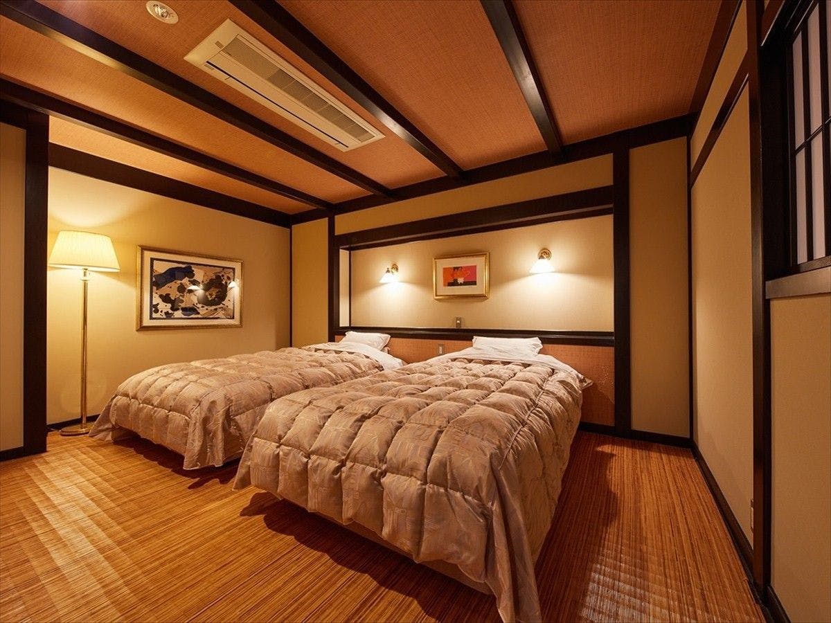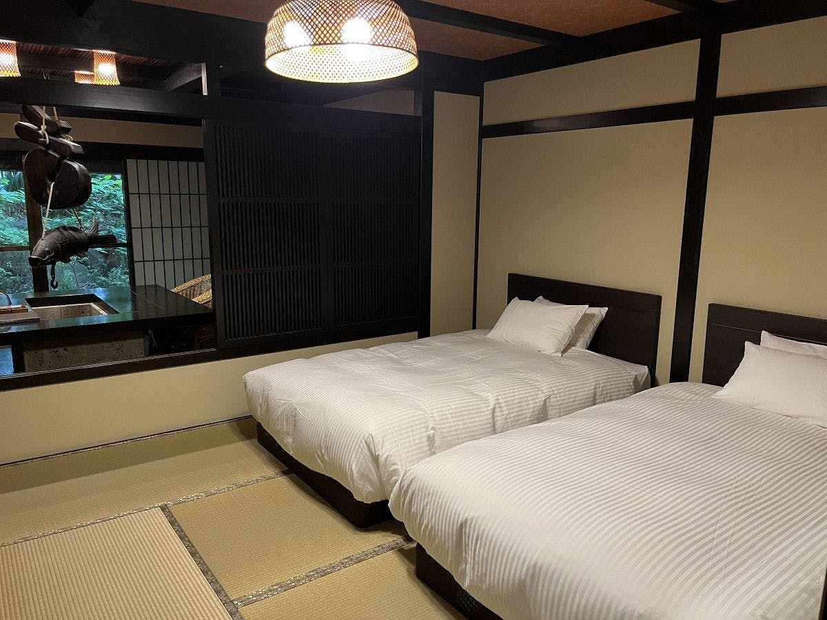 和室にツインベッドを合わせた和モダンな空間をお楽しみください。