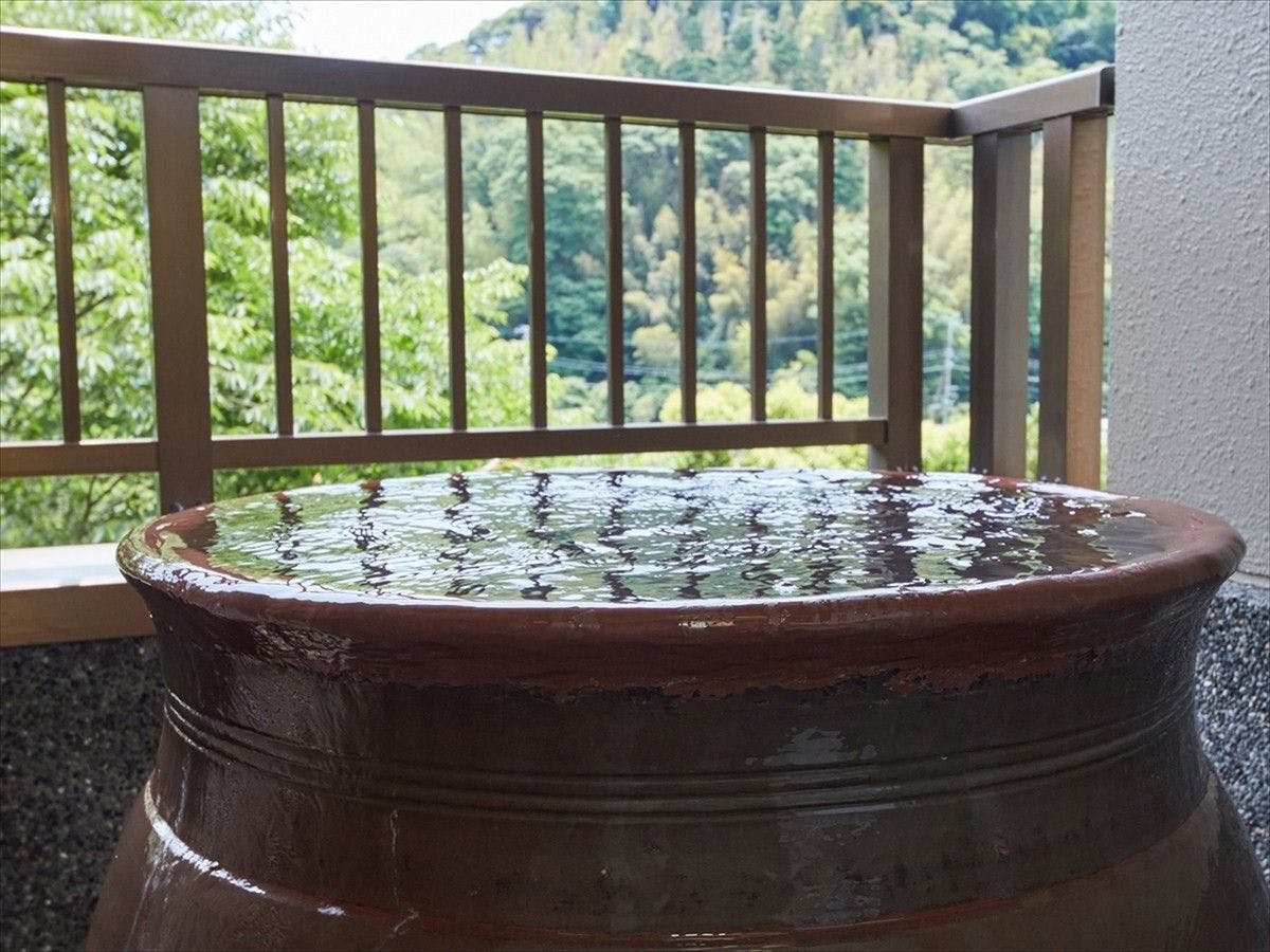広々とした開放的なお部屋で壺湯の露天風呂をお愉しみいただけます。