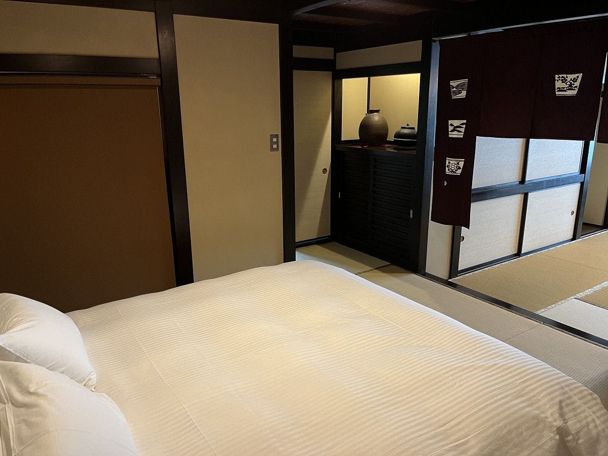 和室にキングサイズベッドを合わせた和モダンな空間をお楽しみください。