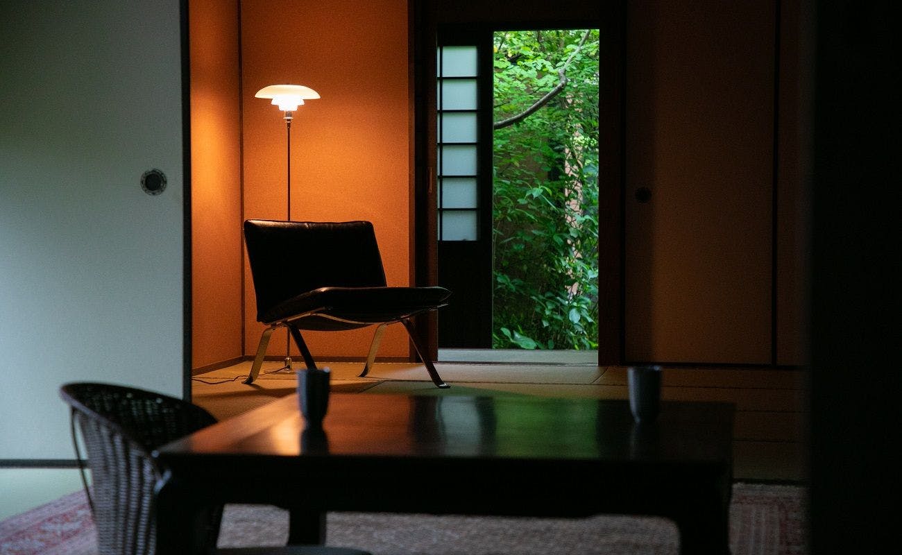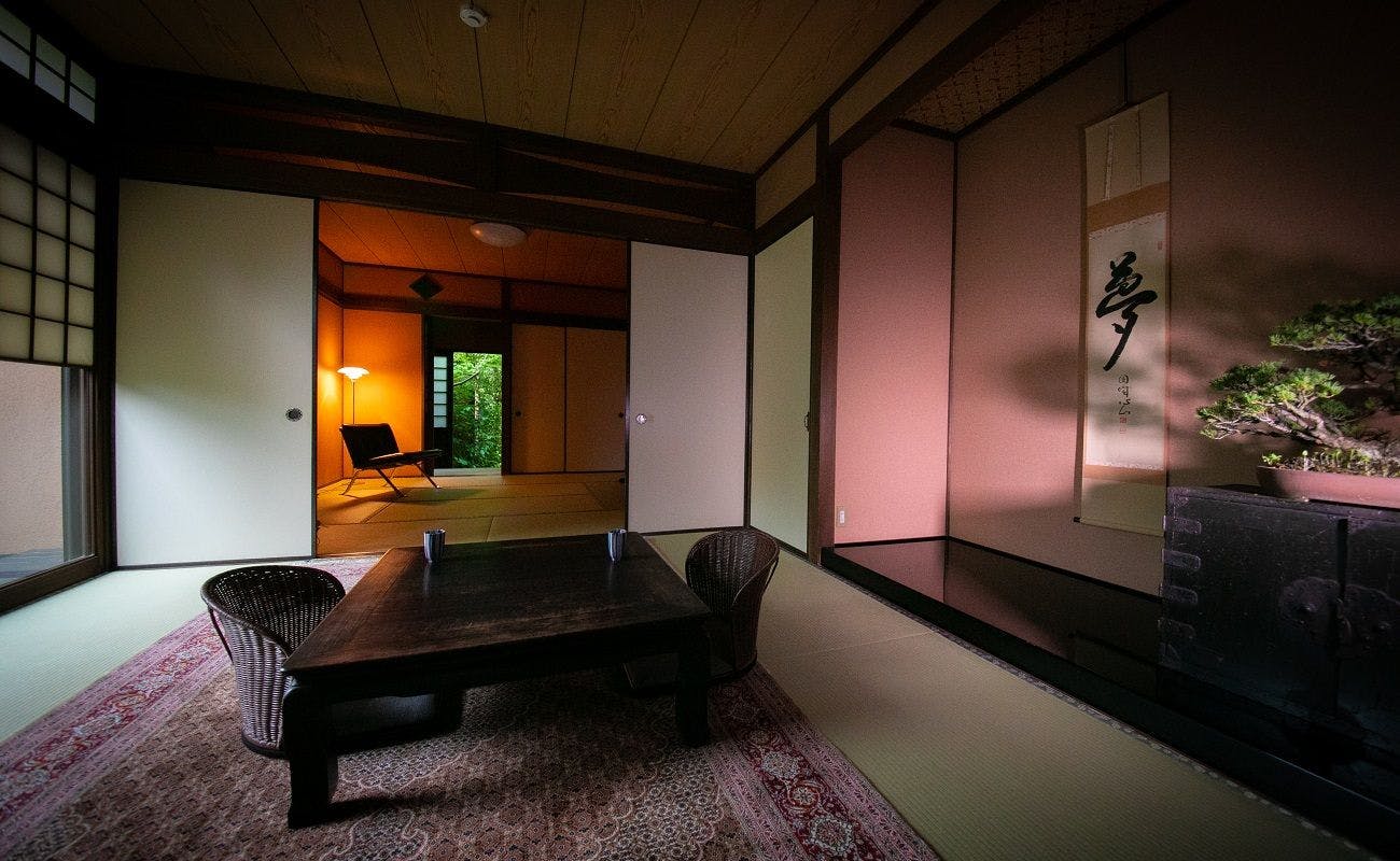 全室離れの、トロりとした泉質が自慢の露天内湯付き客室。非日常空間で癒しのひとときをお過ごしください。
