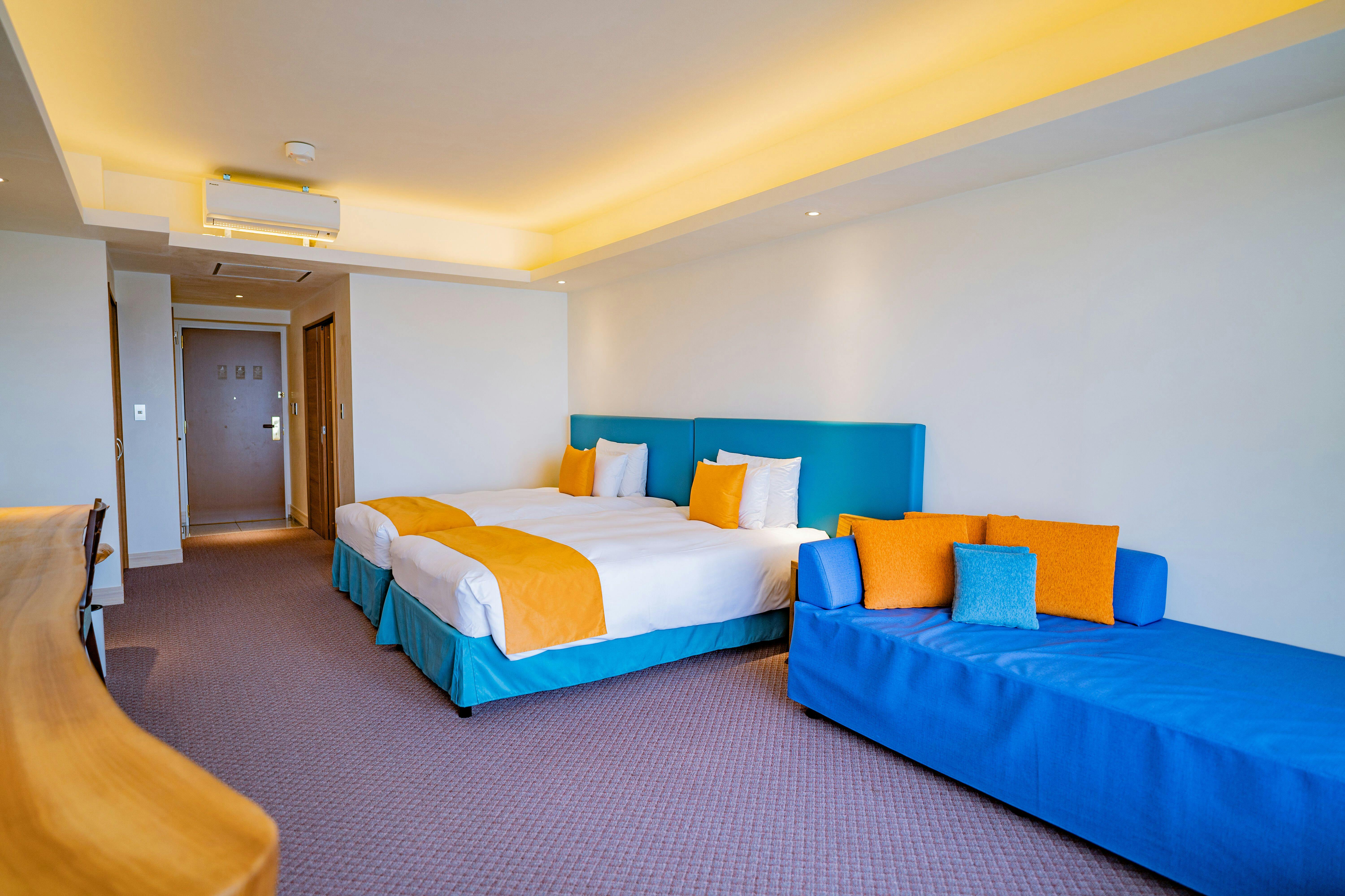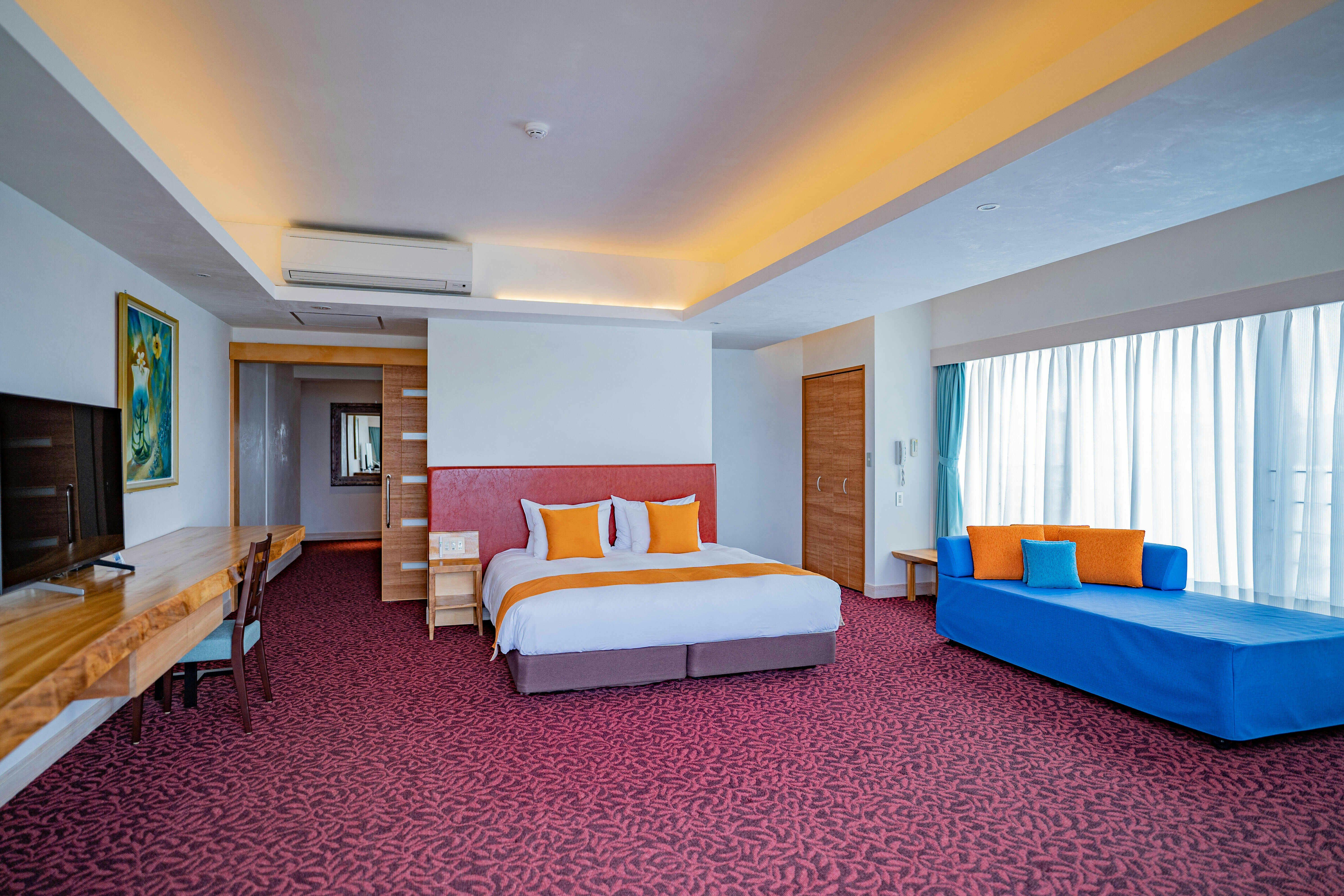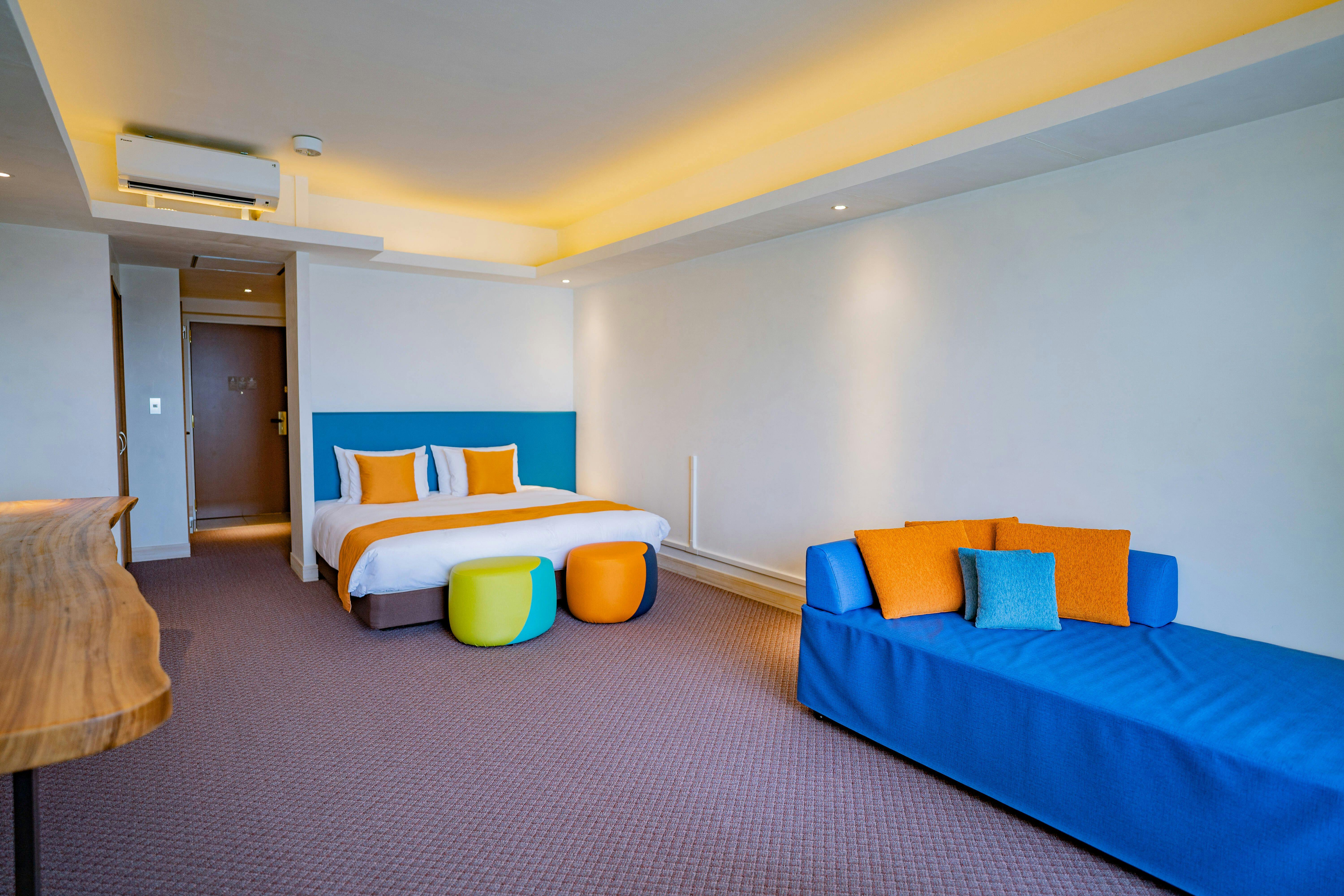 読谷の海と空…青の織りなす空間で寛ぐ。伝統と地域文化に触れ、地元の食材を堪能する「しま旅」をご提供いたします。全20室、ジャグジー完備。日常の喧騒から開放された癒しの滞在をお愉しみください。