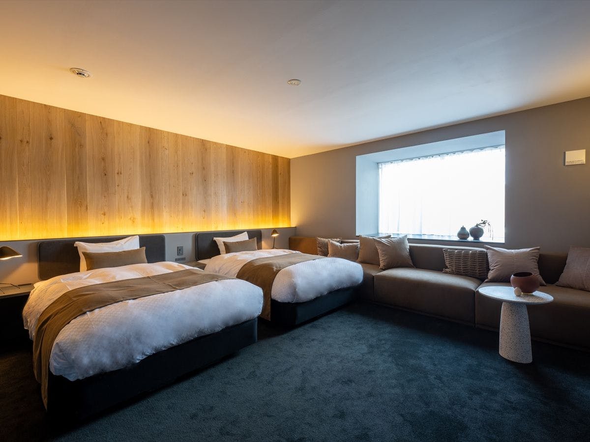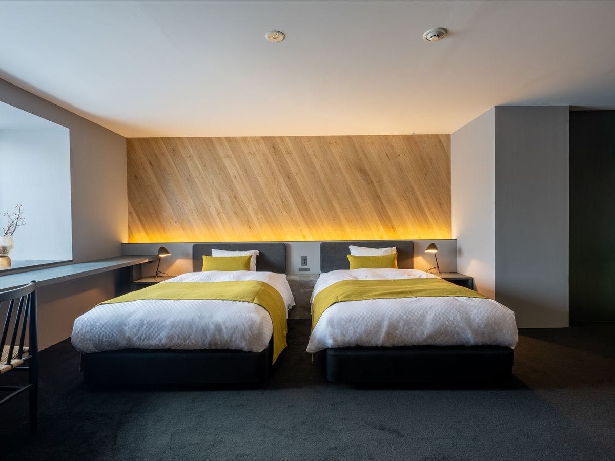 1~2名定員/40平米~/プライベートバス付き柔らかな空間が印象的な「VMGグランド(ツイン)」。全客室40平米以上のプライベート感ある空間で、心安らぐ滞在をお過ごしいただけます。