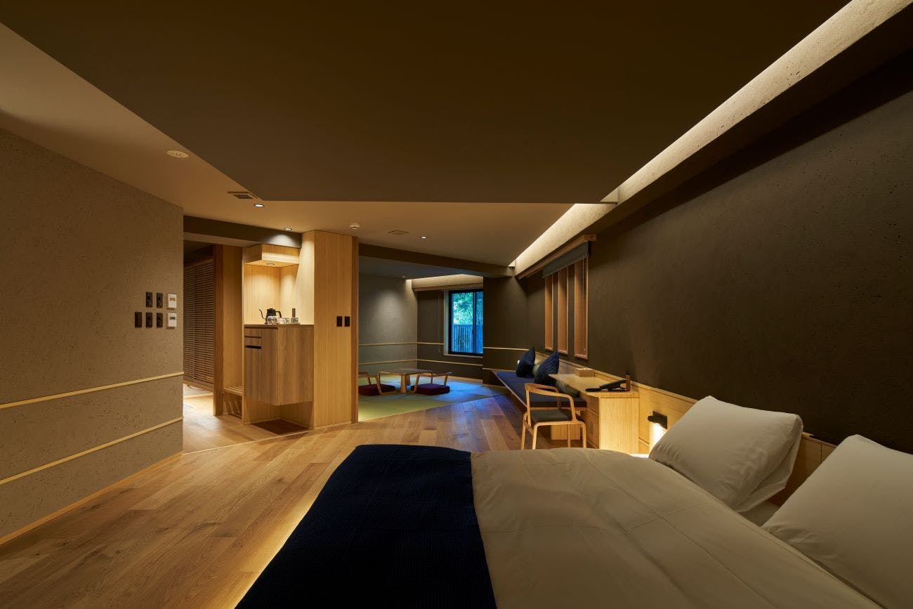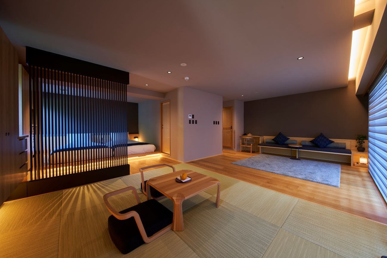 琉球畳の和室と一続きになった43.11平米の客室。