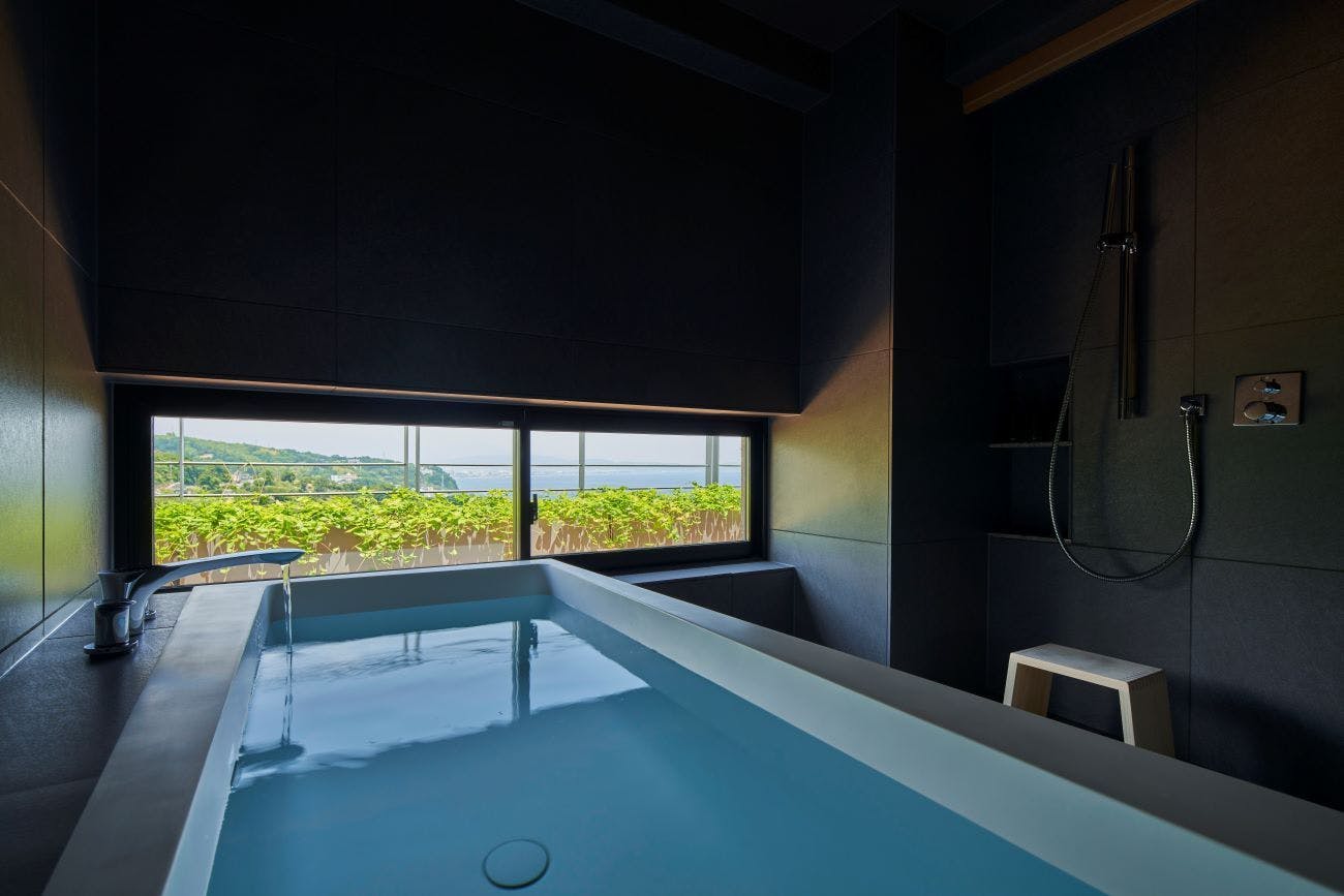 「絵のように美しい海岸」「東洋のリヴィエラ」で知られる江之浦。その土地の恵みを生かし、日本の伝統建築が持つシンプルな美しさと自然を融合させたリトリートです。温泉ミスト浴【ルフロ】もお楽しみ下さい。