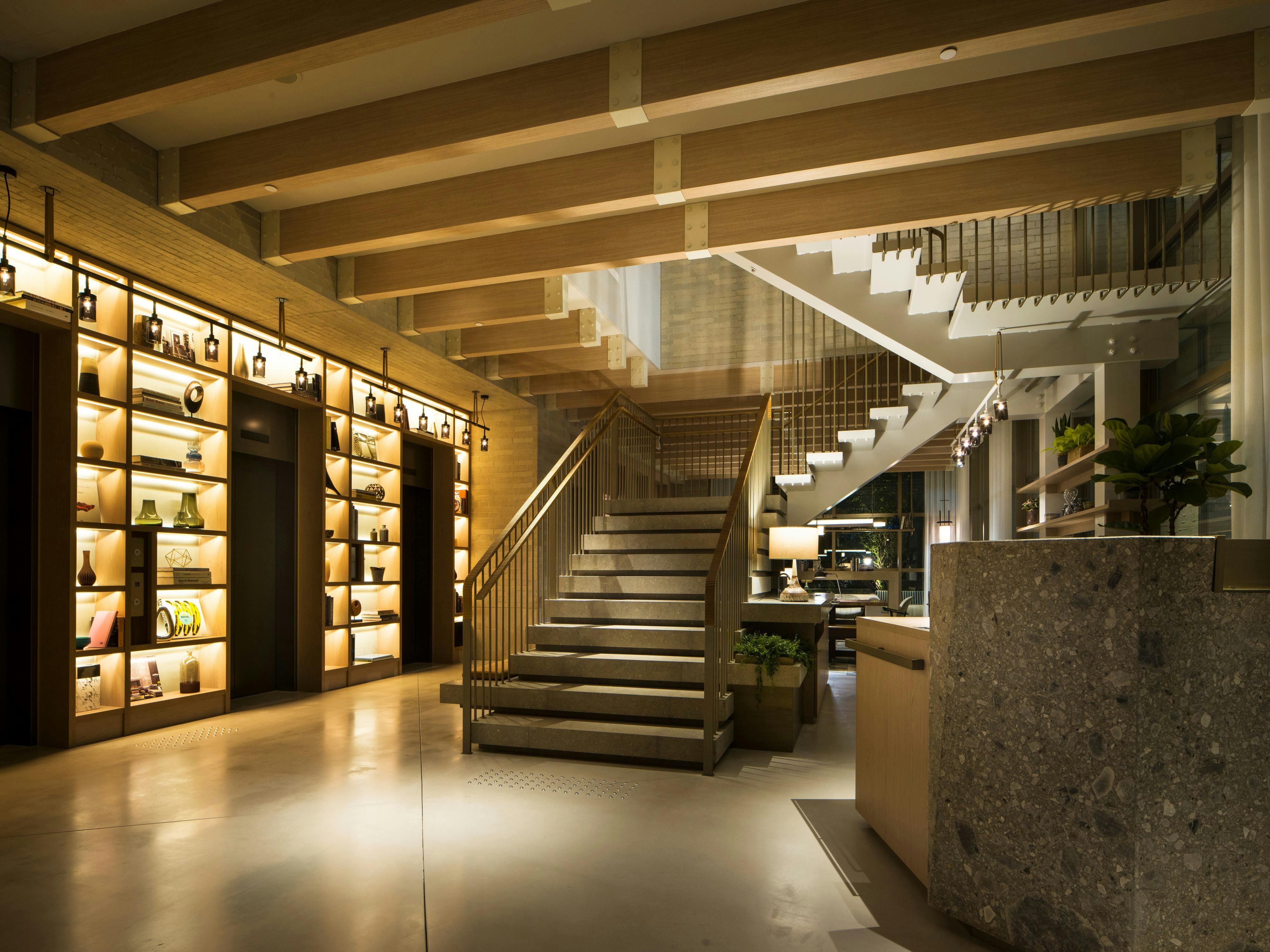 大阪メトロ西梅田からドーチカ経由徒歩5分。C93出口すぐ。梅田、大阪国際会議場が徒歩圏、フェスティバルホール徒歩1分の好立地。2021年6月オープンのマリオットによるミュージックライフスタイルホテル。