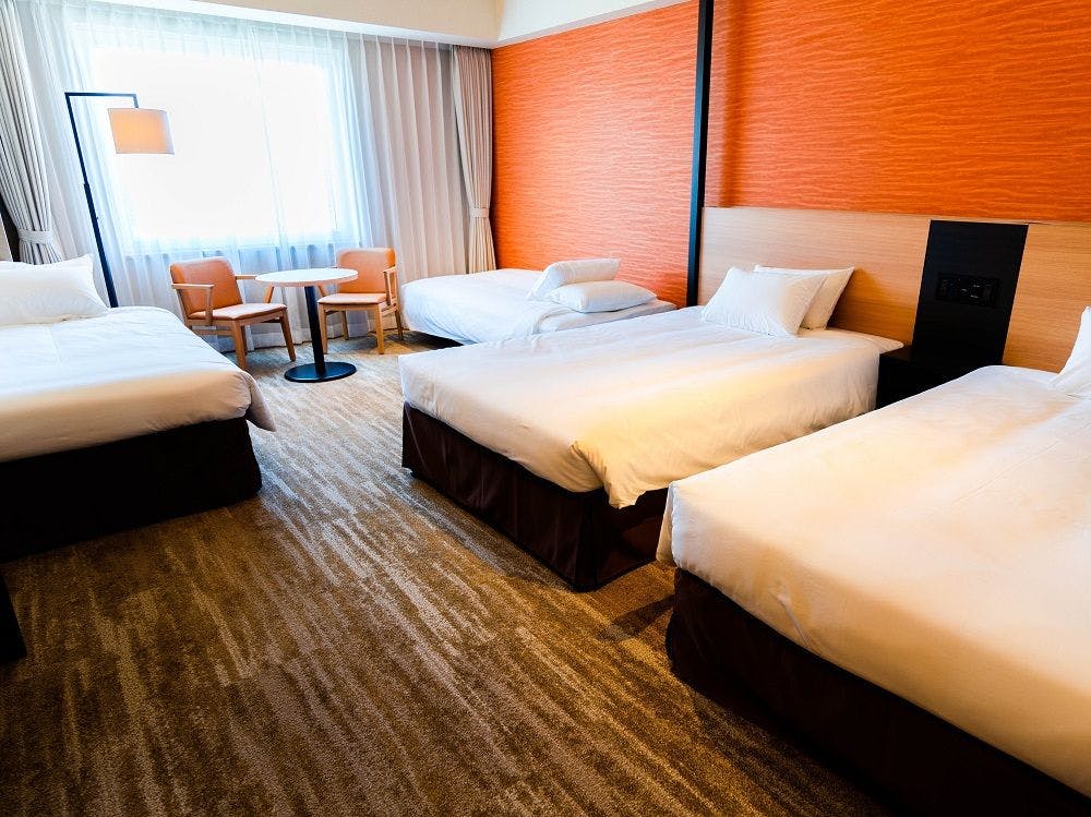 広々とした36平米の開放的な客室で、安らぎの時間をお過ごしください。120センチ幅の正規ベッド×2台に、スタッキングベッド(110センチ幅)×1台+ソファーベッド(100センチ幅)×1台を加え最大4名様までご利用頂ける禁煙のお部屋です。