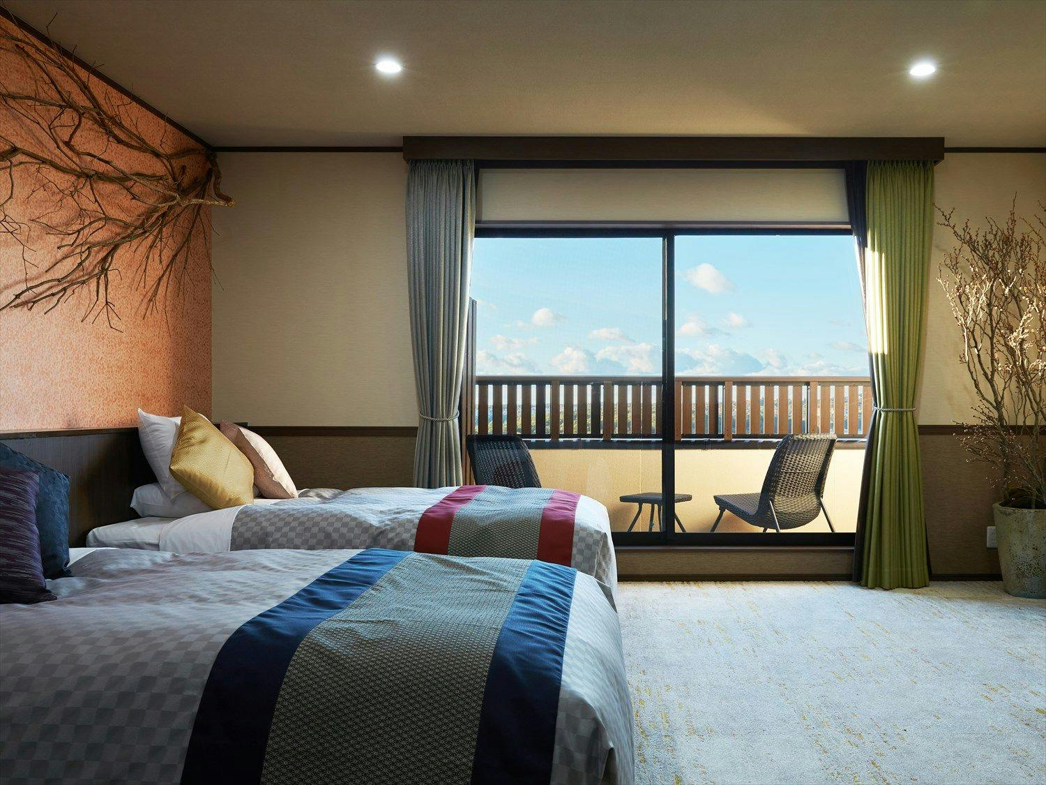 広さ 70.0平米 (客室部 和室10畳+洋室25.8平米:ツインベッド)大人3名様もしくは4名様でのご利用の場合、和室にお布団をご用意いたします。