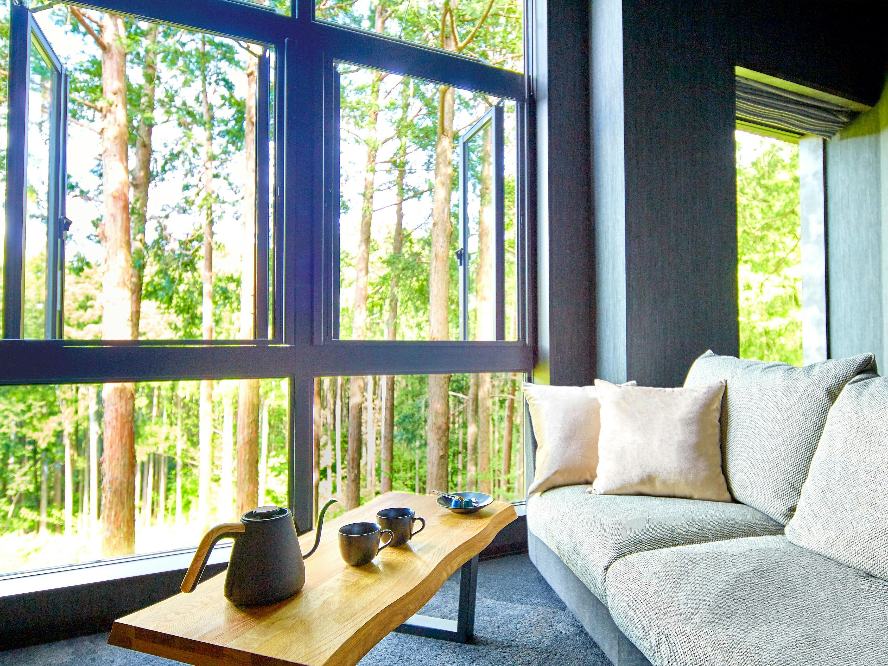 広大な森に佇む国立公園の広大な森、そのほとりに佇む隠れ宿です。お部屋は、たったの7室ですので、館内は何時でも大変静かでございます。深い森と小鳥の囀りと風の薫を、心ゆくまでご堪能くださいませ。