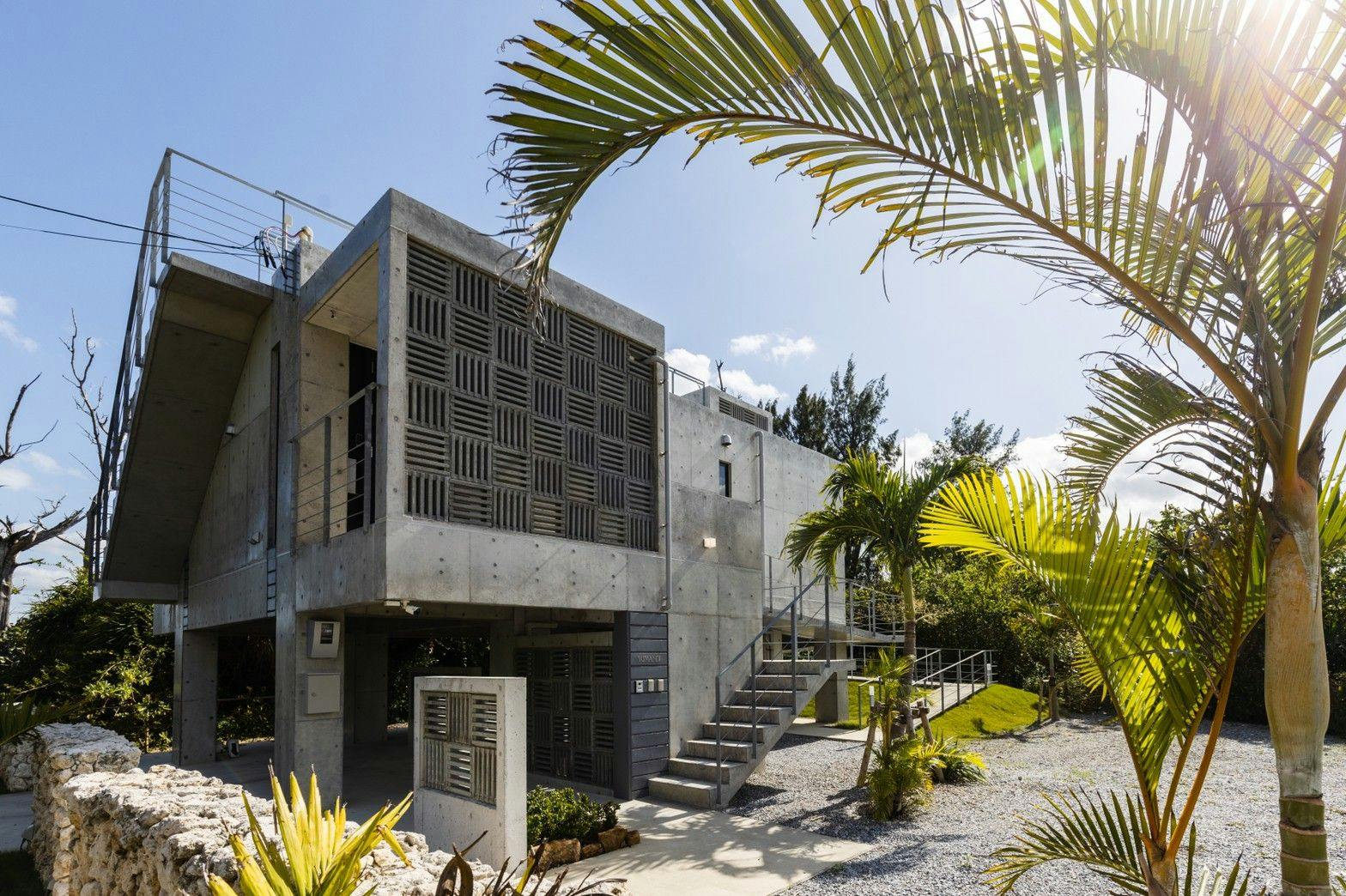 1階に独立した2つの寝室、バスルームとシャワーブース、1階と2階にそれぞれトイレを備えた,ファミリーやグループに最適なメゾネットタイプのスイートルームです。ミニキッチン、洗濯機、乾燥機を完備しており、古宇利島で暮らすようにお過ごしいただけます。【定員】 7名【面積】 105.1平米【ベッドサイズ】 1100mm×4台/和寝具1000mm×4枚