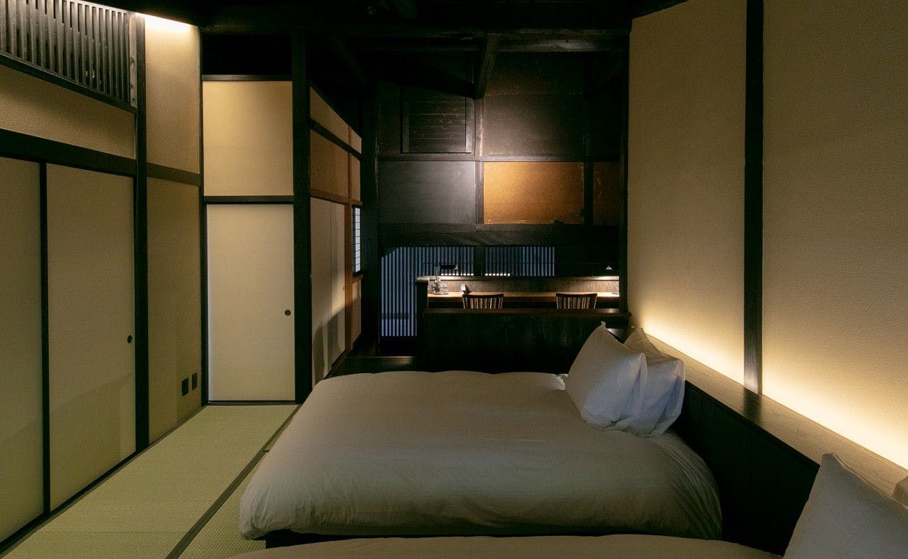 このお部屋は、まさに伝統建築の柱や梁を利用しながらも、新しく生まれ変わったデザイナーズルームです。