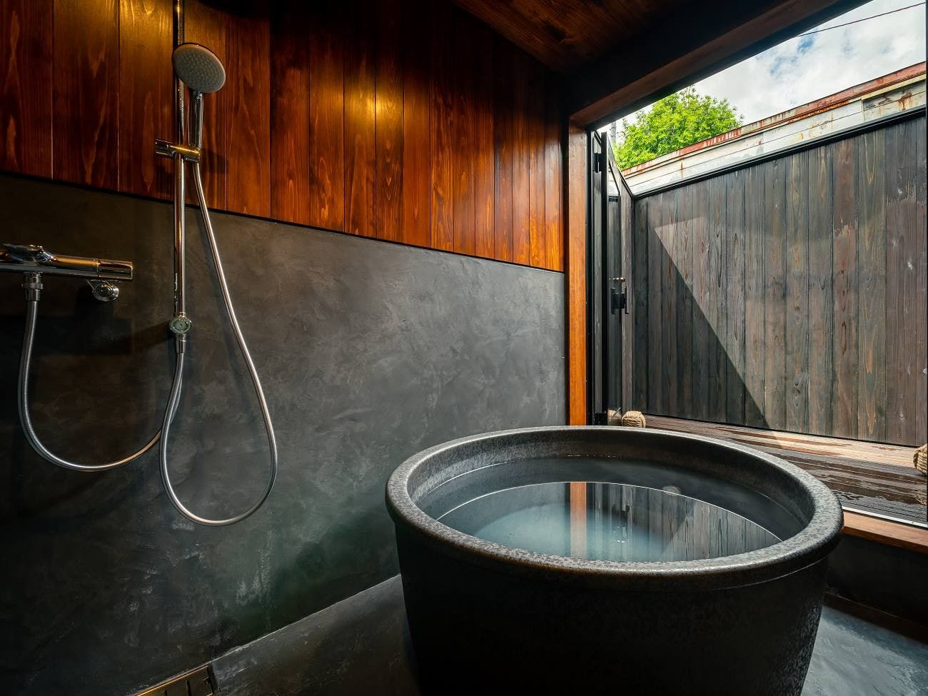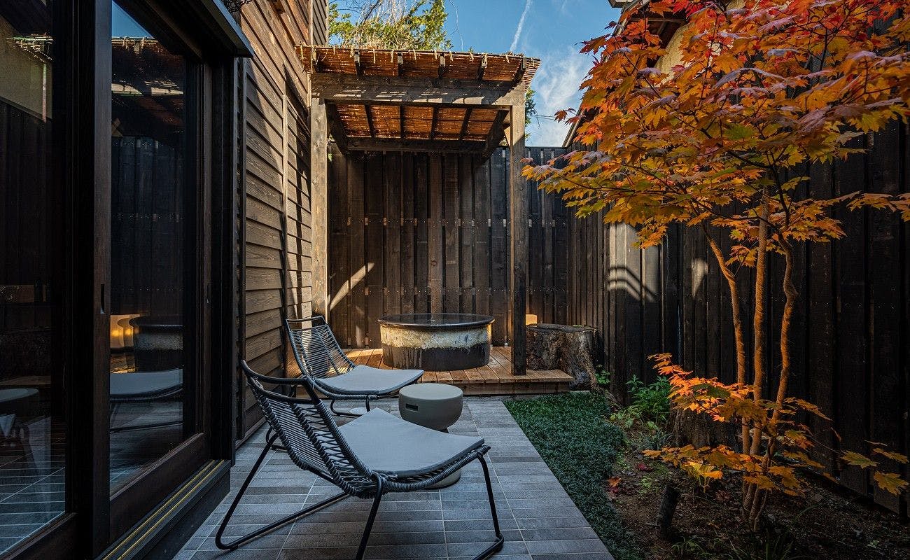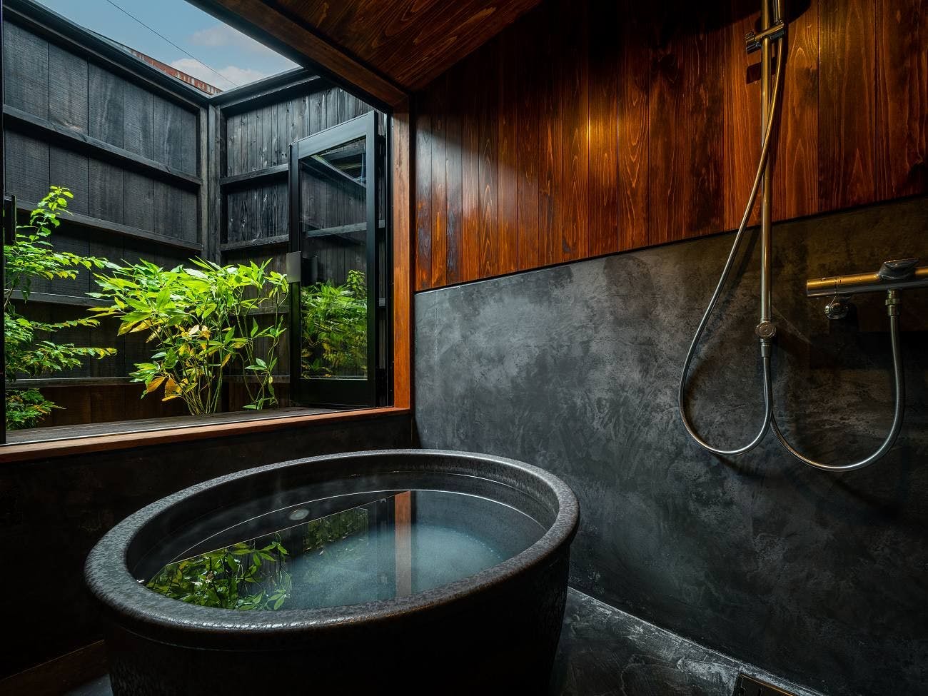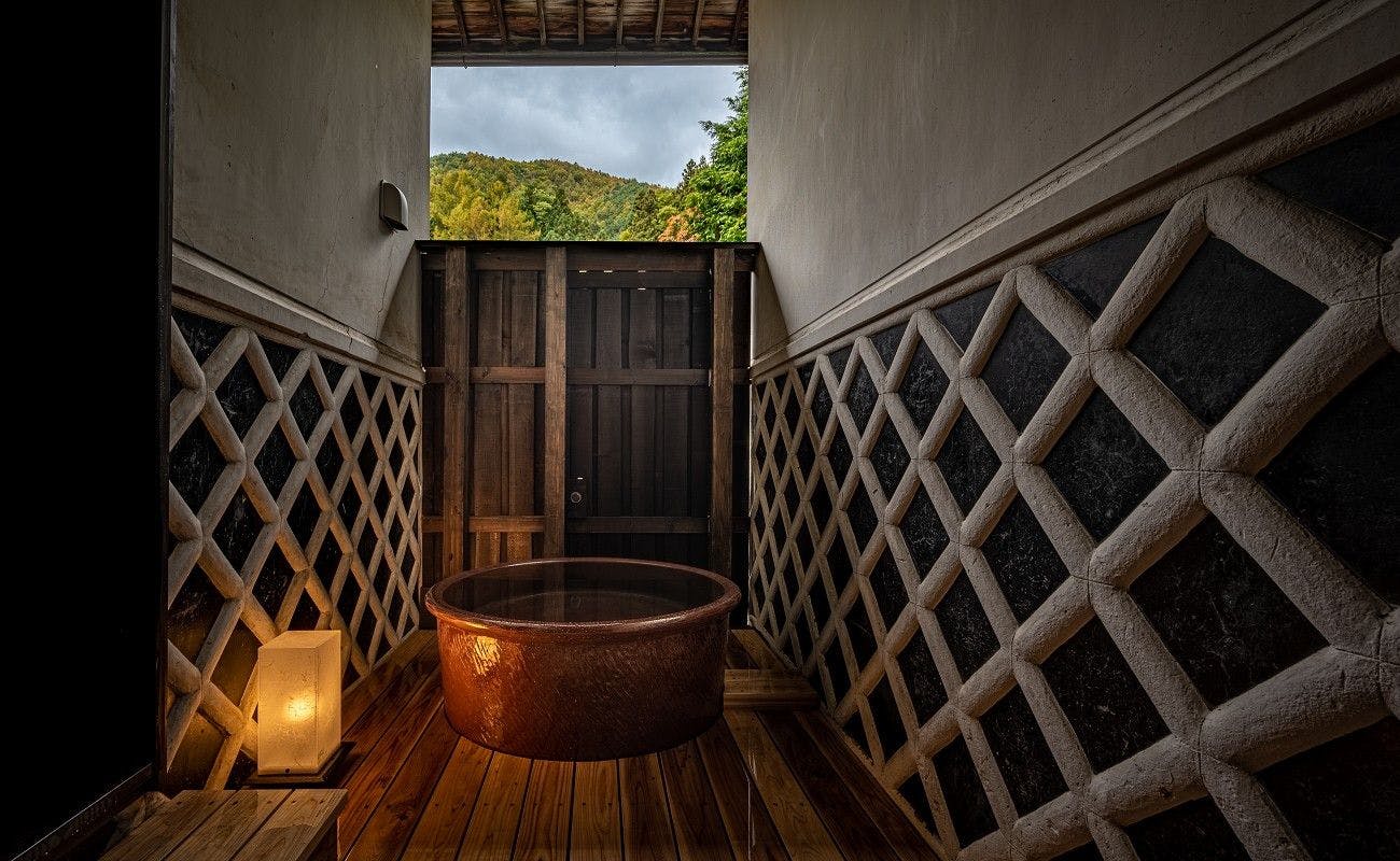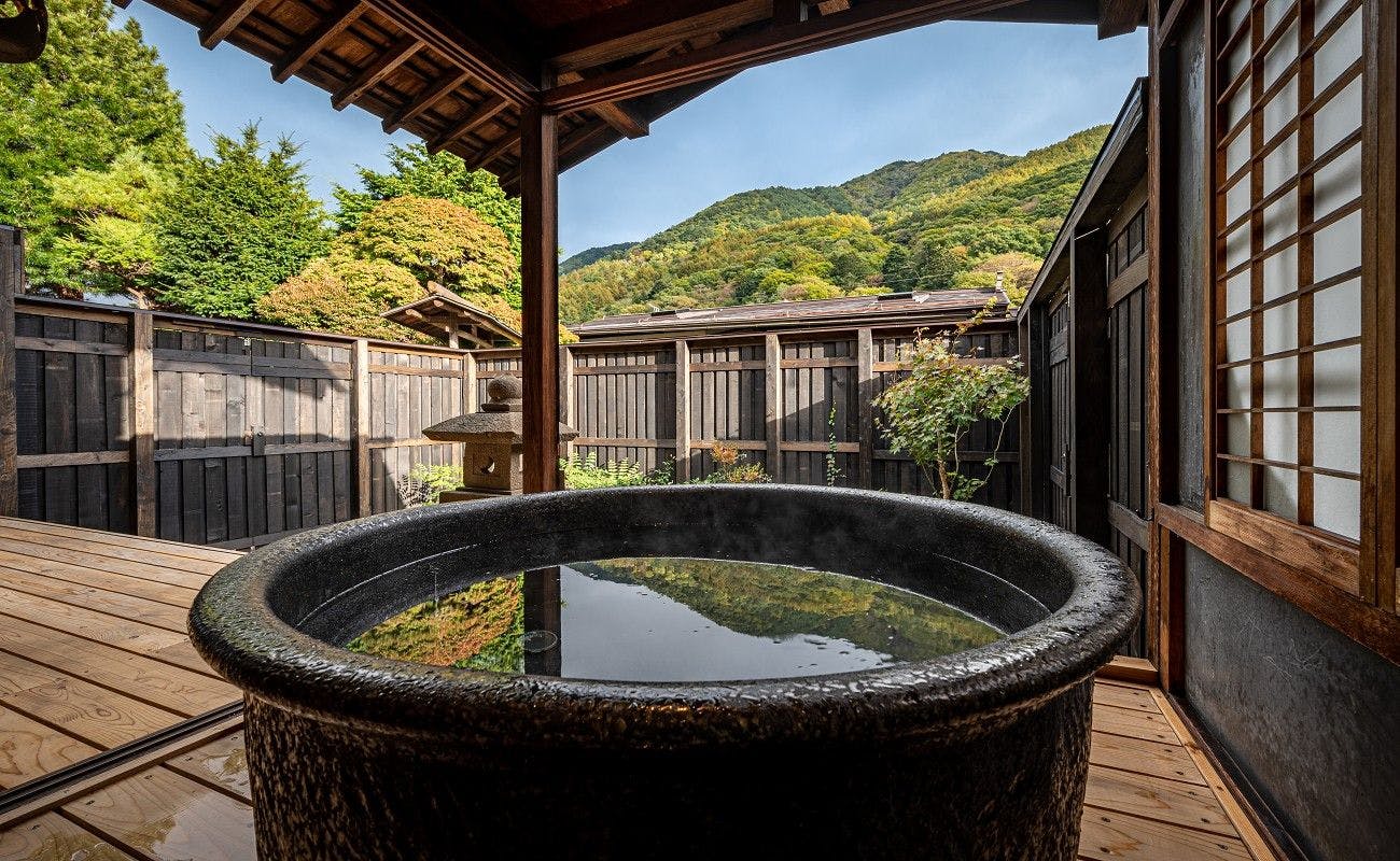 元々茶室だった客室を半露天風呂に。特別な入浴体験をご堪能いただけます。