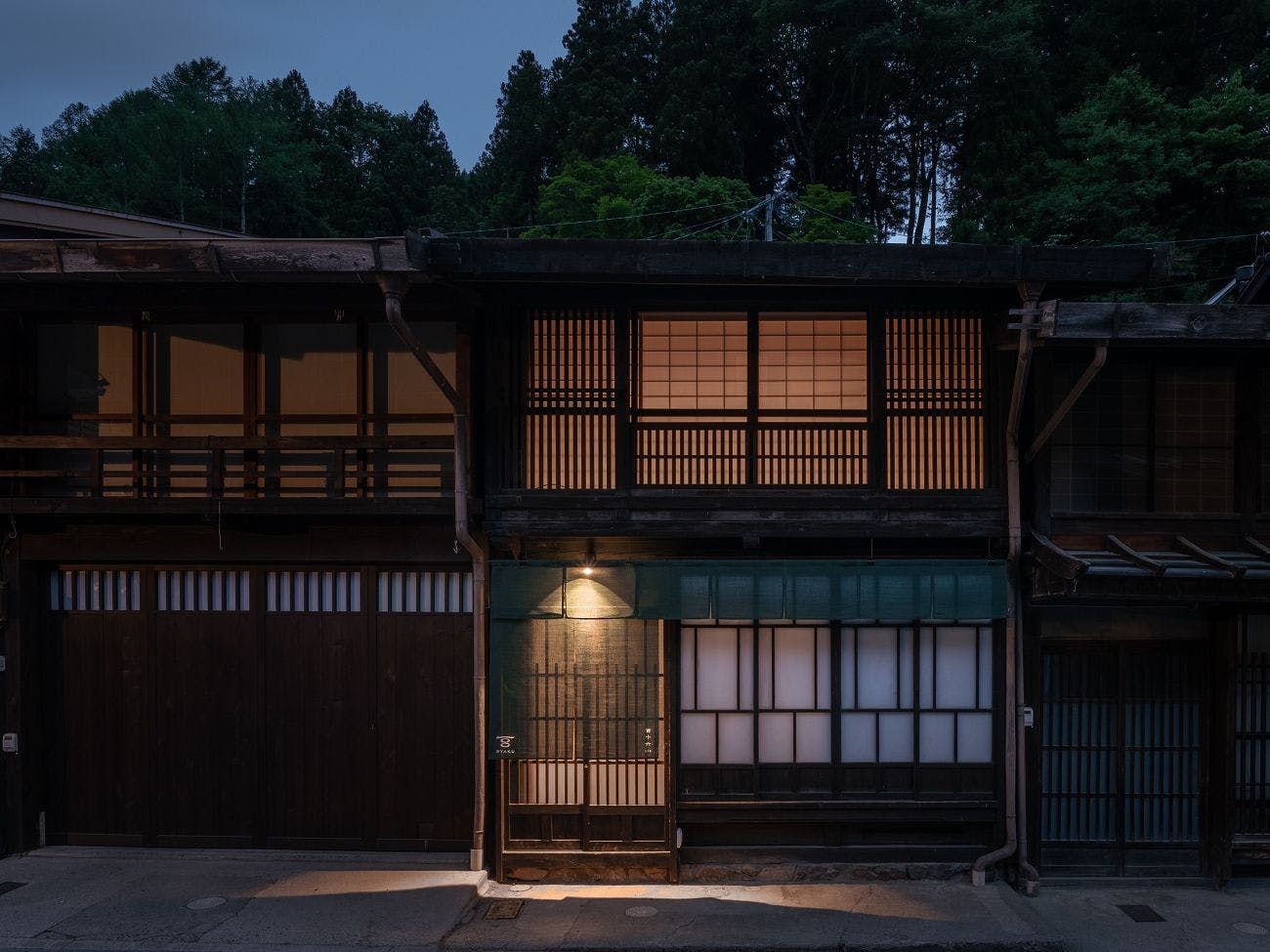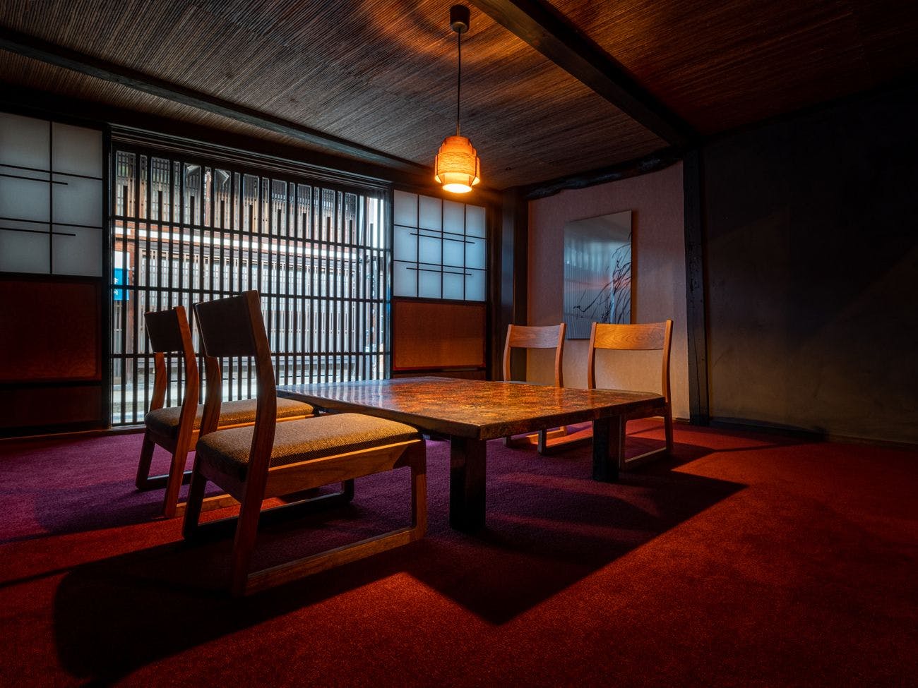 奈良井宿の建物の象徴でもある面格子と障子の一面は、幻想的な空間を演出をします。