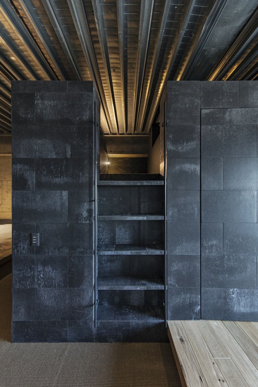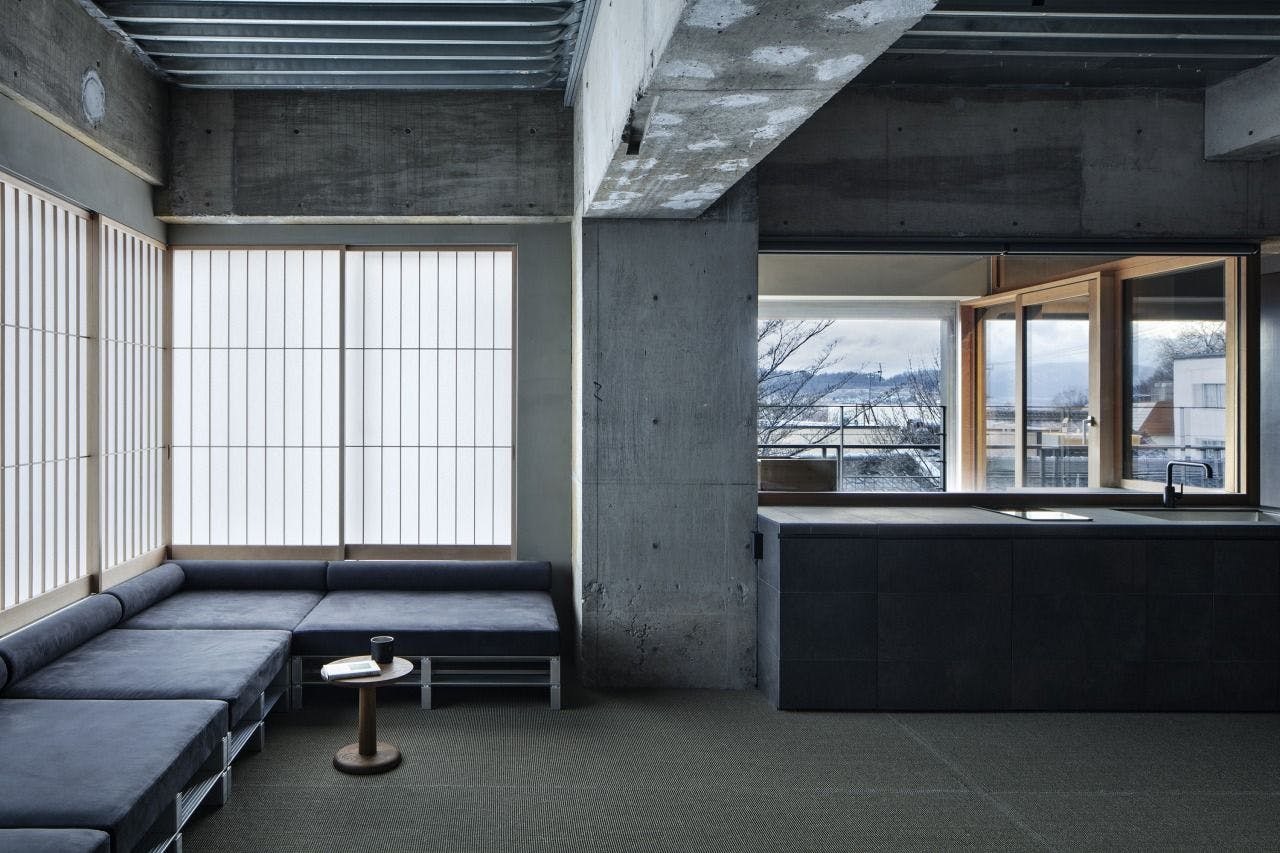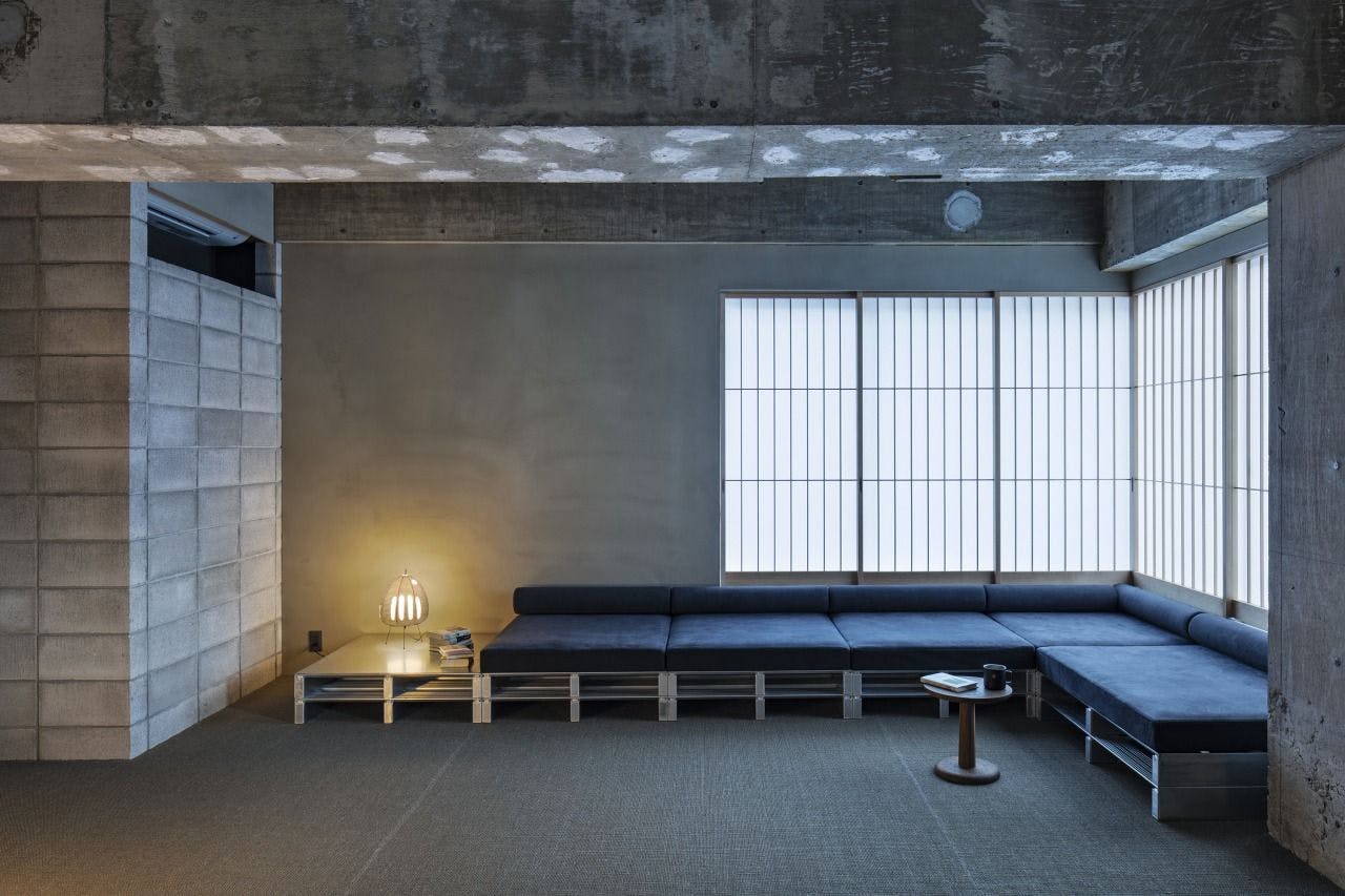 設計は「SUPPOSE DESIGN OFFICE」。新旧の「記憶」がレイヤリングされたストイックな空間です。お客様のなかには「工事中?」とおっしゃる方もいますが、実は壁面の研磨などに手間をかけた「仕上げ」。あえて内装材を貼らず、塗装しない、素材の表情をお楽しみください。