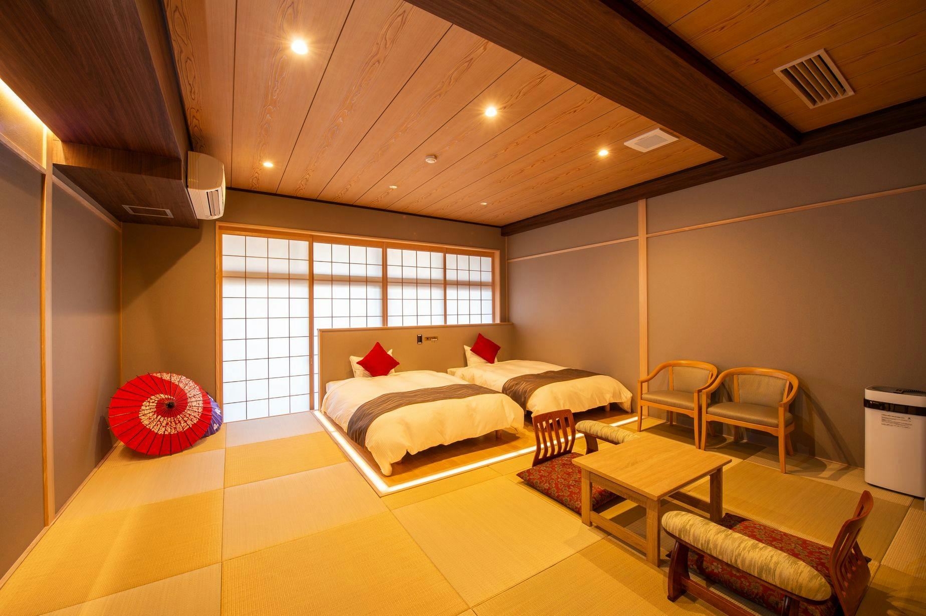 源泉かけ流し温泉の客室専用風呂を備えた心躍る多彩なコンセプト特別室。