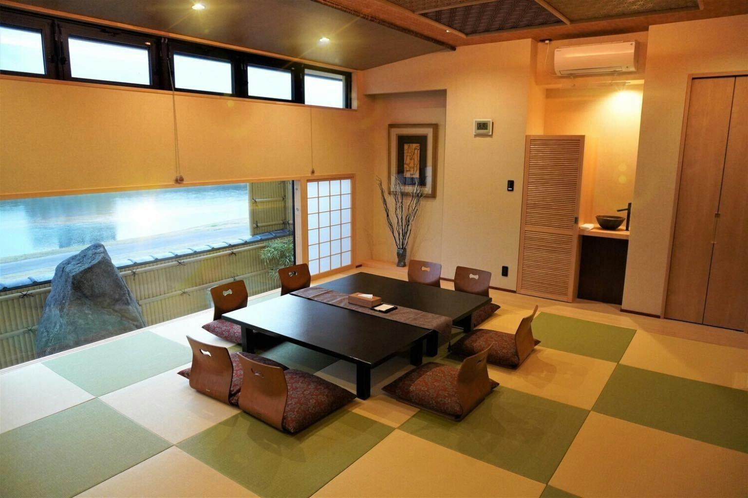 他のリバービュー客室よりも少し広めの源泉付き専用風呂を備えた心躍る特別室。
