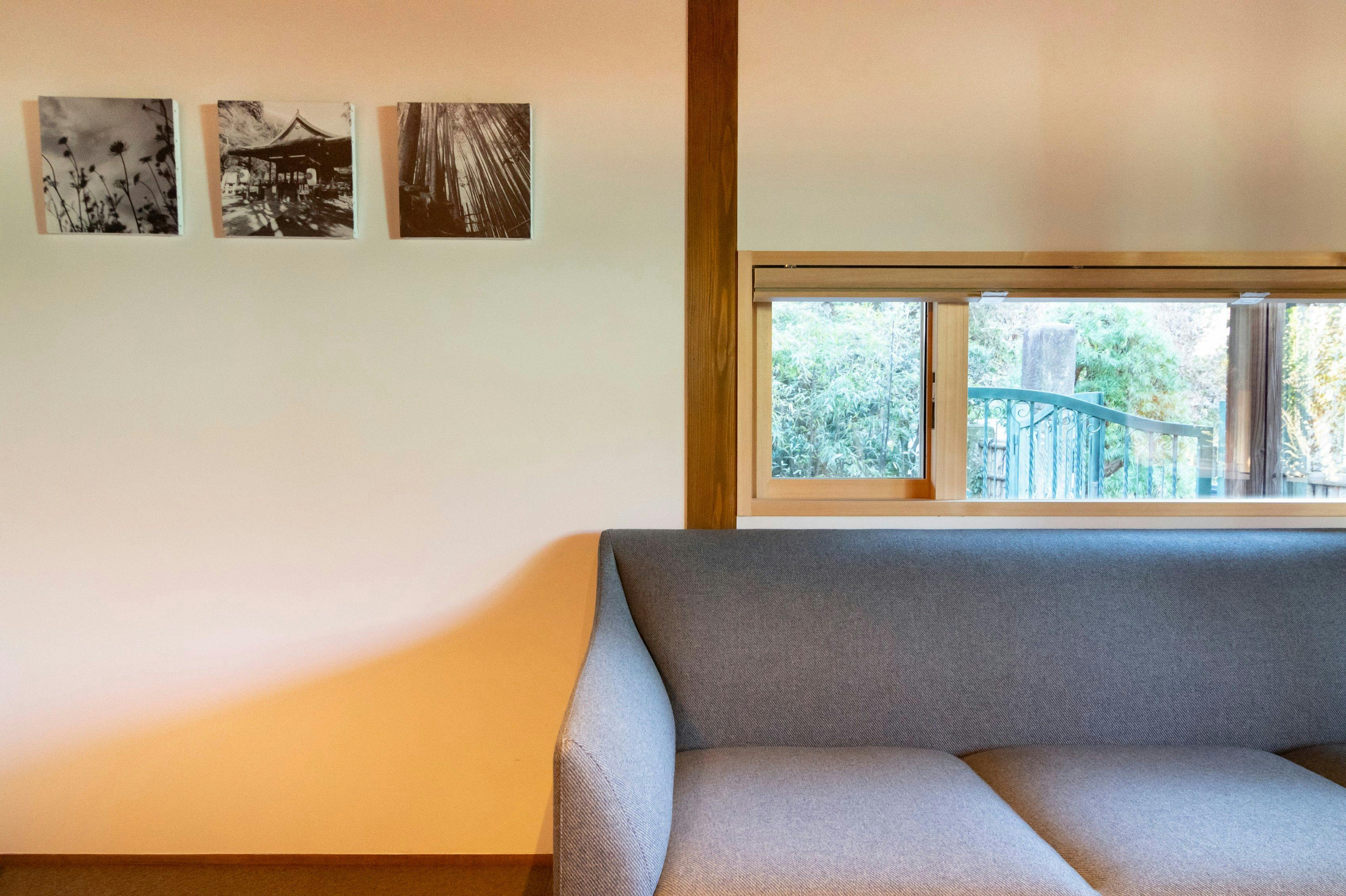 1階は庭に面した長机が印象的なリビングルーム、2階は客間を活かしたお座敷の間とベッドルームからなるメゾネットタイプのスイートルームです。ラグジュアリーな中にもどこか懐かしさを感じる上質な空間です。