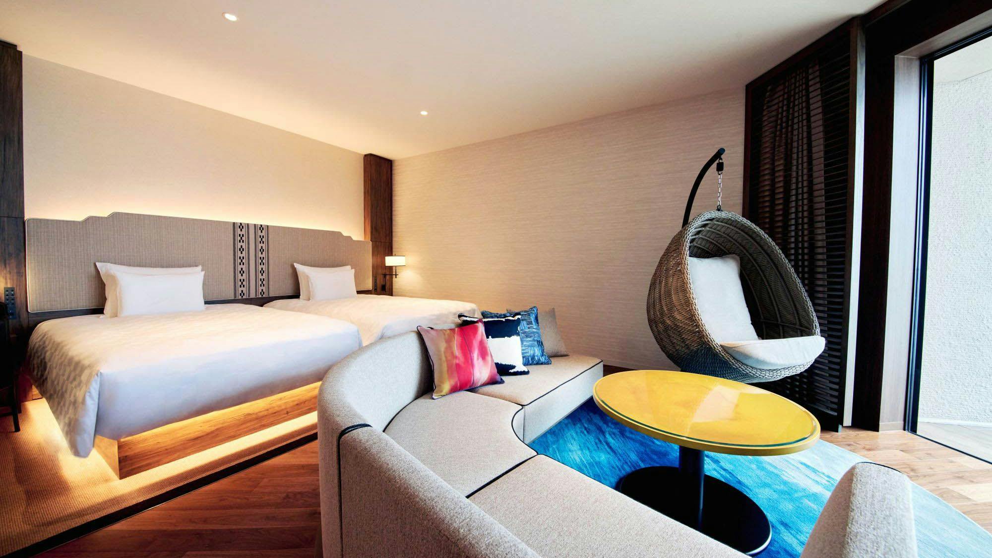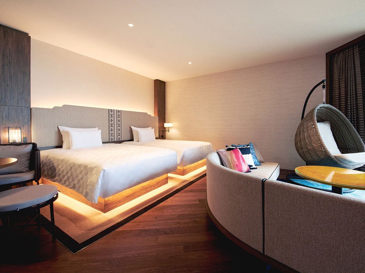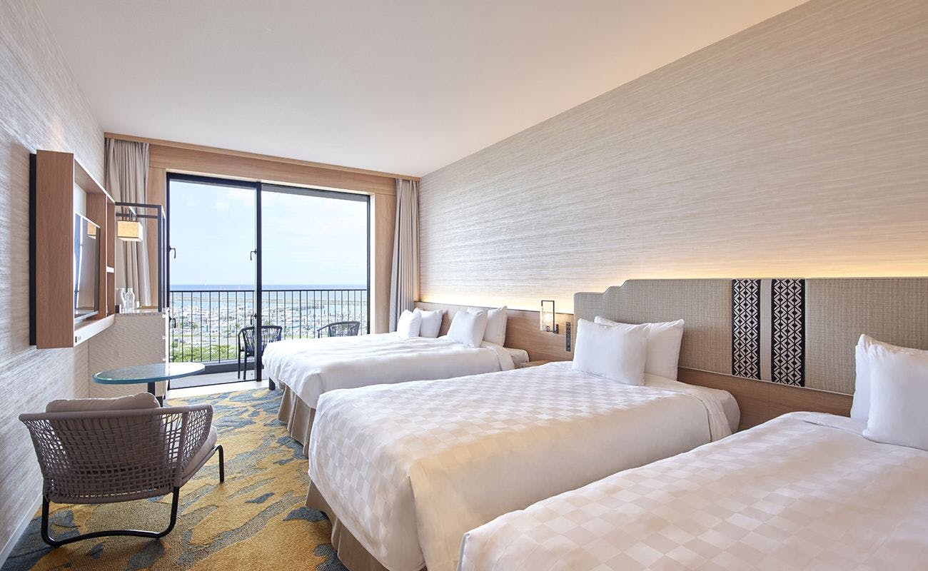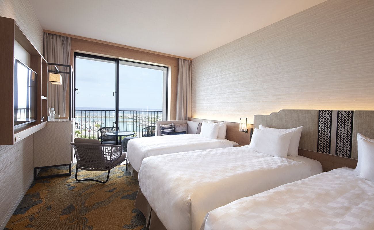 オーシャンビュー(西向き)ベッドを追加して、3名さままでご利用いただけるツインルームです。