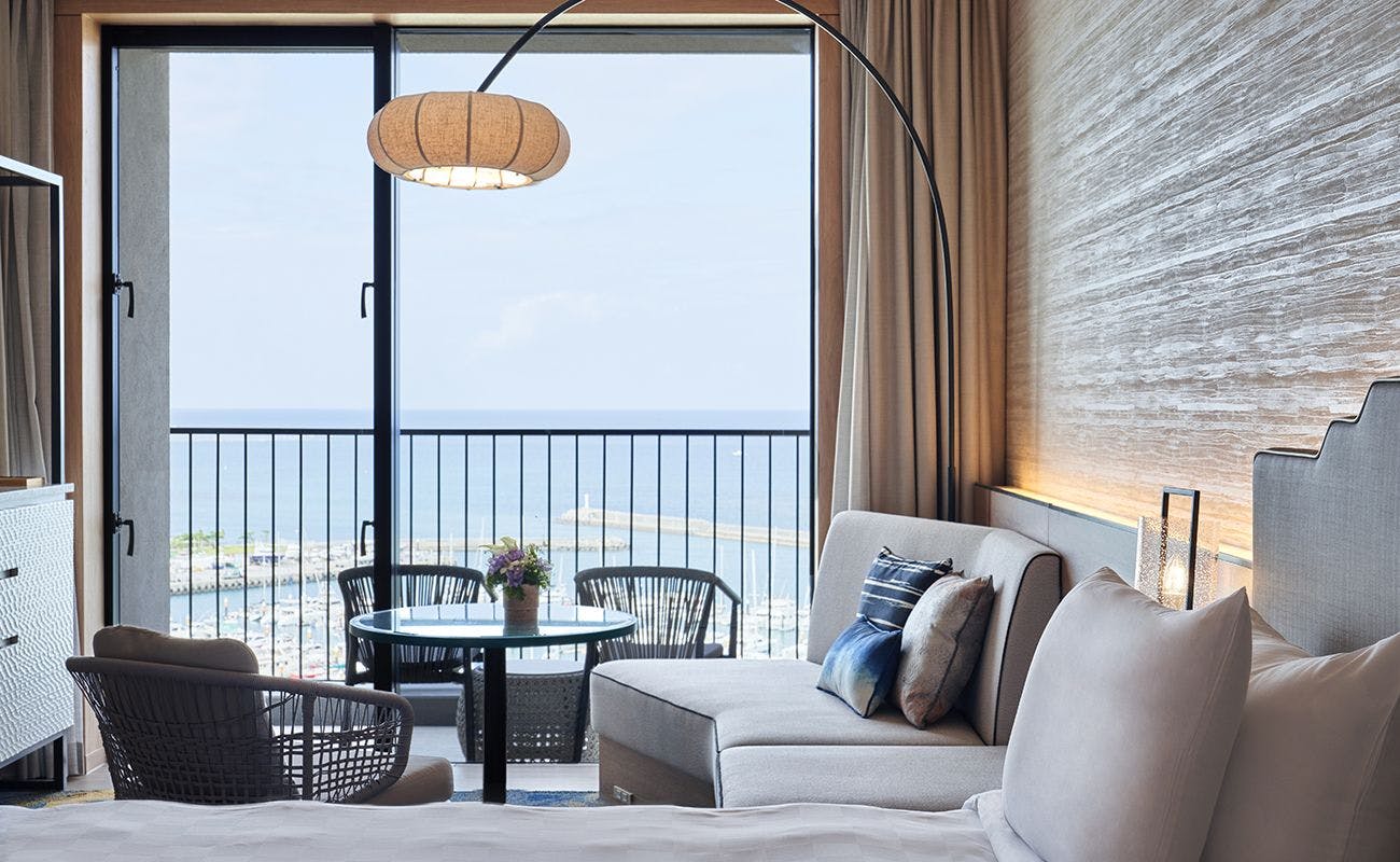 クラブフロアンにご宿泊のお客さま専用の最上階(14階)クラブラウンジとインフィニティプールをご利用いただけます。オーシャンビュー(西向き)、バルコニー付きのお部屋です。