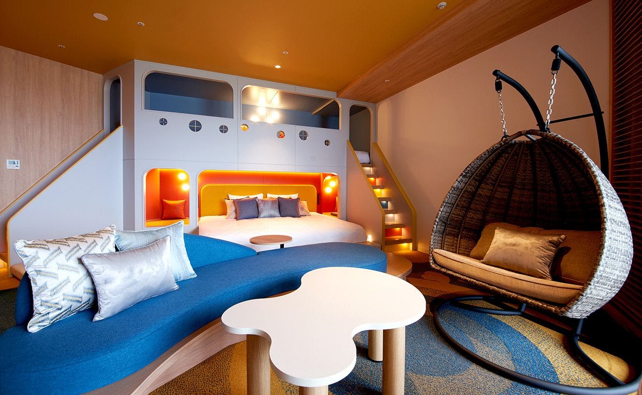 オーシャンビュー(西向き)お部屋内の中二階に2段ベットを備えた、お子さま連れのファミリーに最適なお部屋です。※ベッドの追加はできません