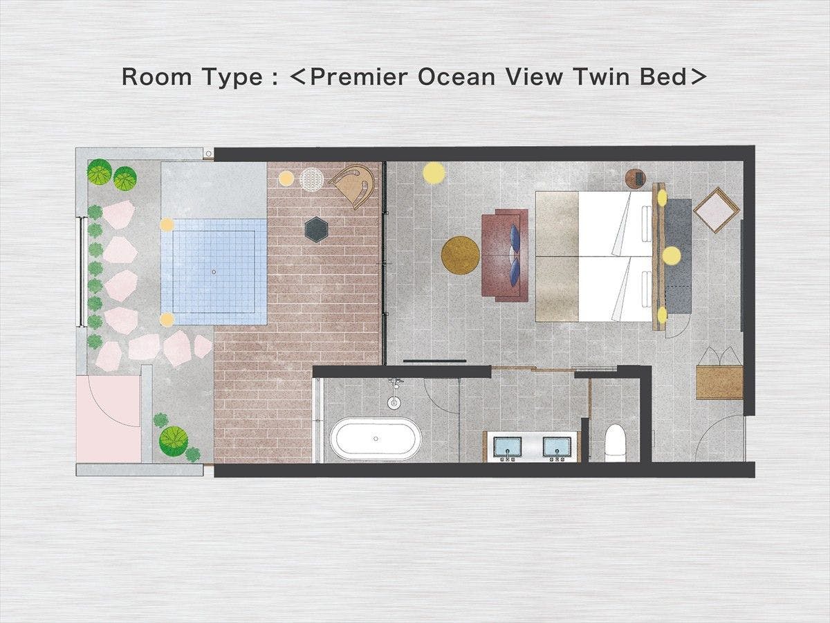 心地よい海風と鳥のさえずりとともに、安らぎを追求したナチュラルな質感で統一されたザ・グランド スタンダードルーム。