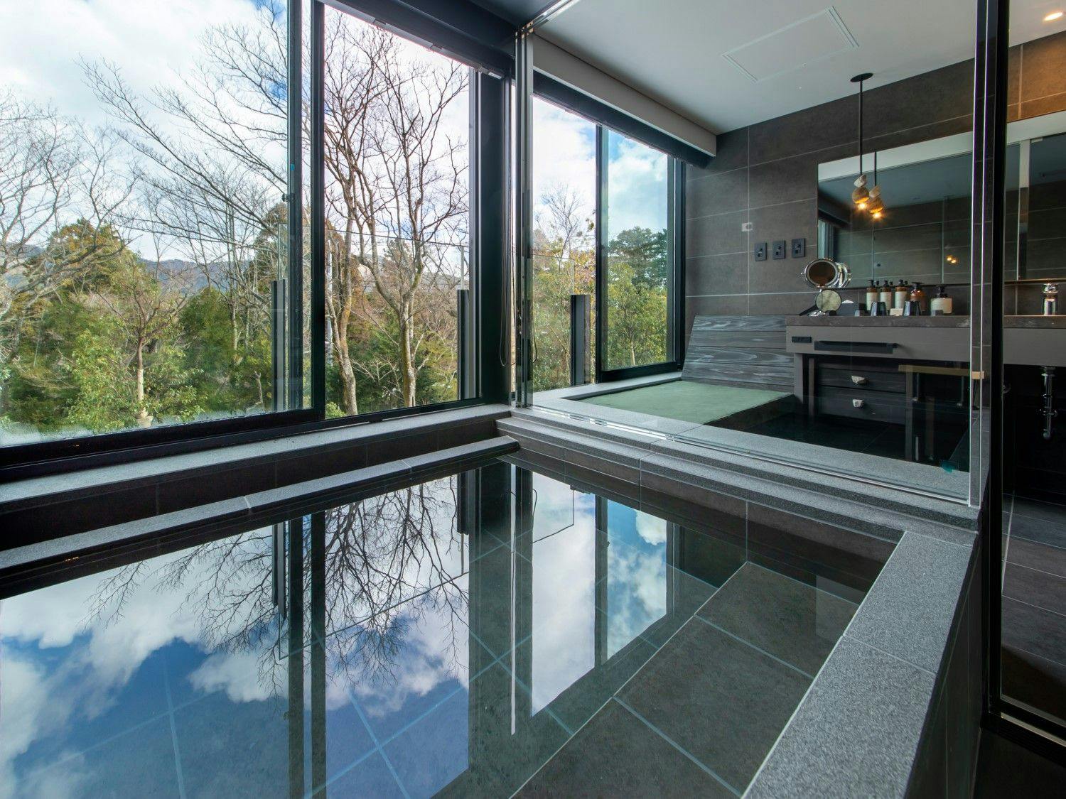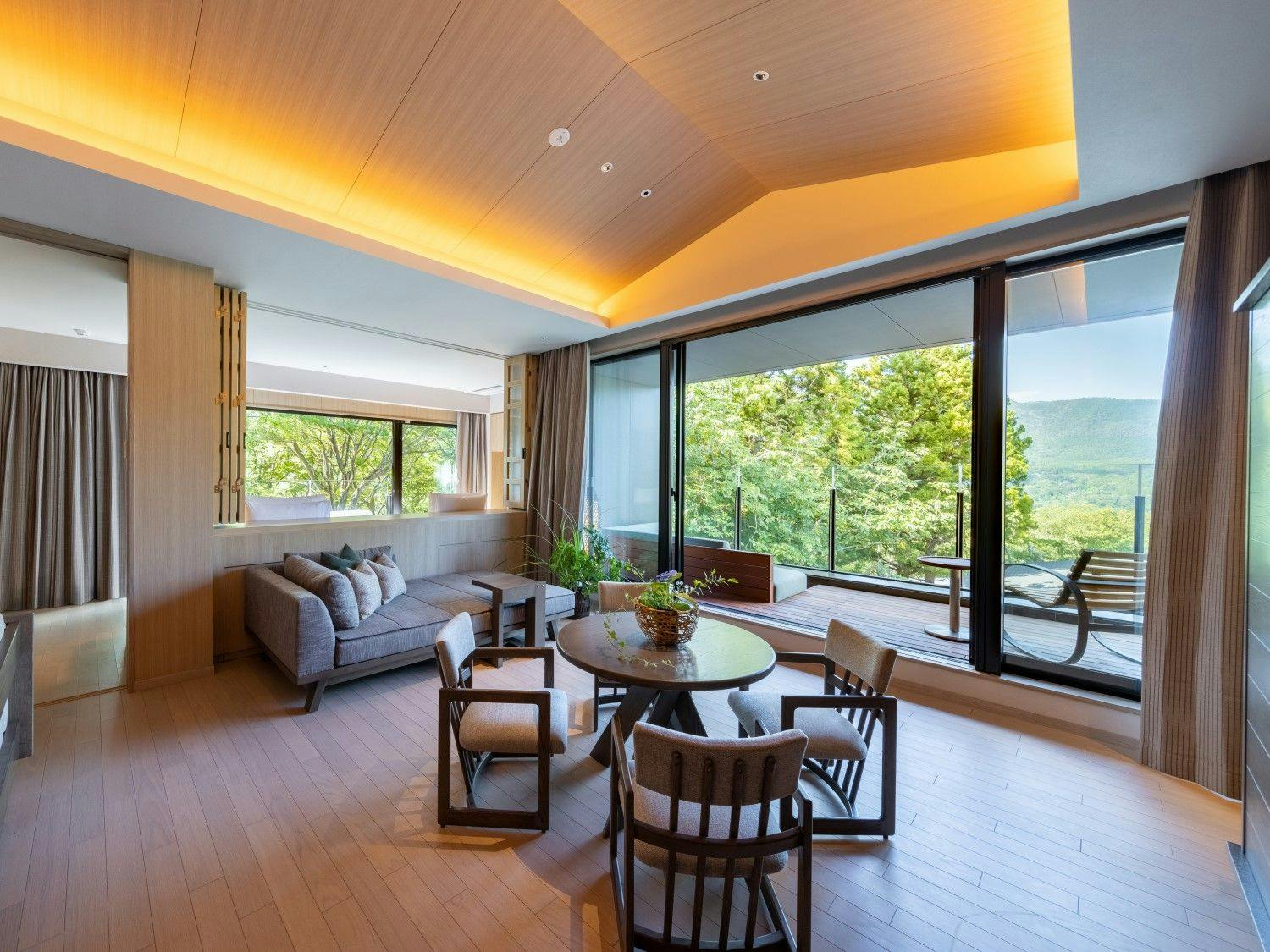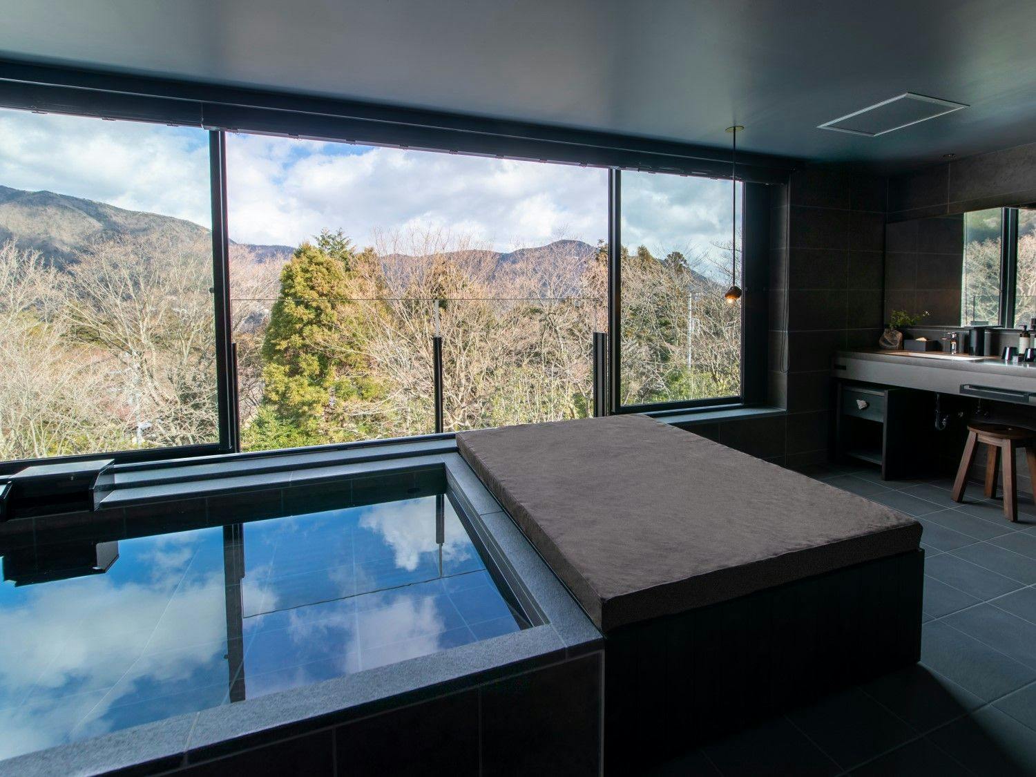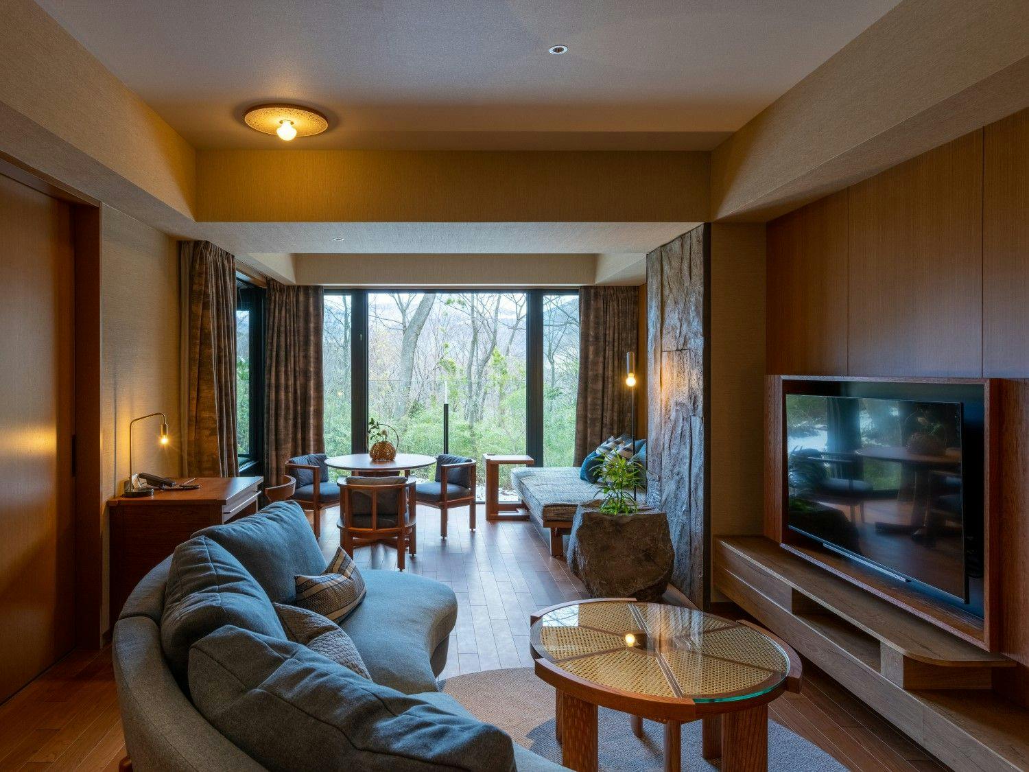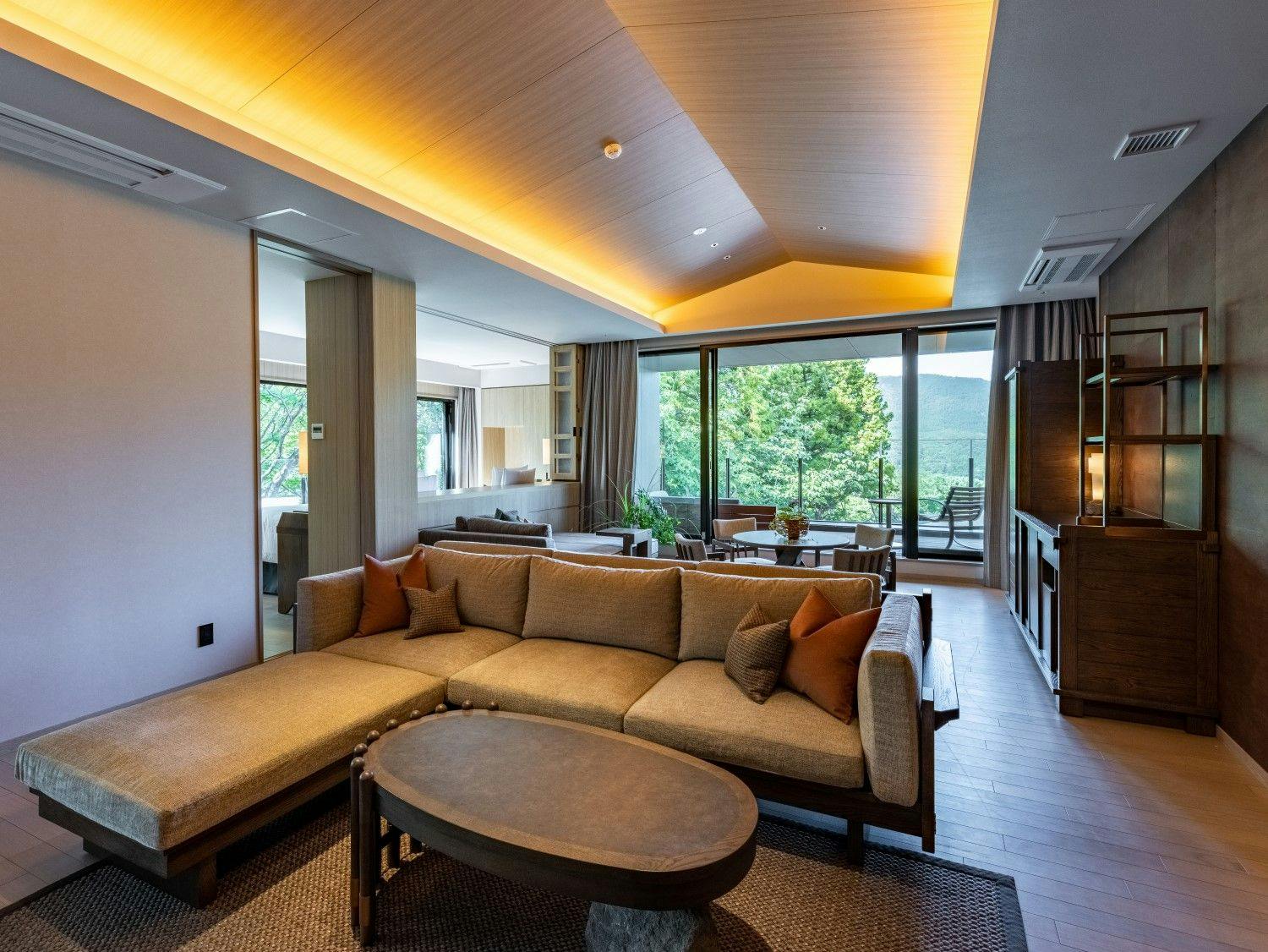 自然の光とリンクした日本を感じる穏やかな空間の中に、箱根らしい力強い岩と草花が深みを演出し、大自然の中にいるようなラグジュアリーリゾートです。