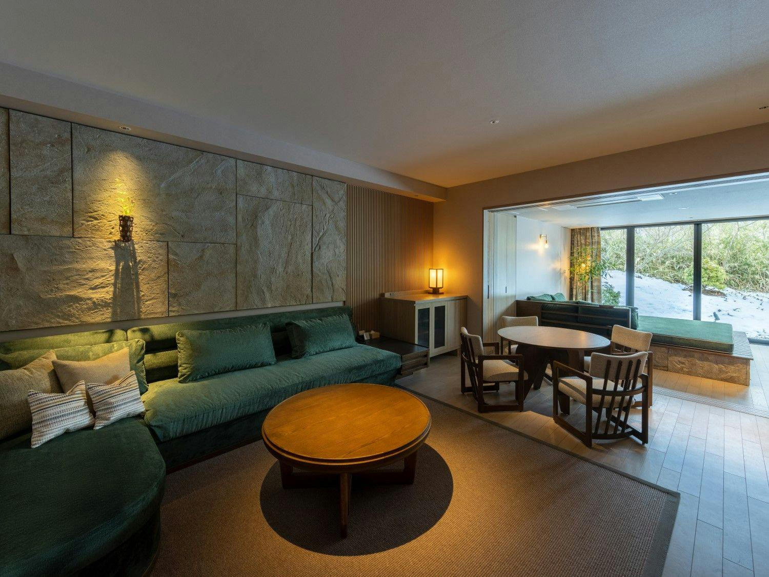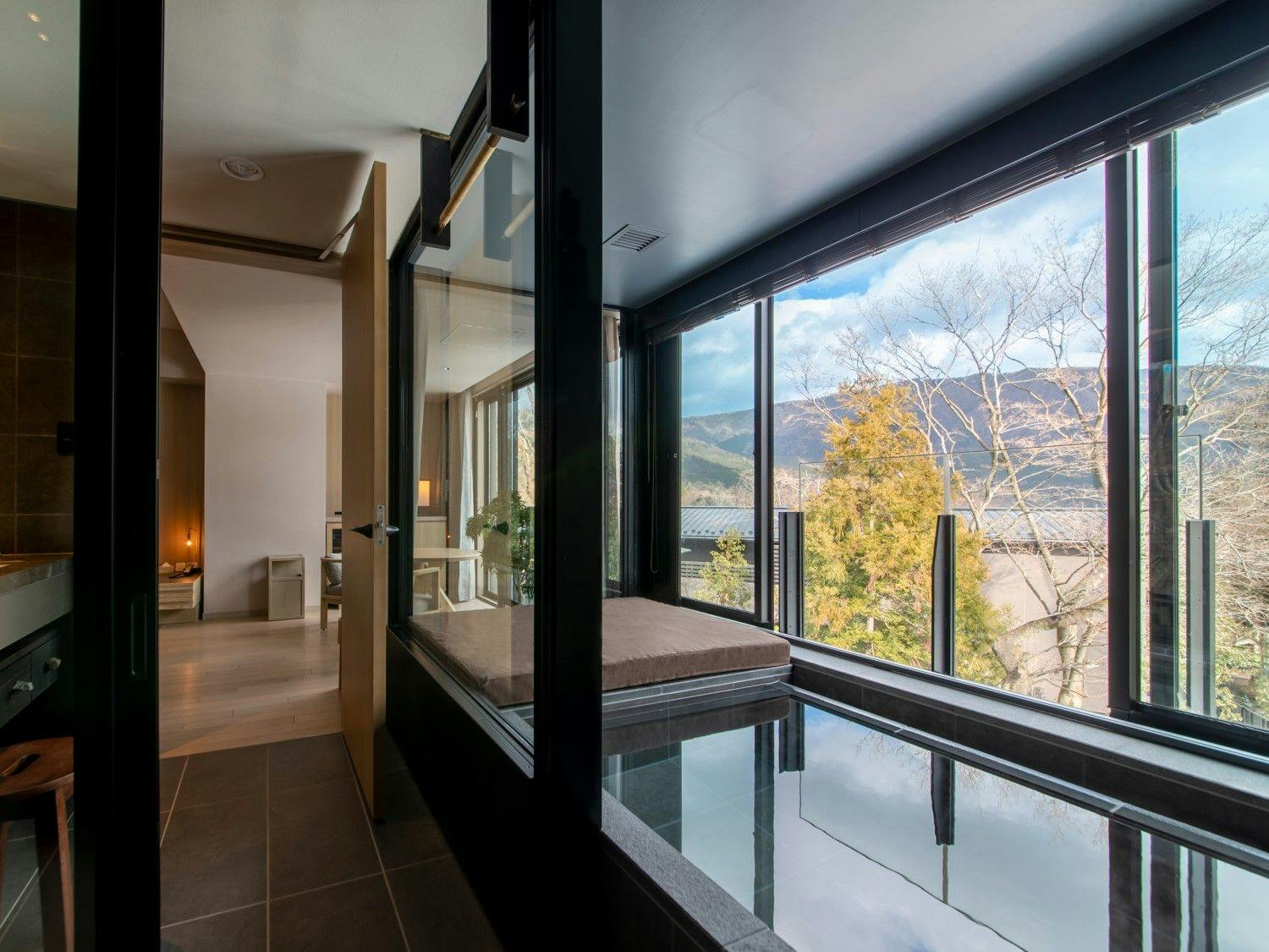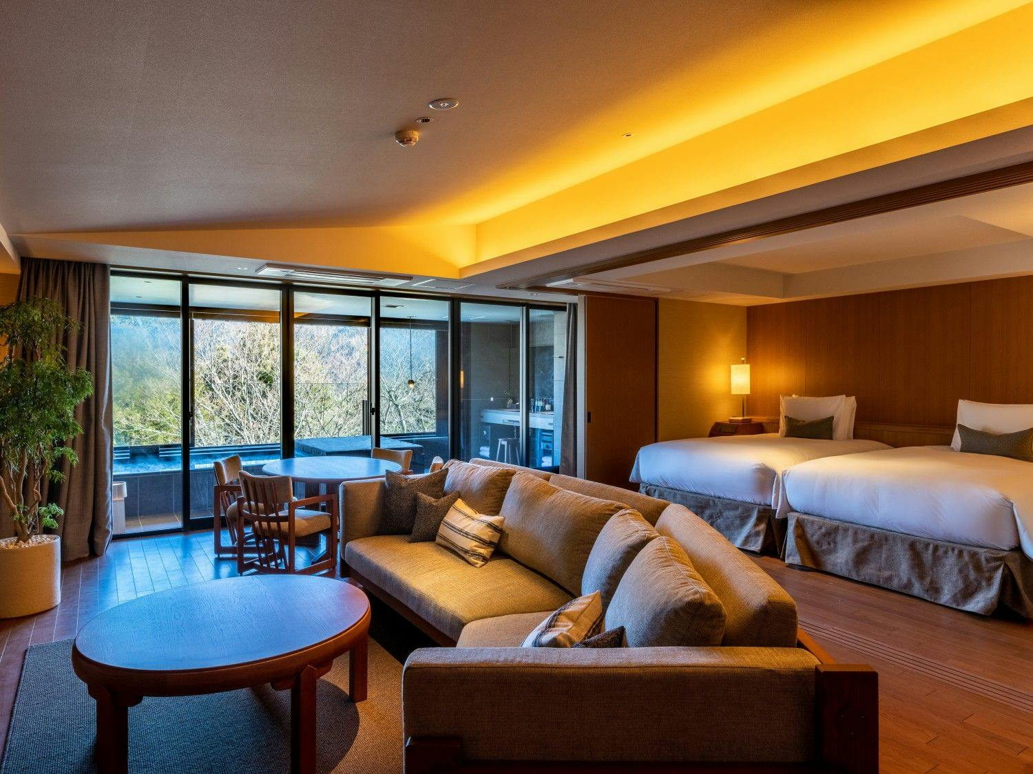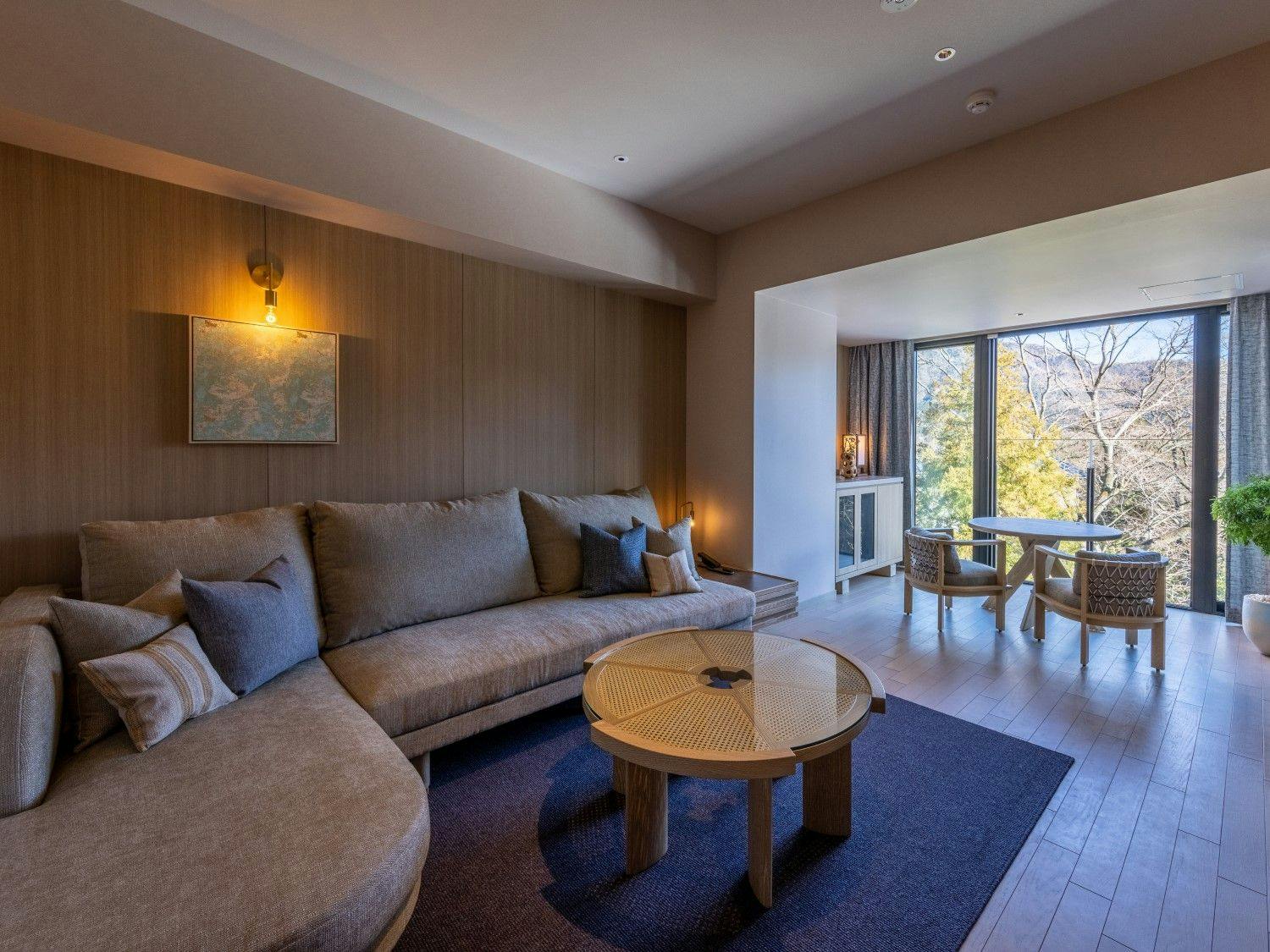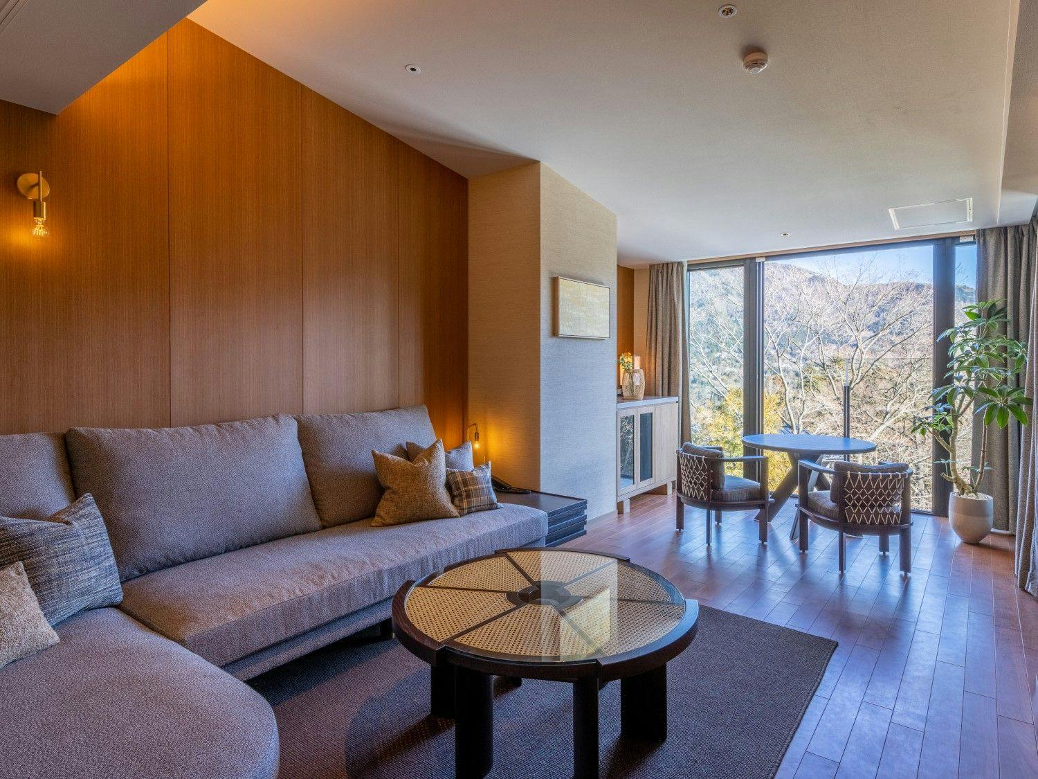 自然の光とリンクした日本を感じる穏やかな空間の中に、箱根らしい力強い岩と草花が深みを演出し、大自然の中にいるようなラグジュアリーリゾートです。