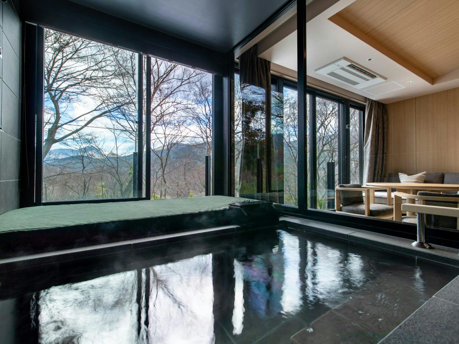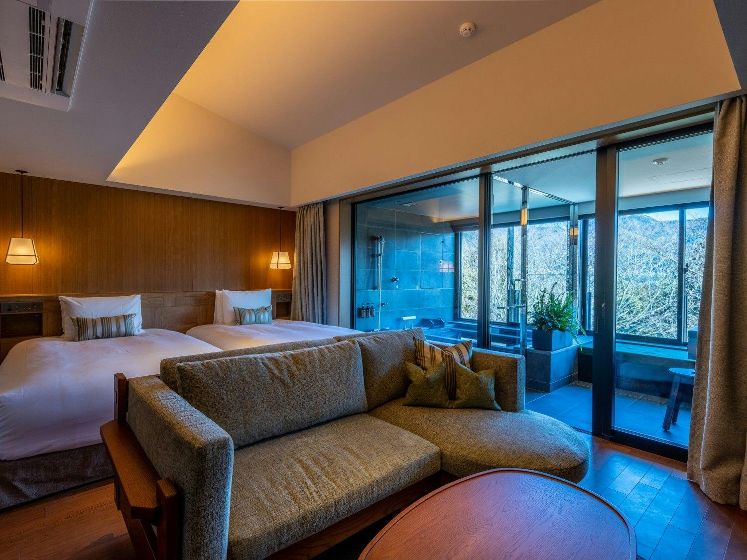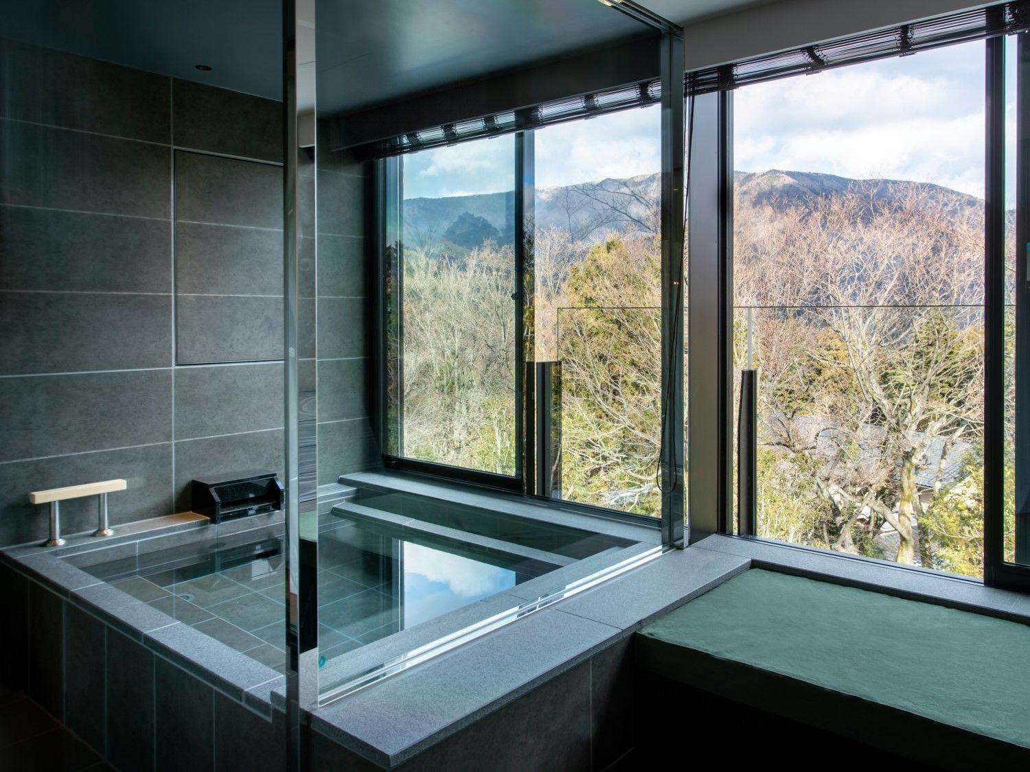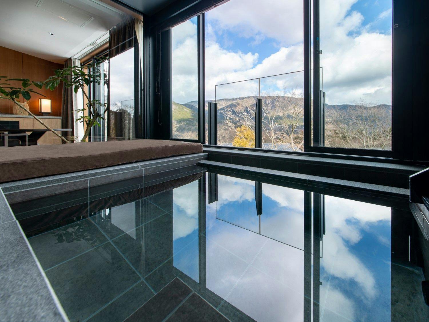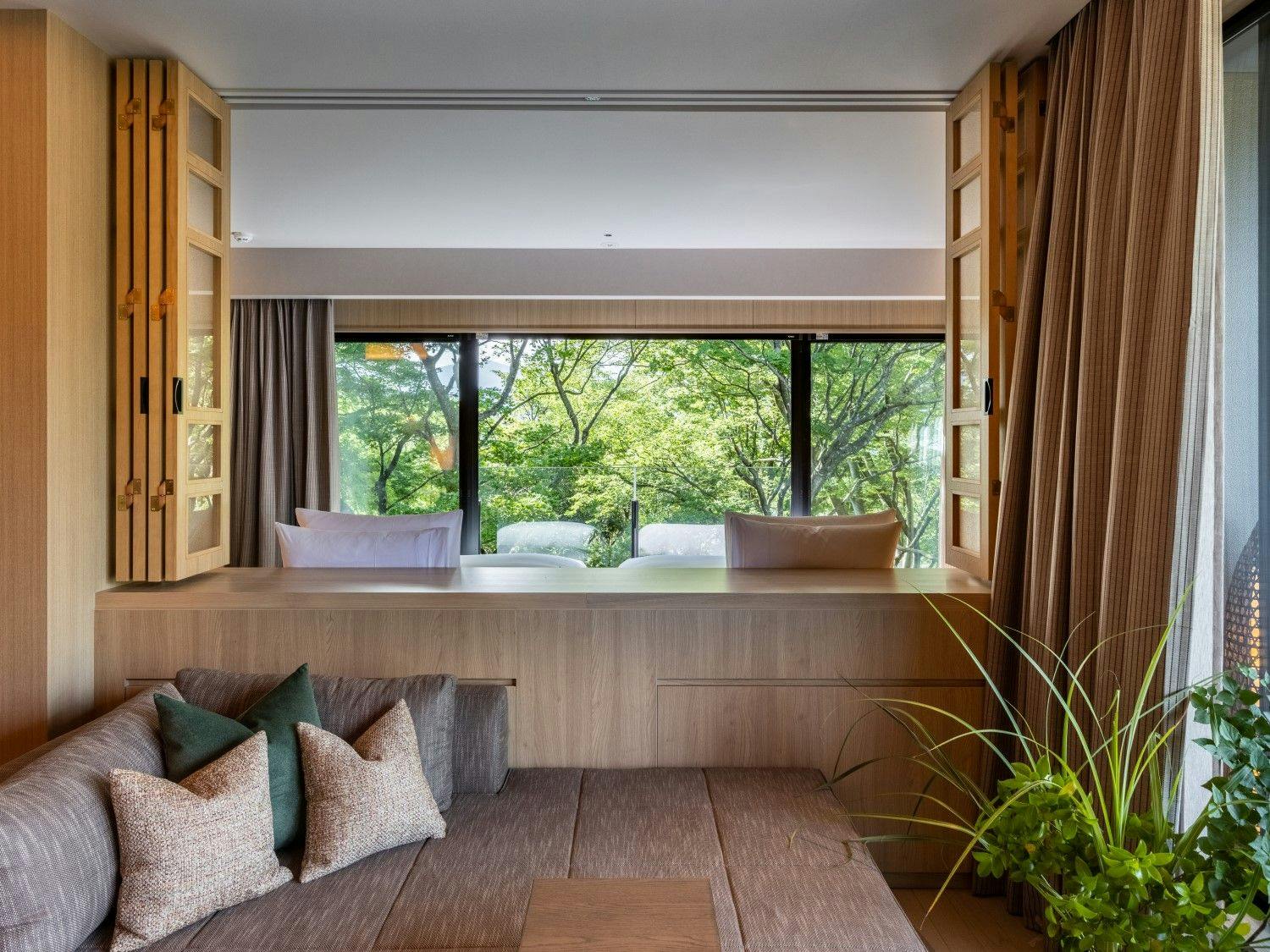 自然の光とリンクした日本を感じる穏やかな空間の中に、箱根らしい力強い岩と草花が深みを演出し、大自然の中にいるようなラグジュアリーリゾートです。