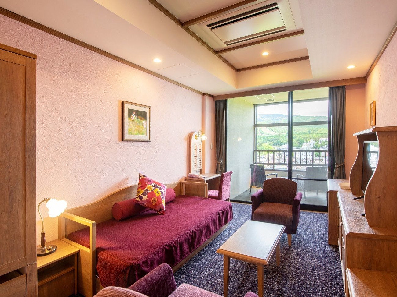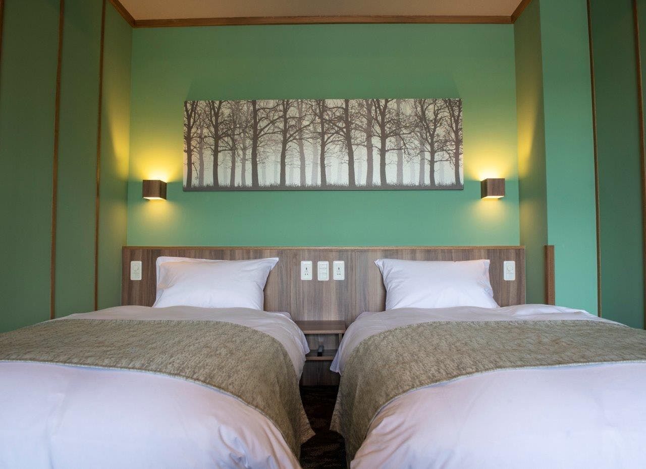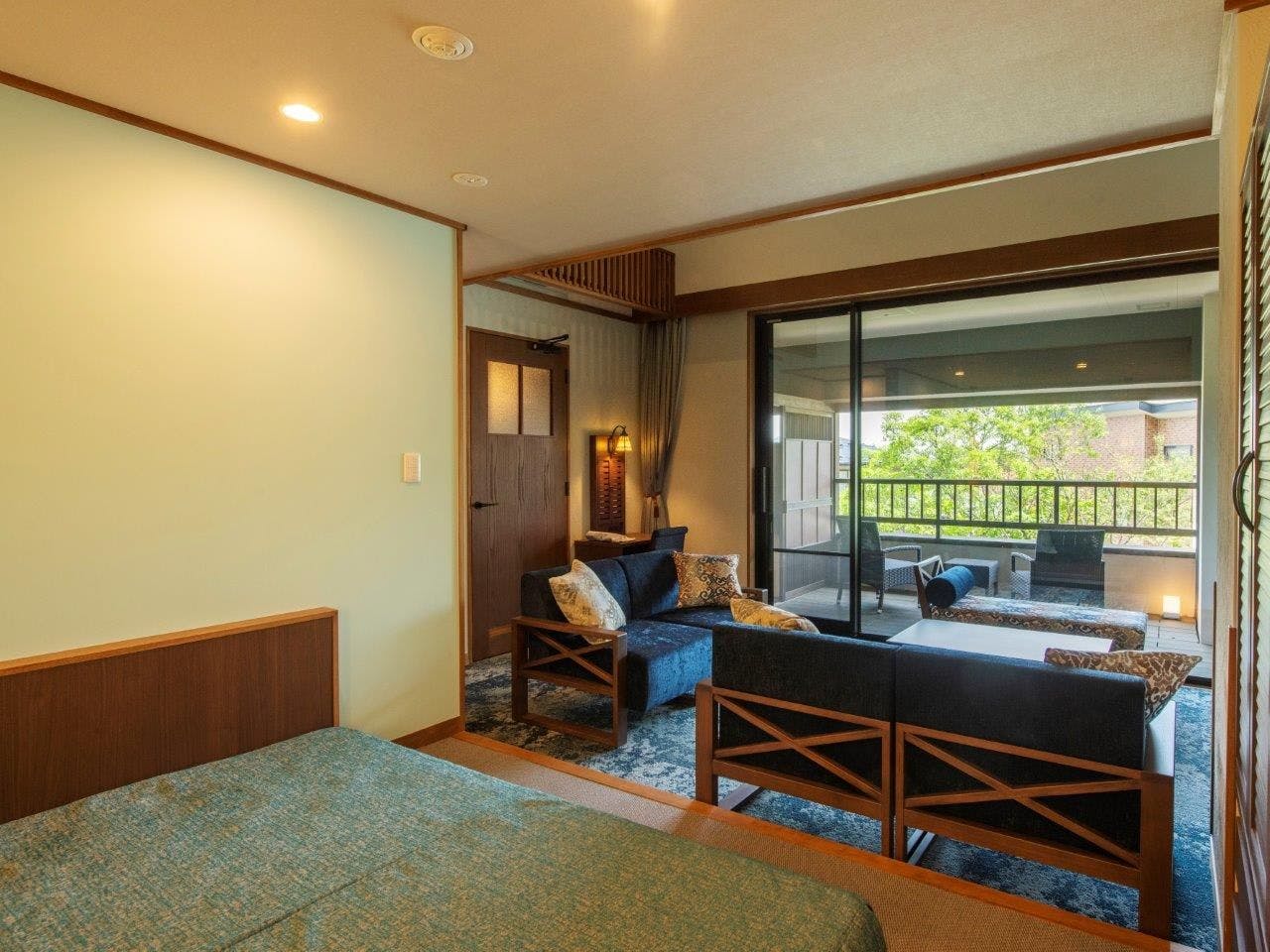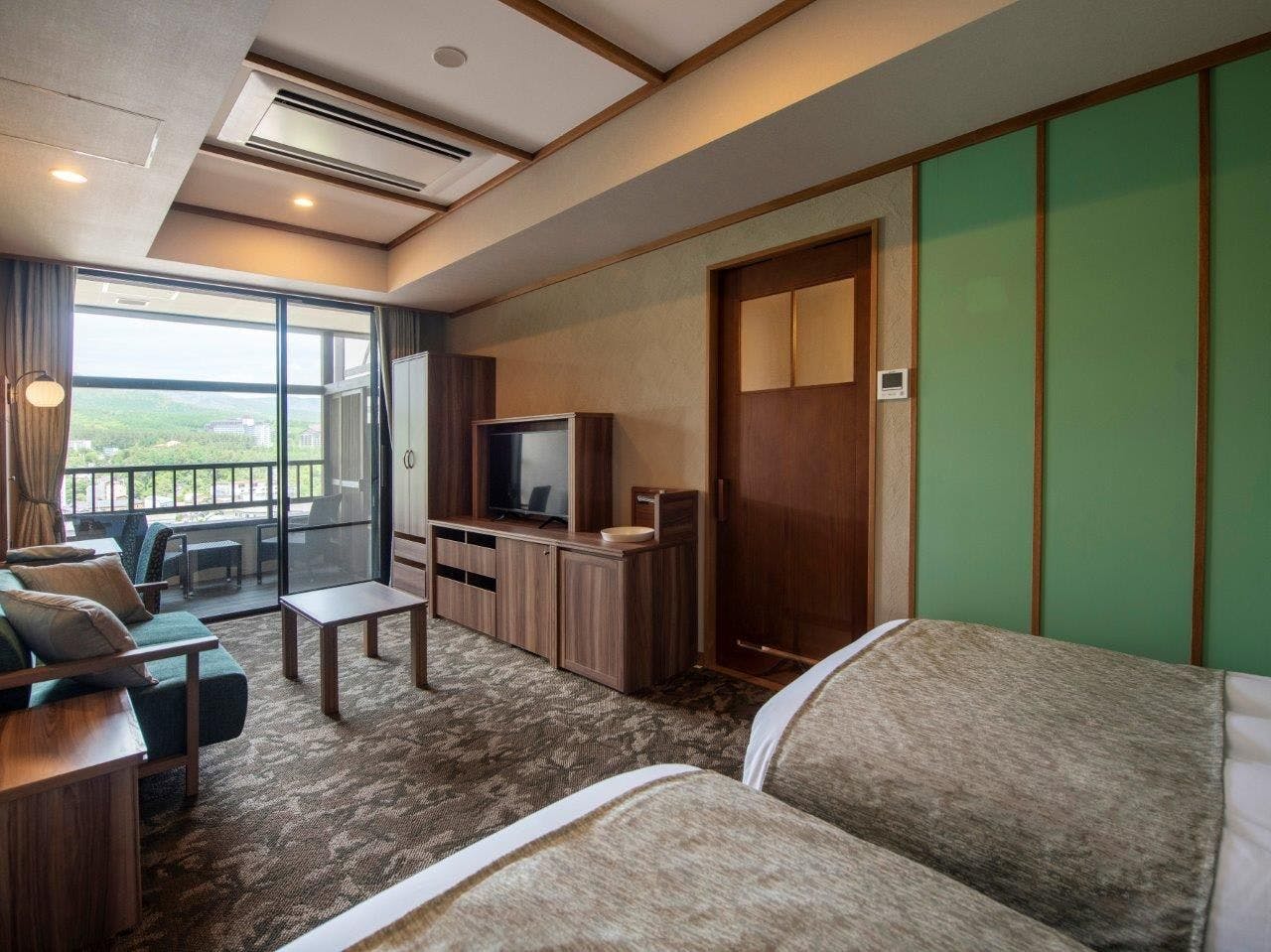 バルコニーからの景色と森をイメージした客室の中で自然の癒しに包まれる時間をお過ごし下さい。