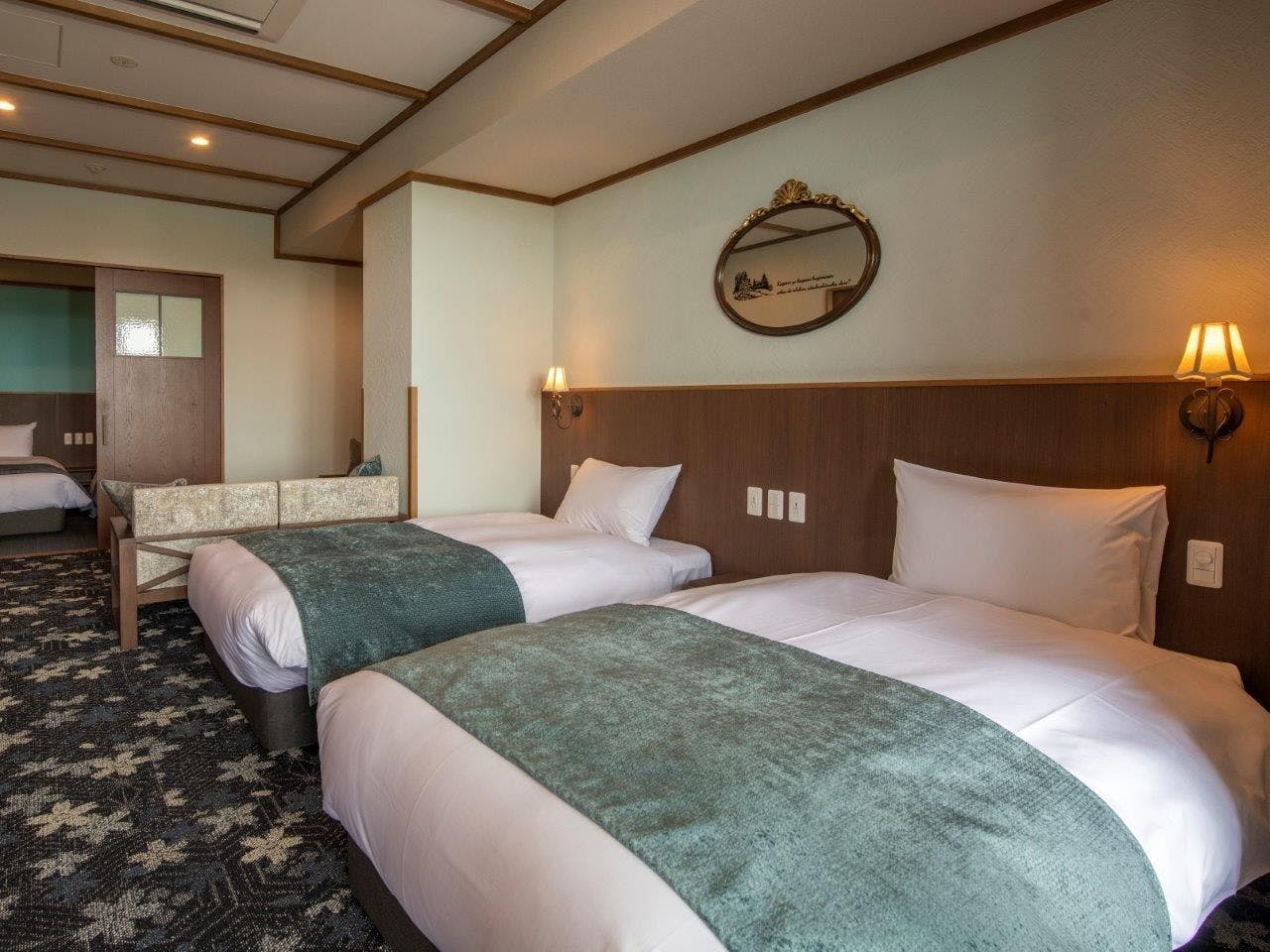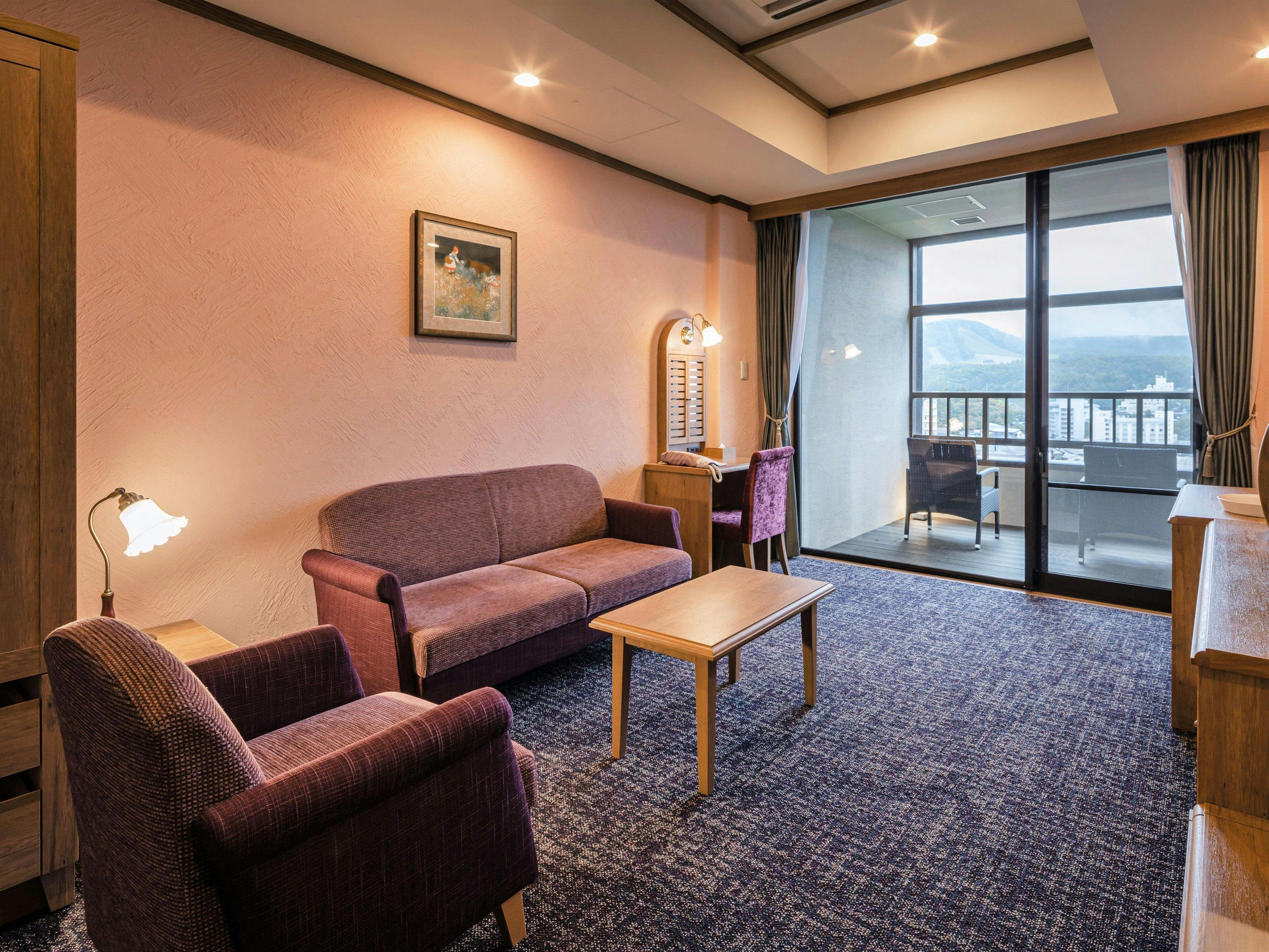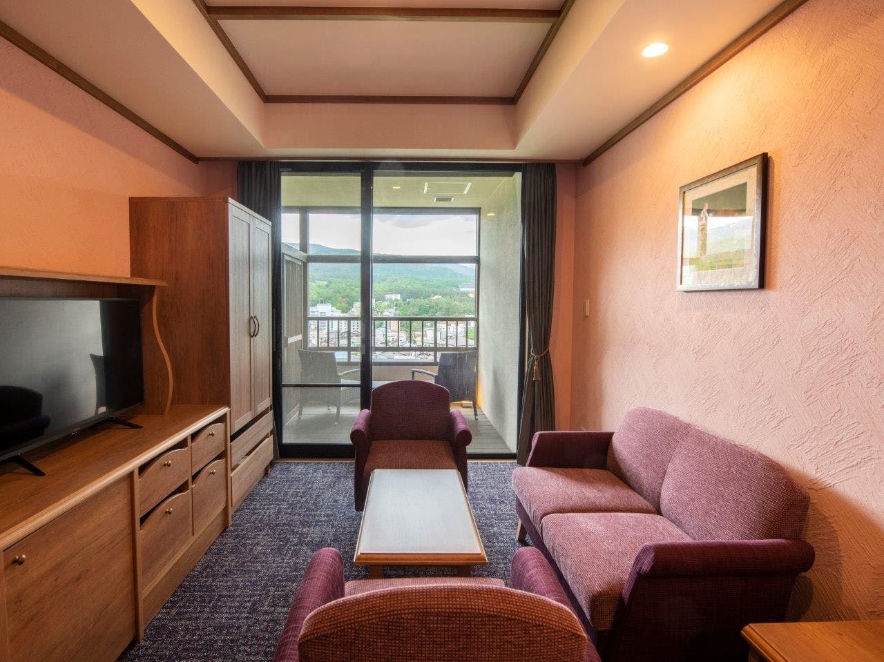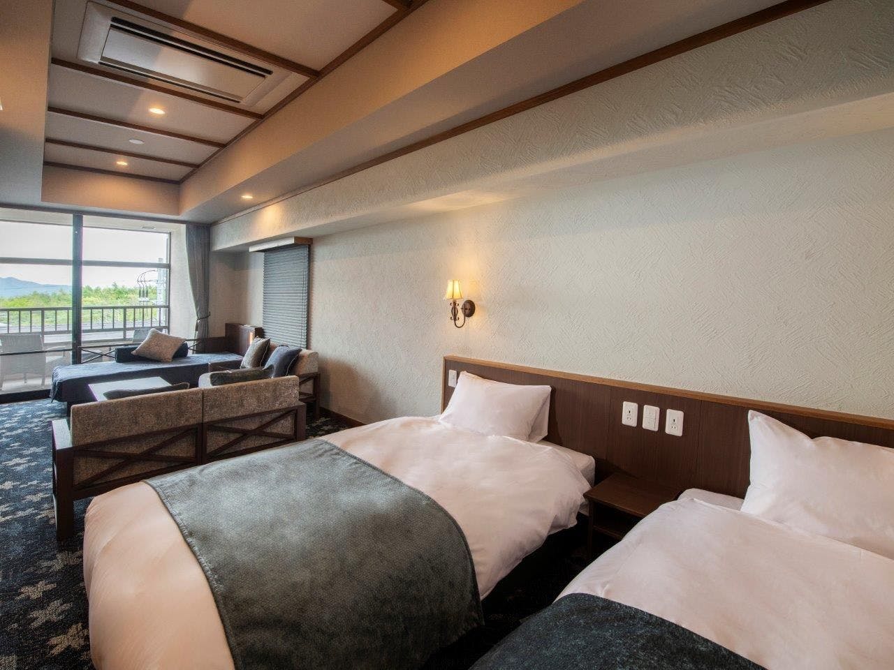 バルコニーからの景色と森をイメージした客室の中で自然の癒しに包まれる時間をお過ごし下さい。