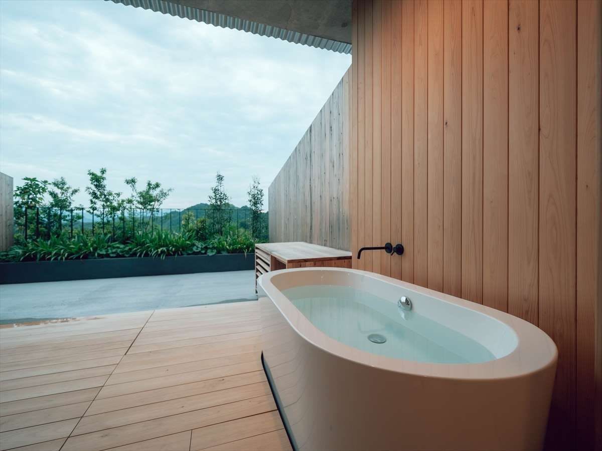 客室と同様の広さのテラスを設けた客室。半露天のバスルームの窓は開けることができます。