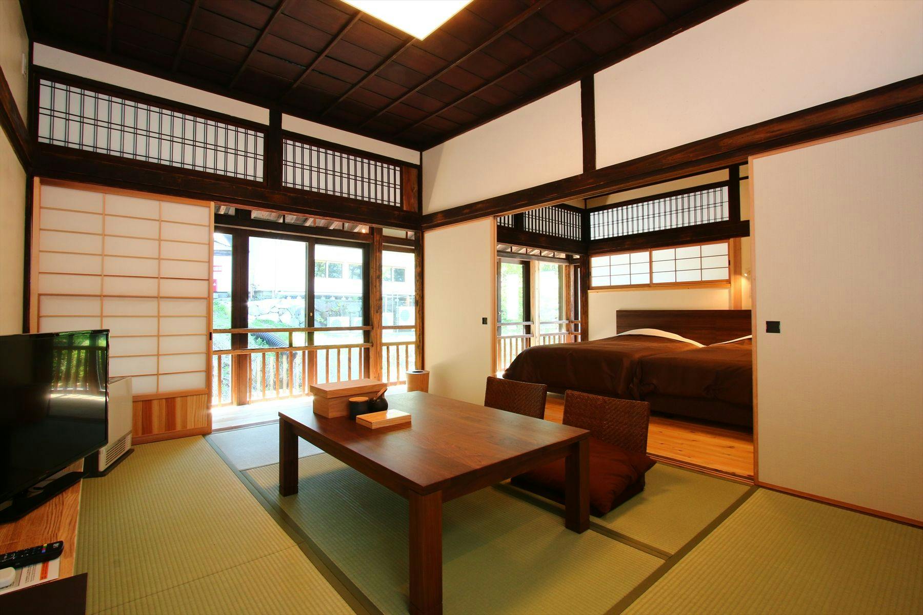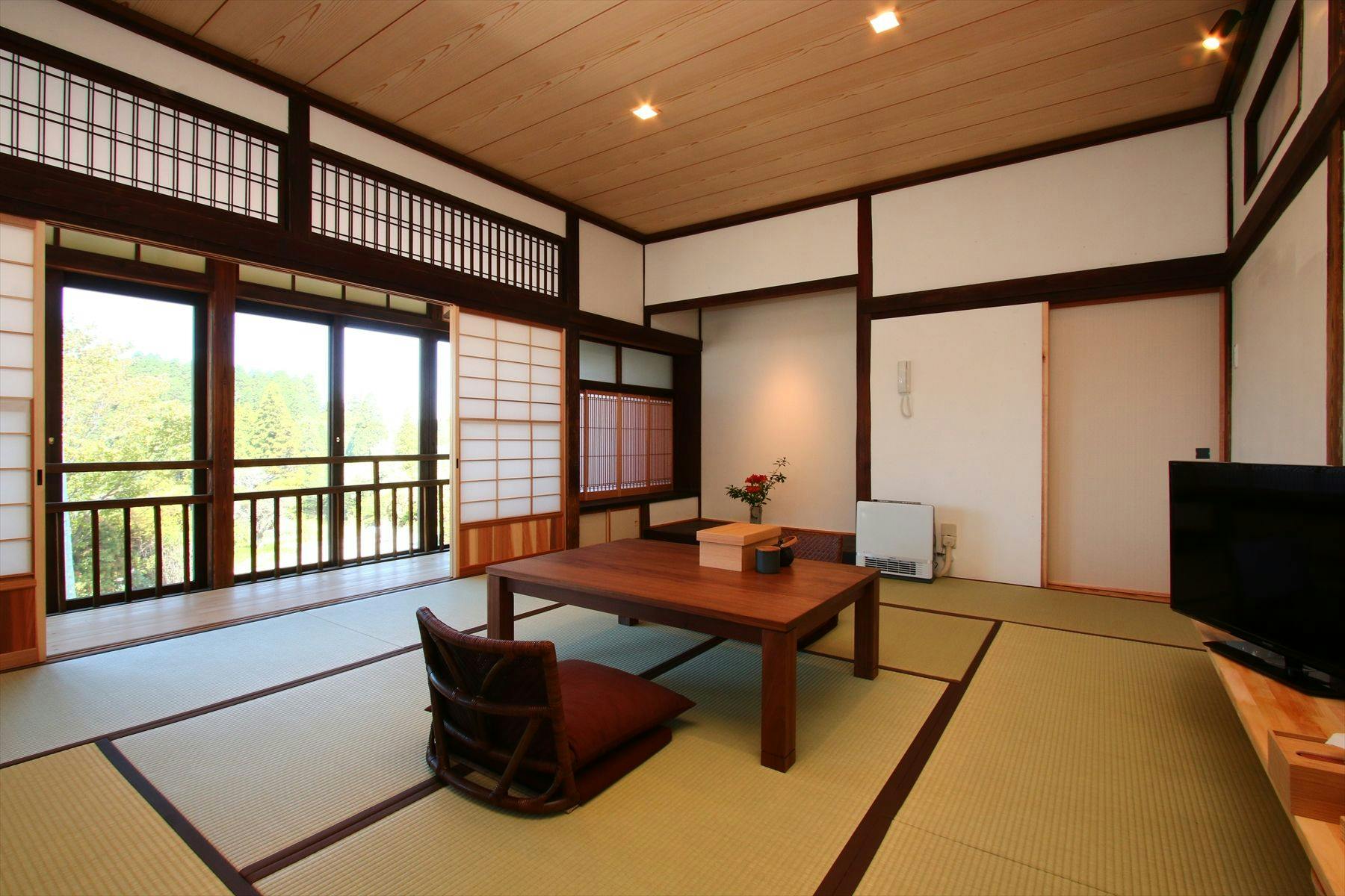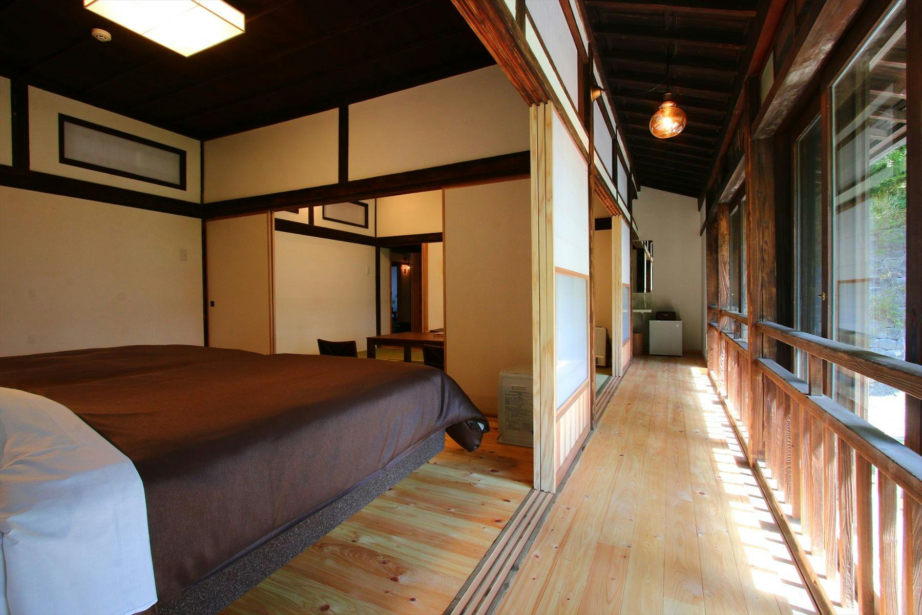 震災で被害を受けた本館をリニューアル。明治中期の建物である本館の柱や床、天井など残せるものは残した青風荘でしか味わえない空間でどうぞごゆるりとおつくろぎください。居間(6~8畳)、寝室(6~8畳、セミダブル×2)、トイレ、洗面所。縁側あり。