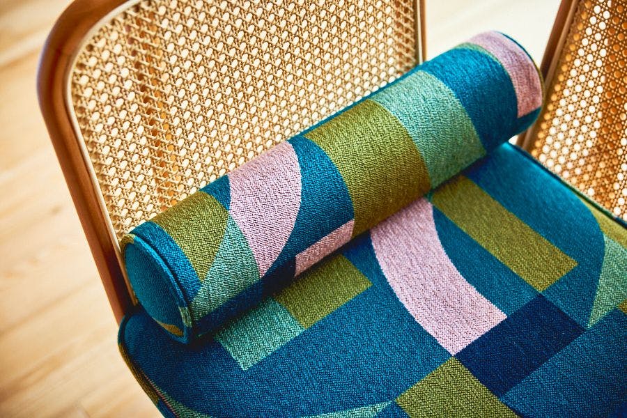 犬山城から木曽川、城下町を見渡す景色を描いた貴重な浮世絵に、コンテンポラリーなアレンジを加えたアートウォール。