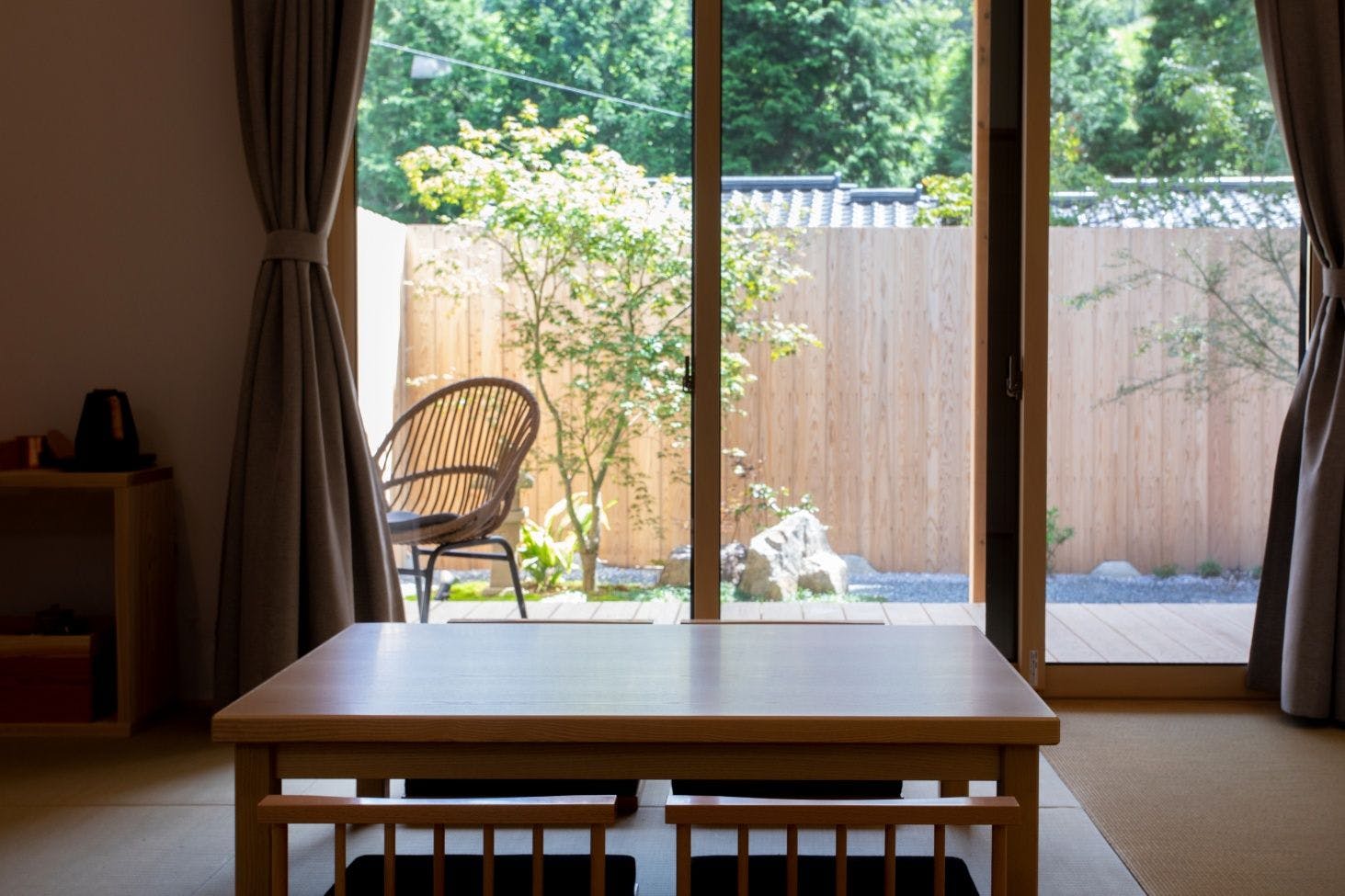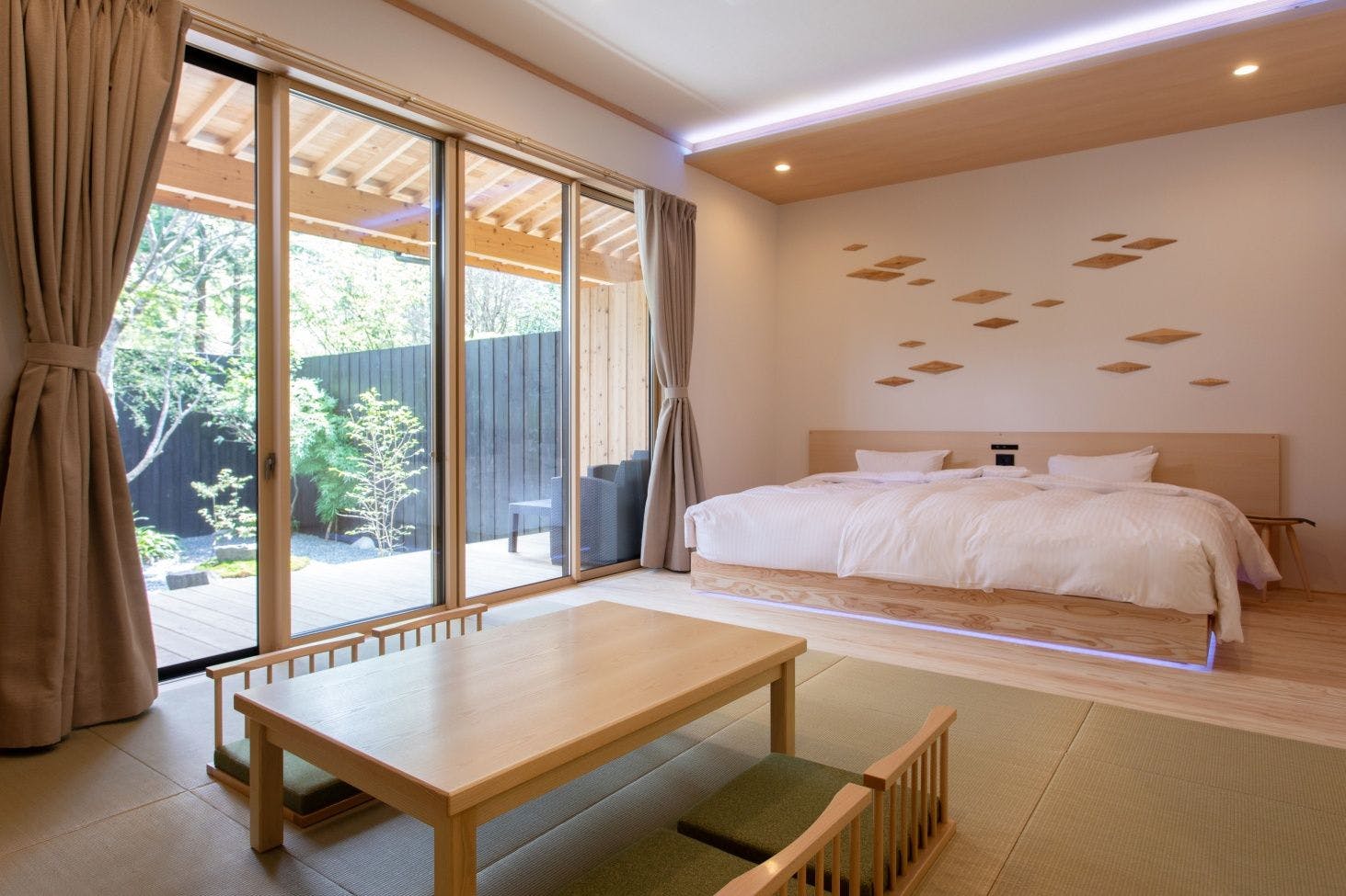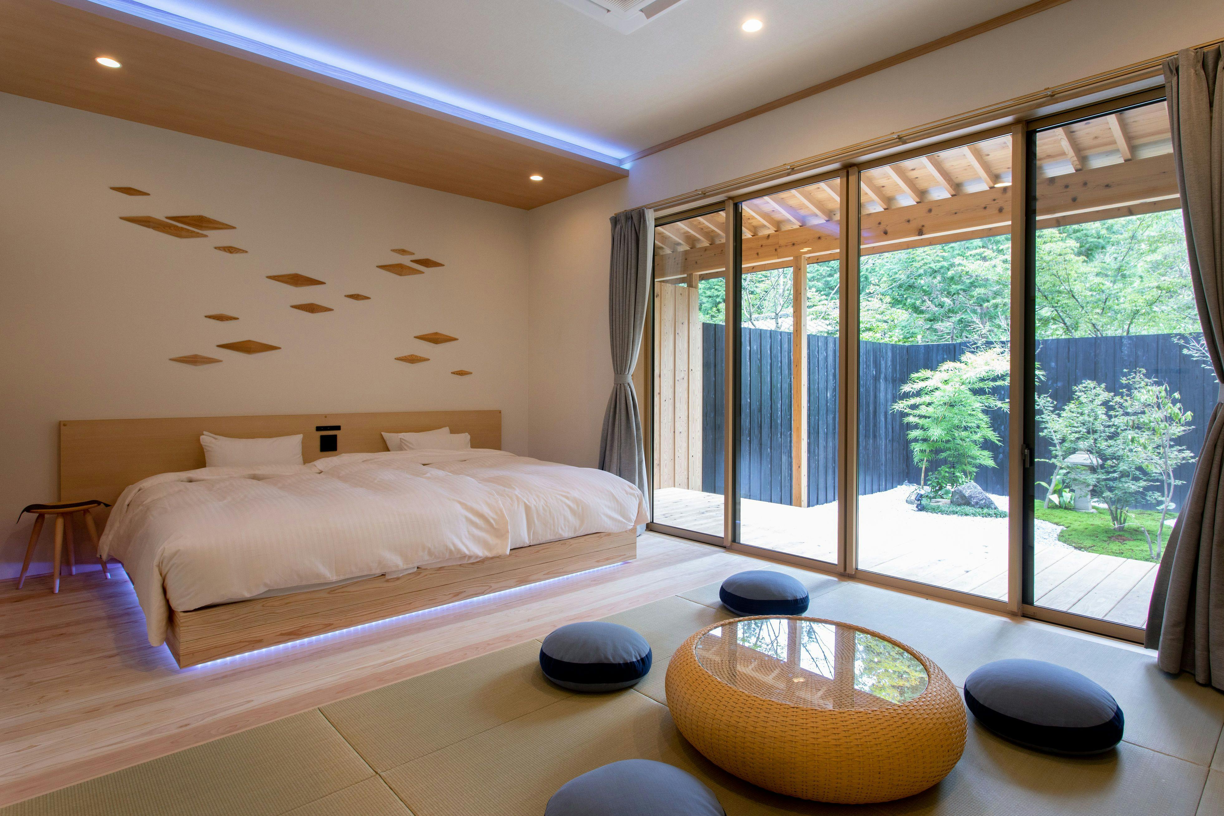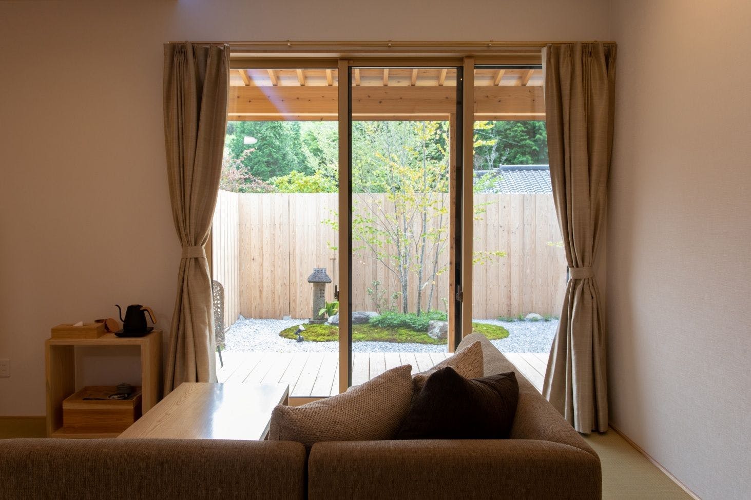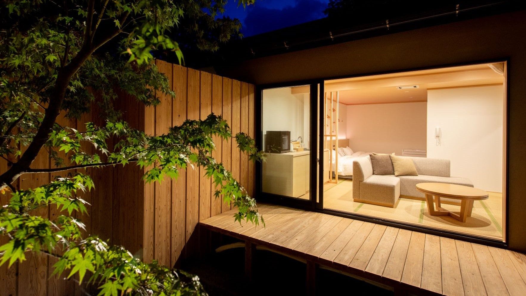 広々とした広縁に専用の坪庭までついた贅沢な空間。