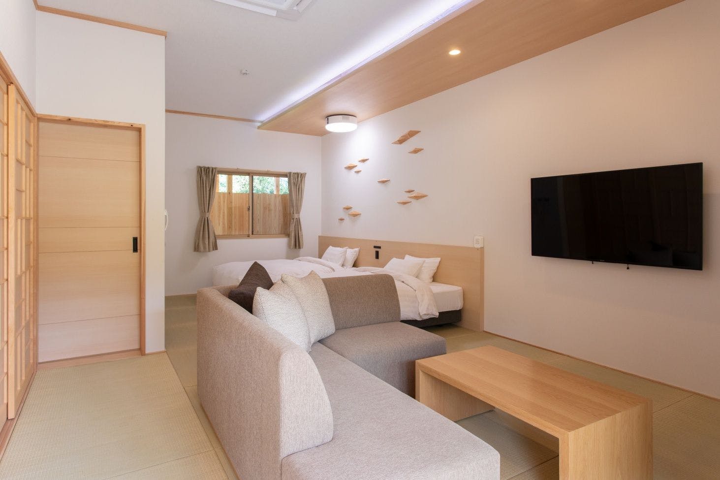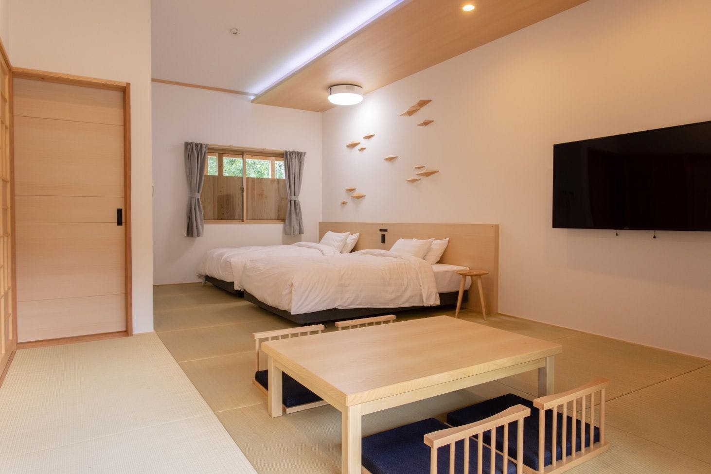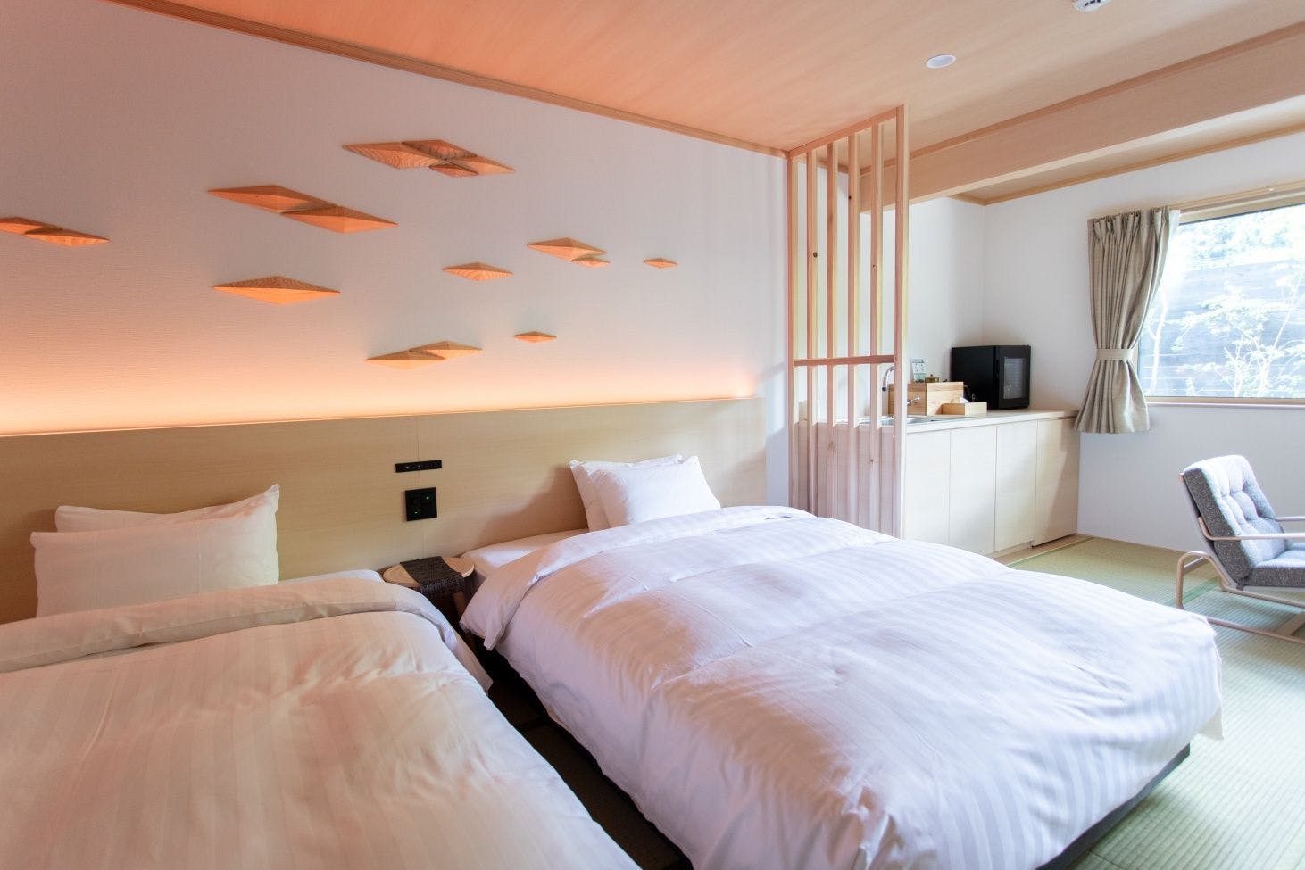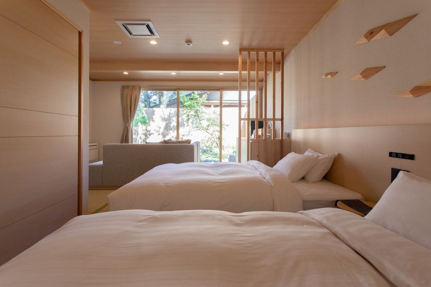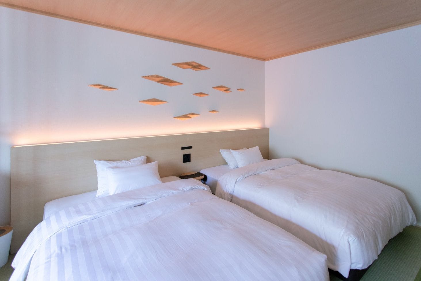 ・ゆったり眠れるダブルサイズ(140cm)ベッド2台で快適睡眠 ※4名様利用の場合は2名様布団になります。