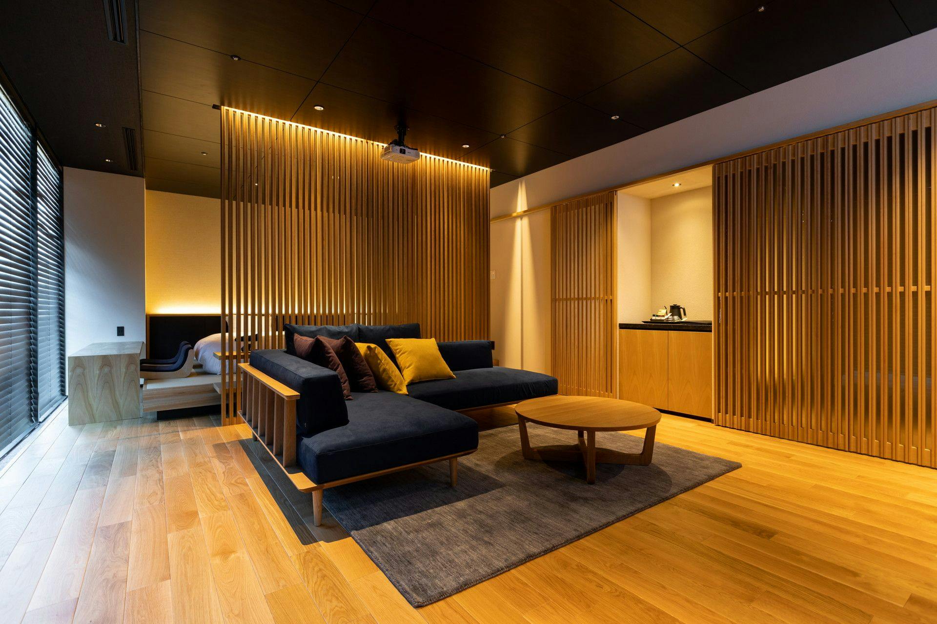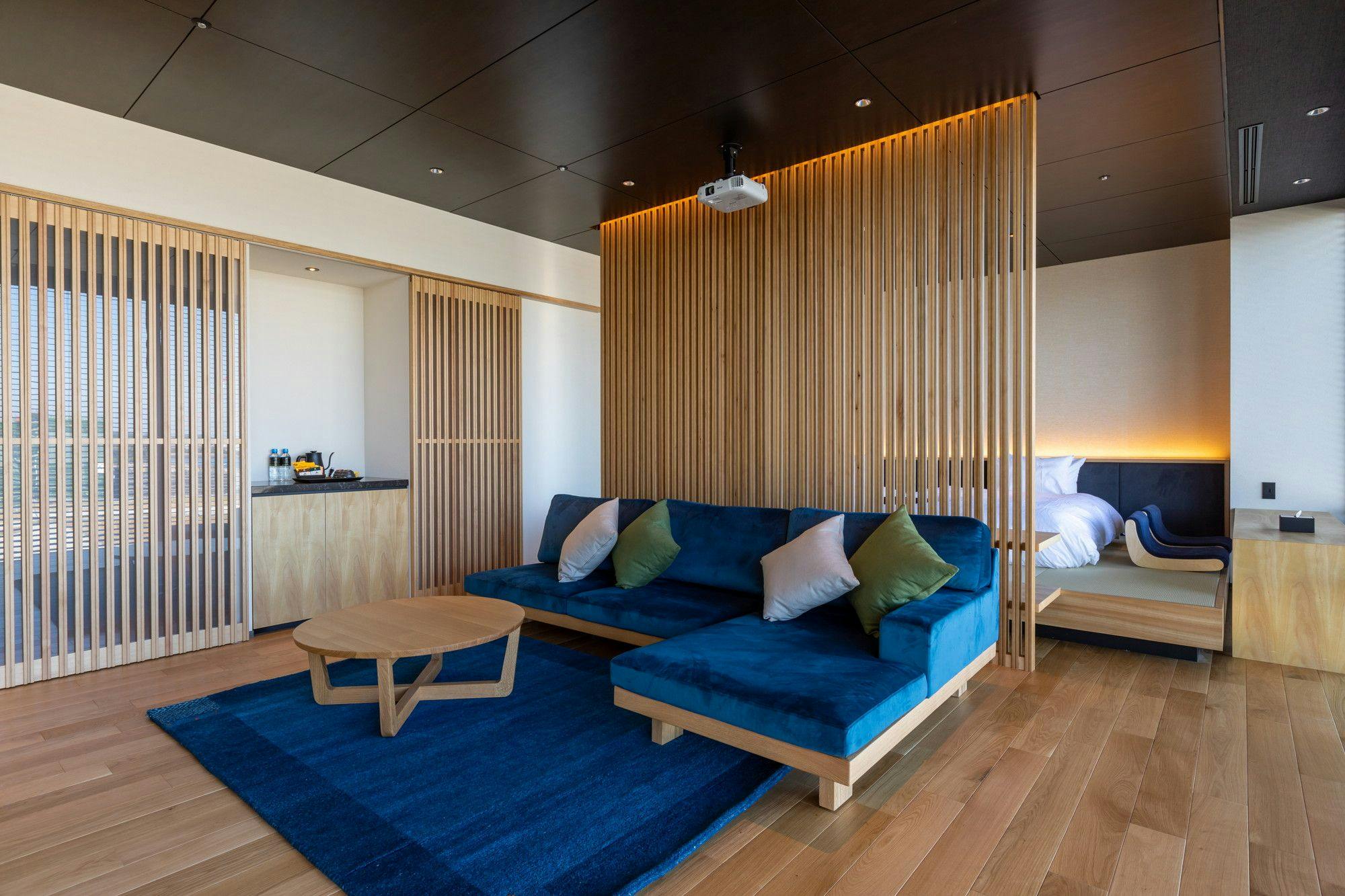 ■The358 SORA コンセプトスイートルーム<ジャングル(3階)><ゴルフサーキット(4階)><グランピング(5階)><アクアリウム(6階)>■広さ:61平米■ベッドサイズ:W1200mm×L1950mm×2台■3名様以上でのご予約時は、追加のお布団2組を人数に応じて準備いたします