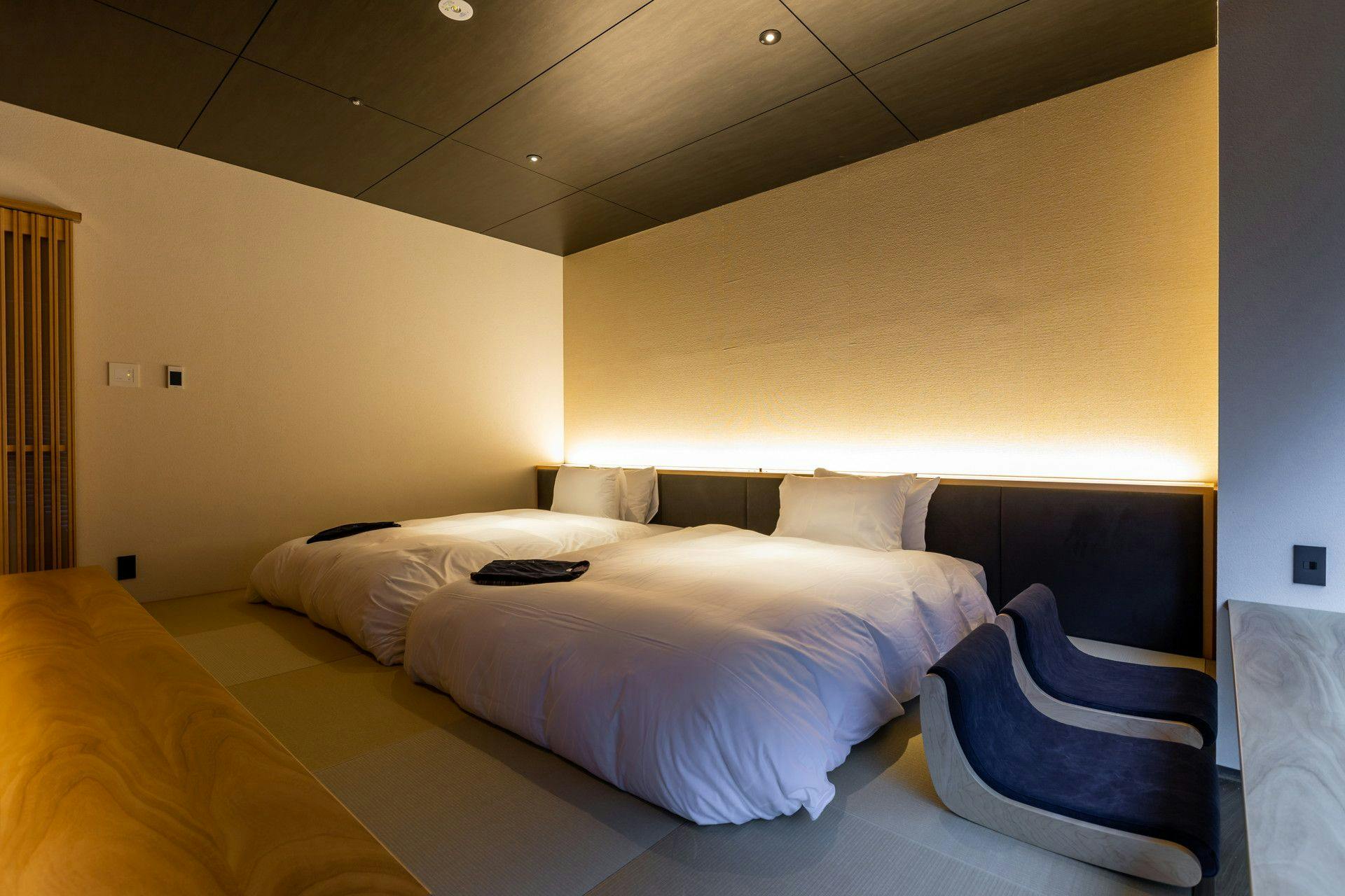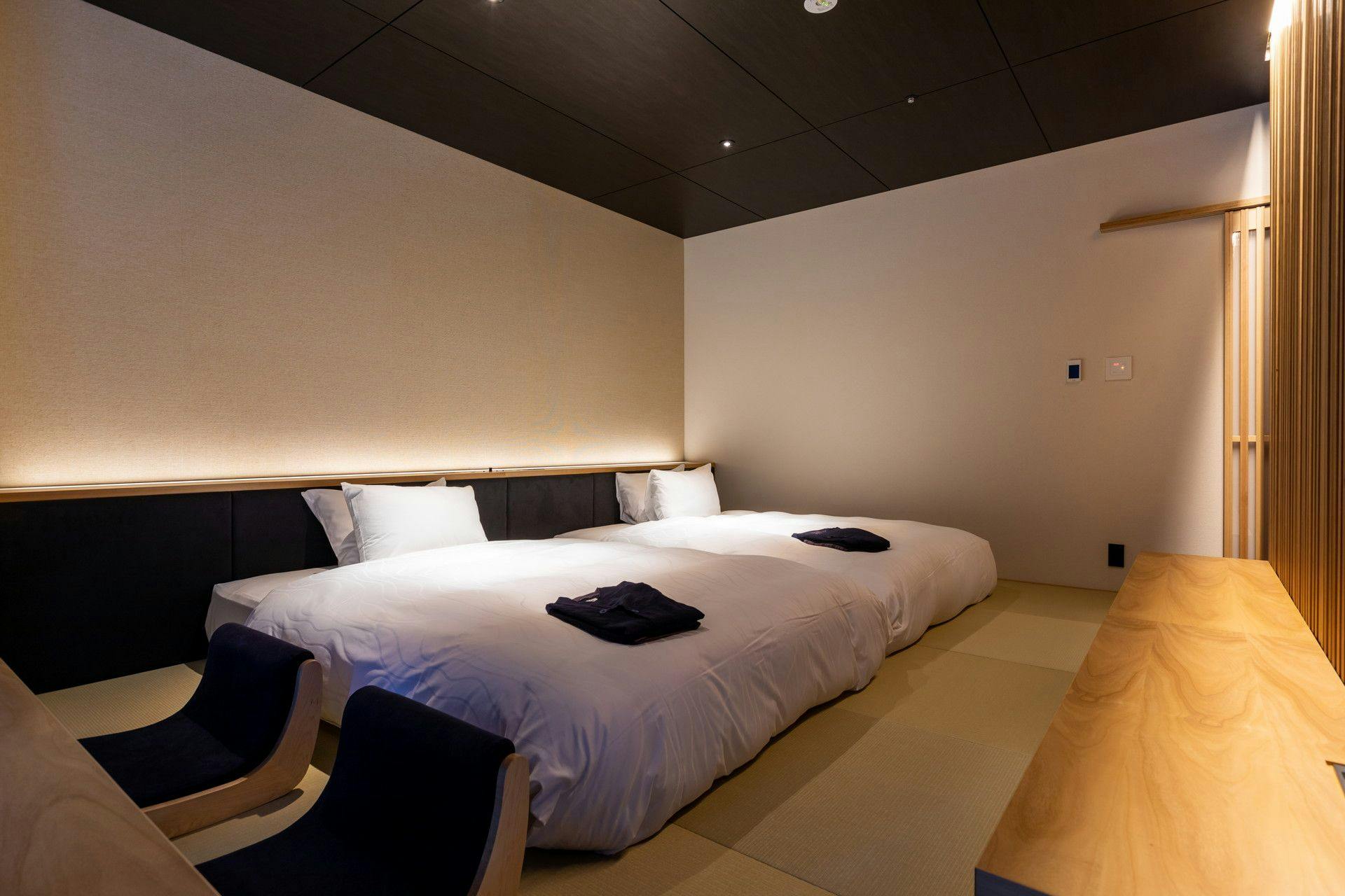 ■広さ:64平米■対象階:9階■ベッドサイズ:W1400mm×L1950mm×2台■3名様でのご予約時は、追加のお布団1組を準備いたします