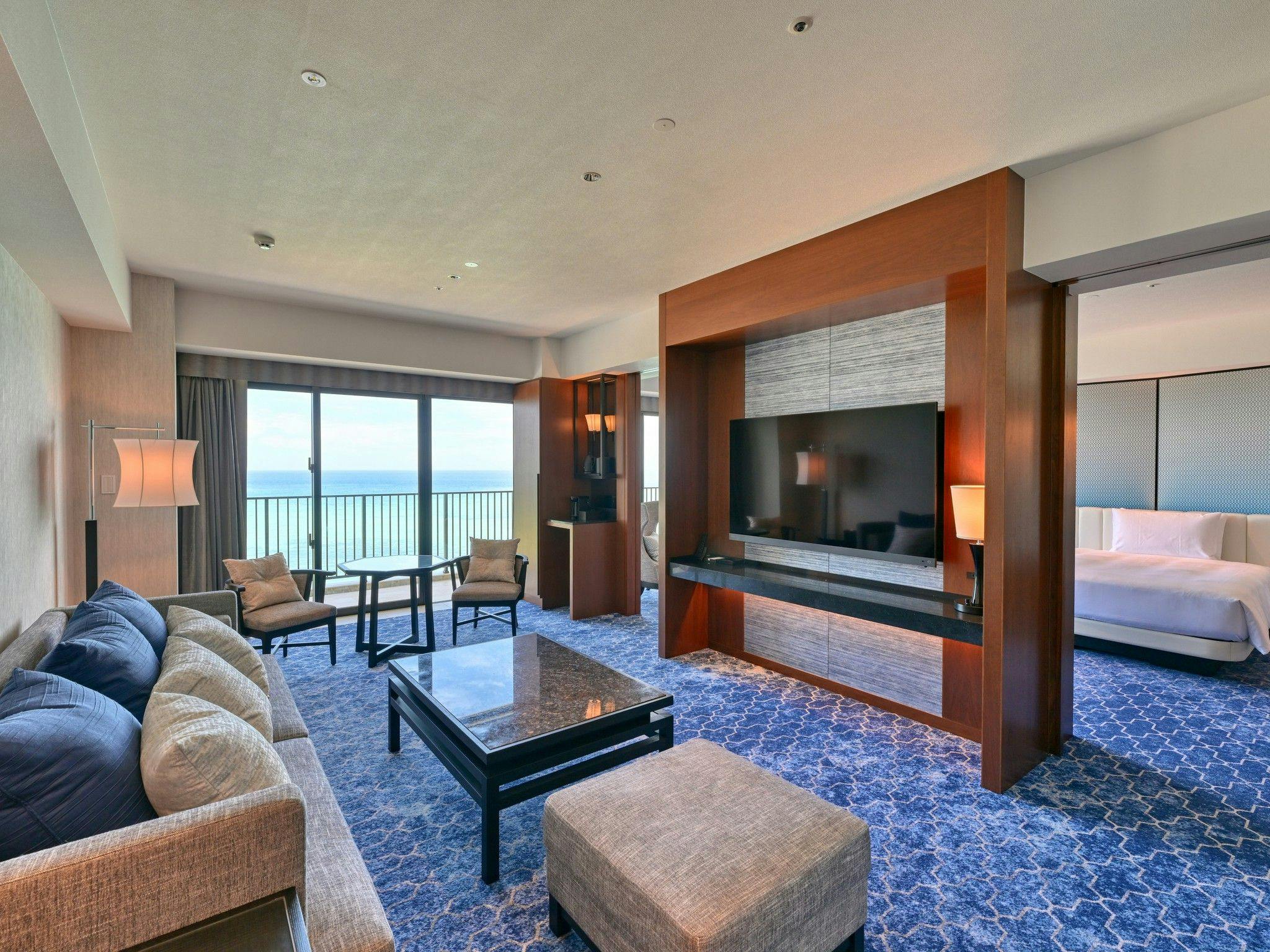 オーシャンビュー&サンセットビュー。サウスウイング高層階に位置する、デラックススイートよりもさらに広い84平米のスイートルーム。